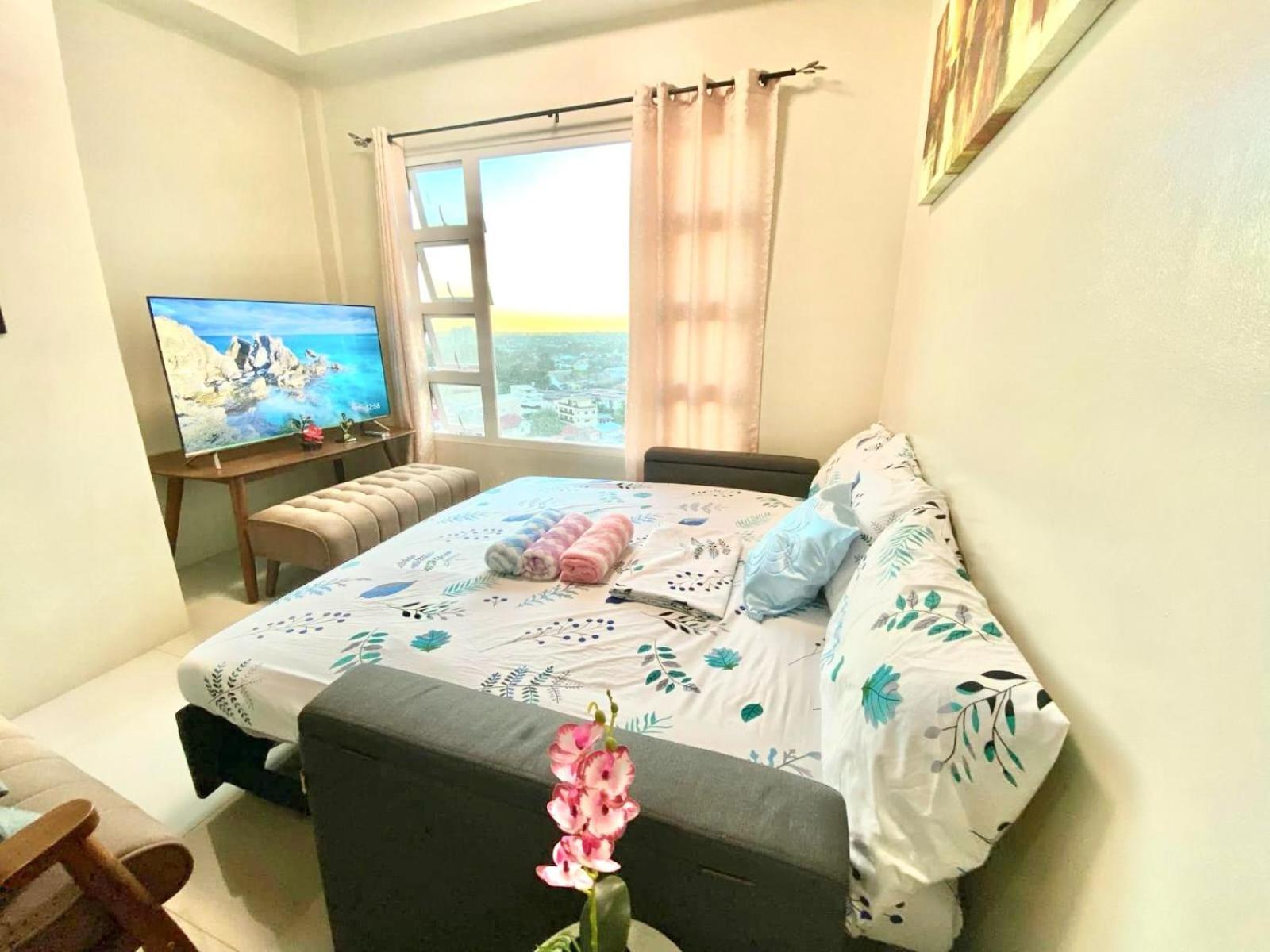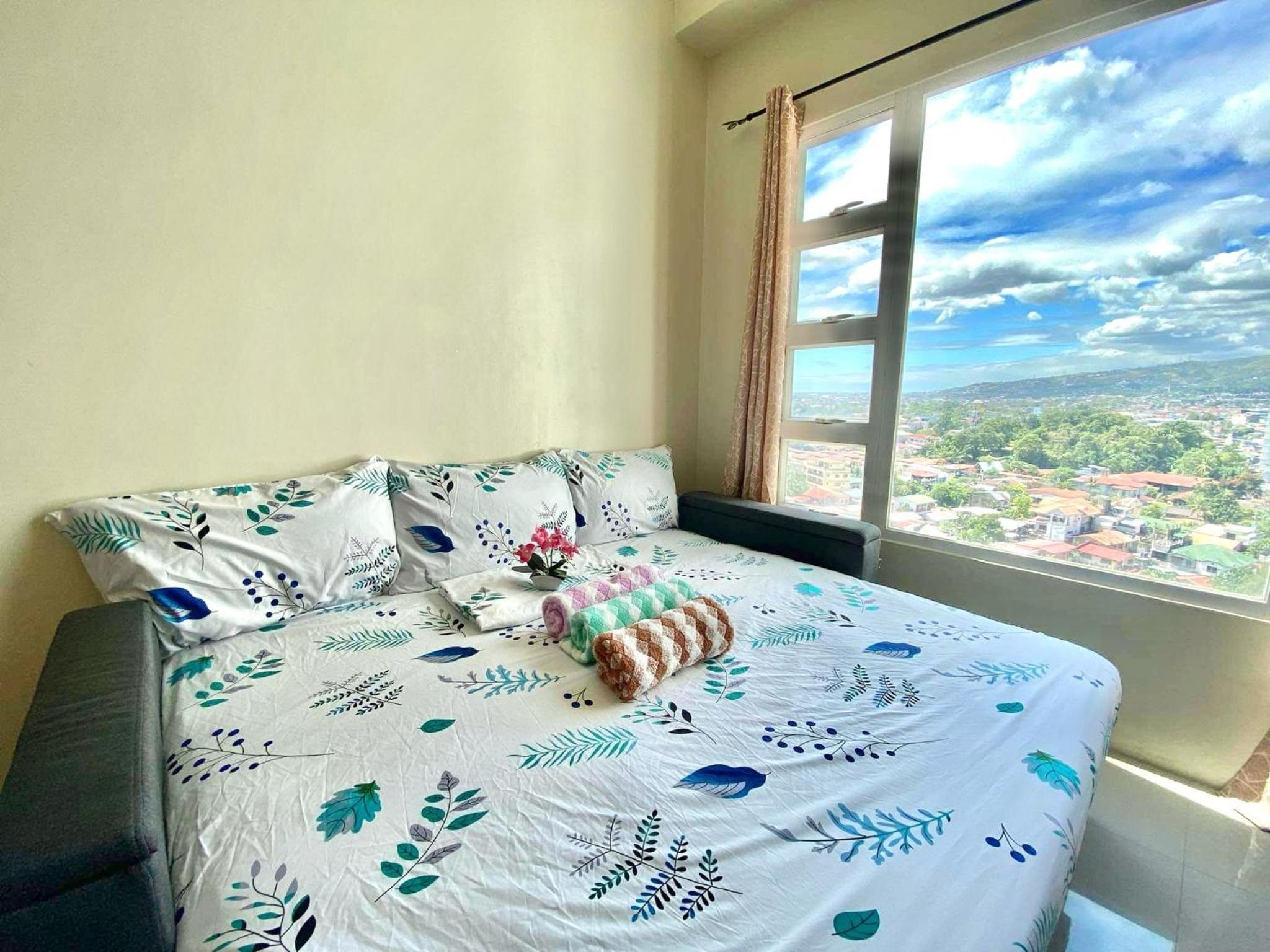 The room has a great view of Cebu. We loved it so much. Airconditioning was so cold. Complete utensils. We used it to cook. And the swimming pool view is georgous at night. Near jollibee and other restaurants as well.