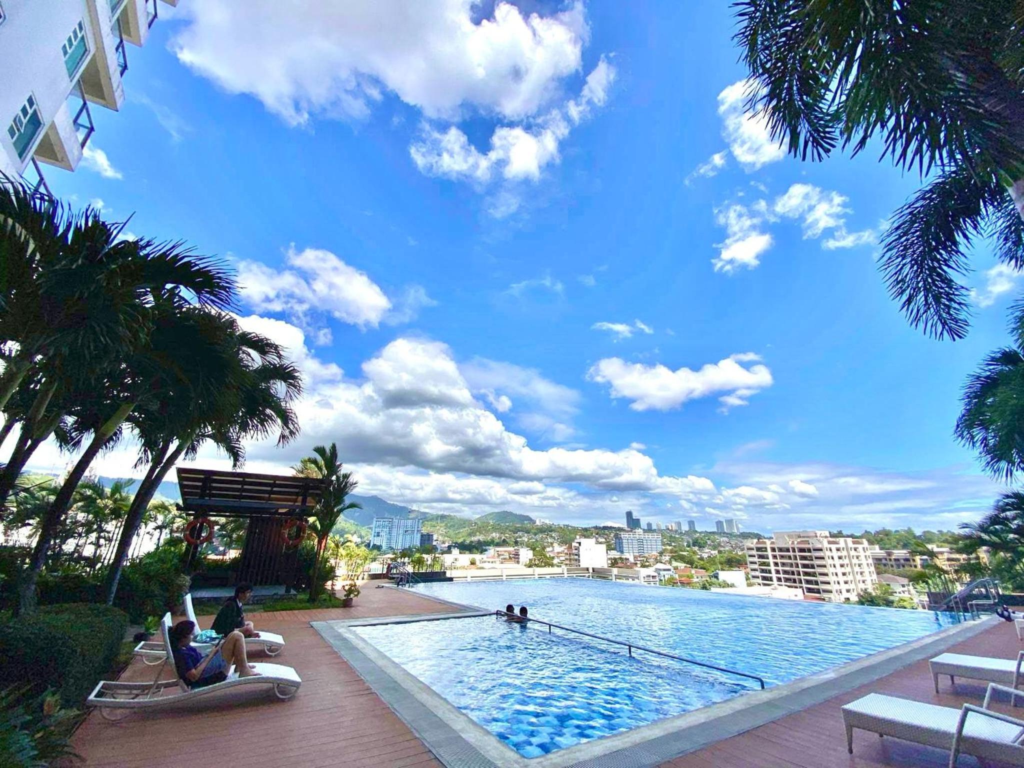 Enjoy sea views from the rooftop pool and unwind in the garden at this group-friendly 2BR Cebu condo.