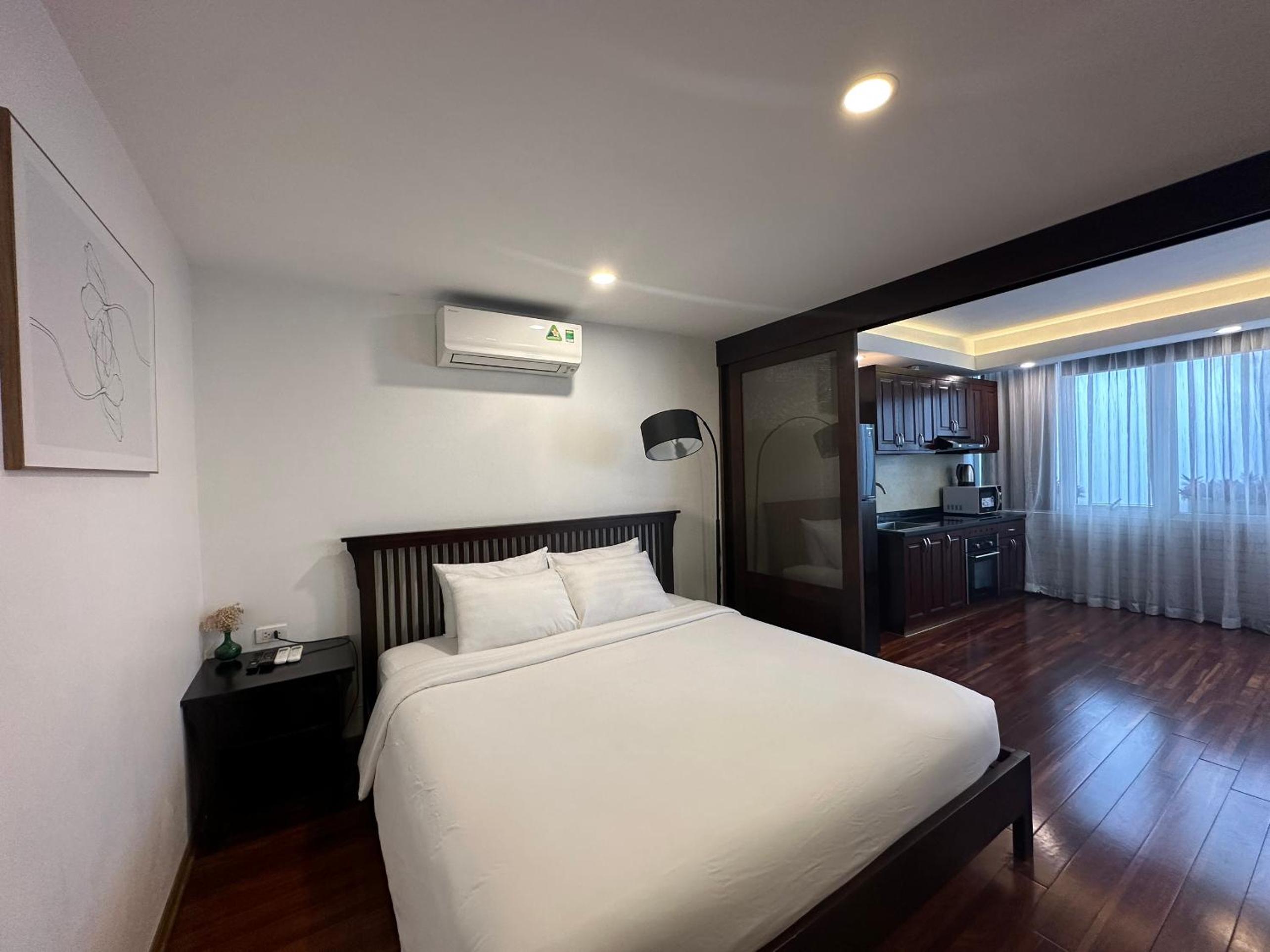Rooms feature air conditioning, flat-screen TV, kitchen, and city views.