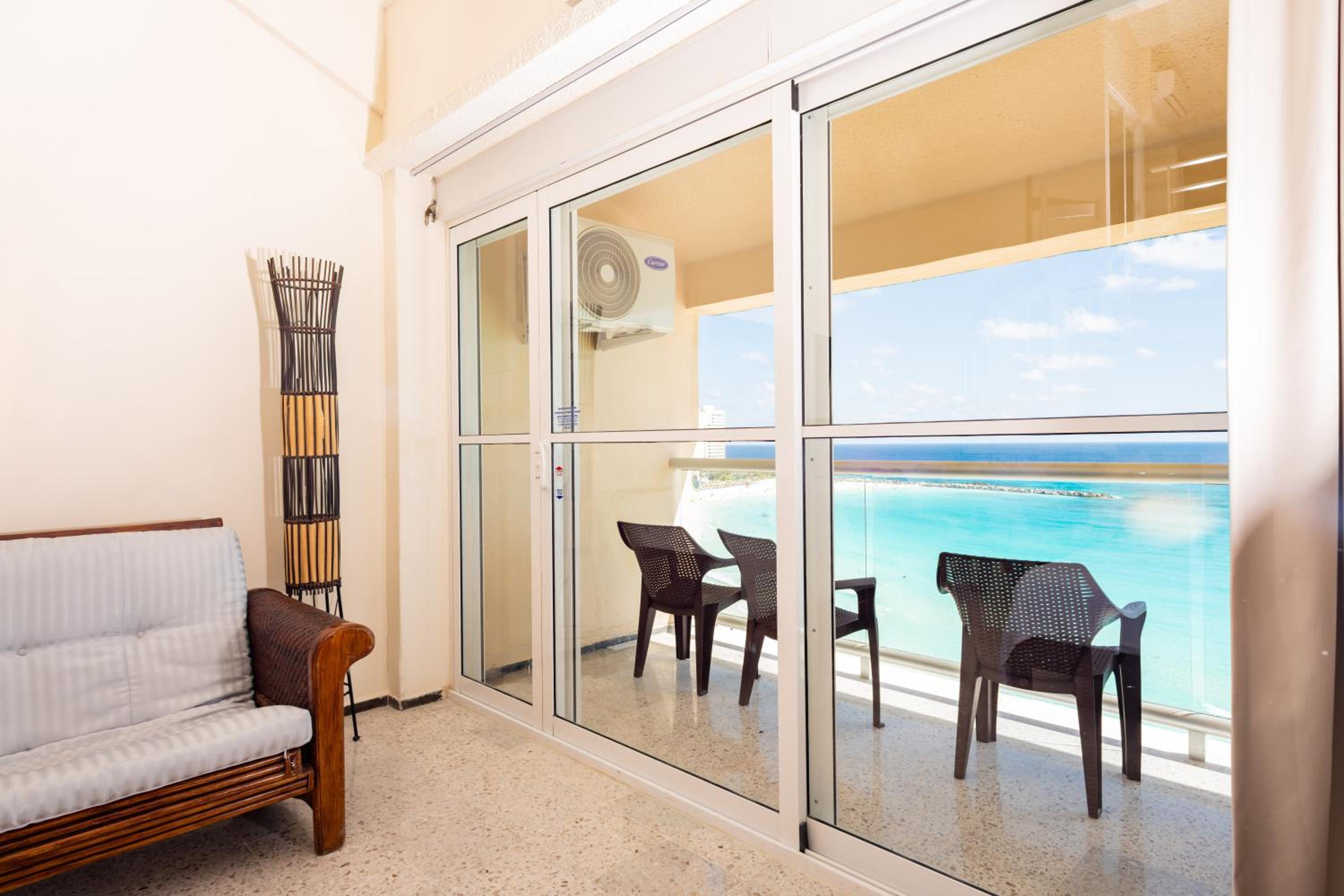 Convenient Amenities: Benefit from 24-hour security, free WiFi, free private parking, and a shared lounge area for relaxation during your stay at 2 Story Oceanfront Penthouses on Cancun Beach!