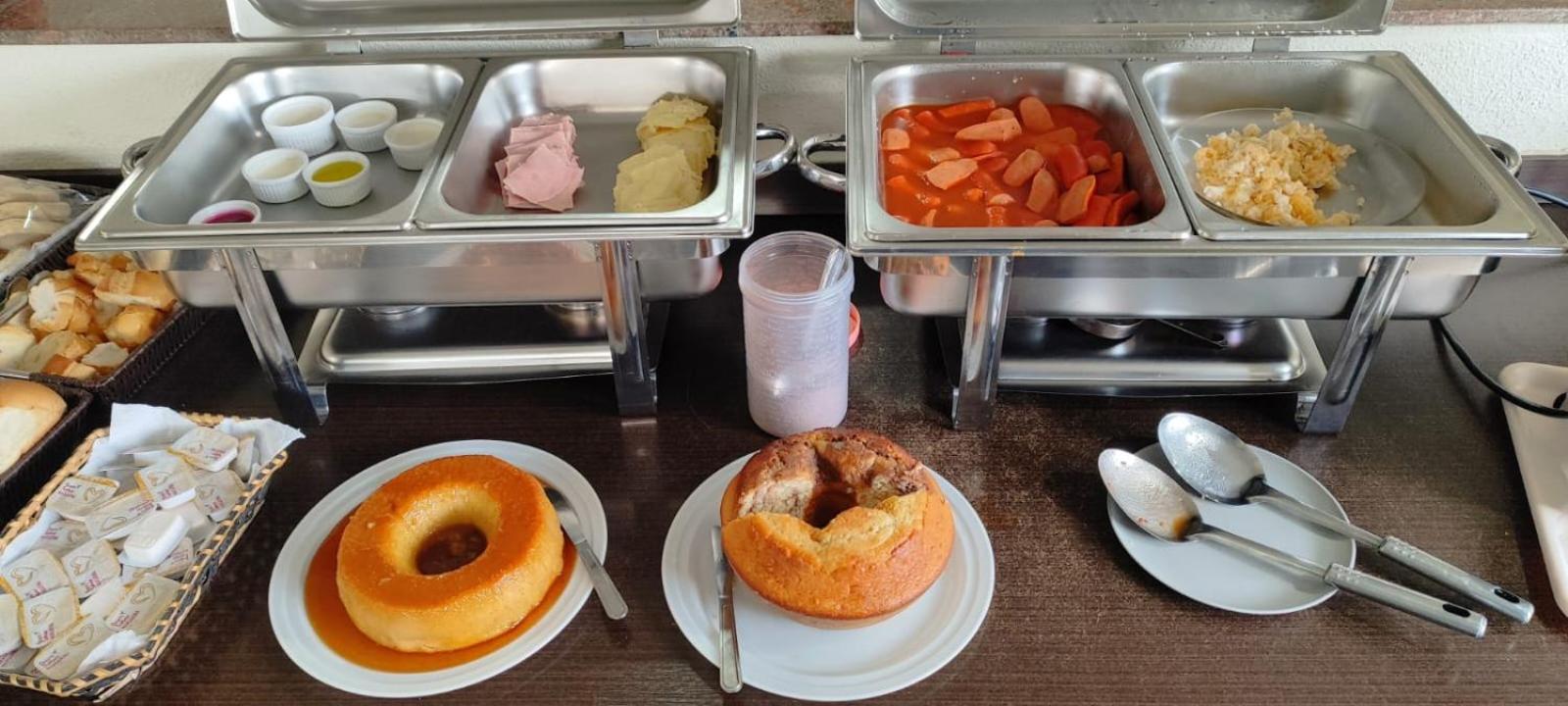 Café da manhã diversificado, com bom horário de acesso à copa.