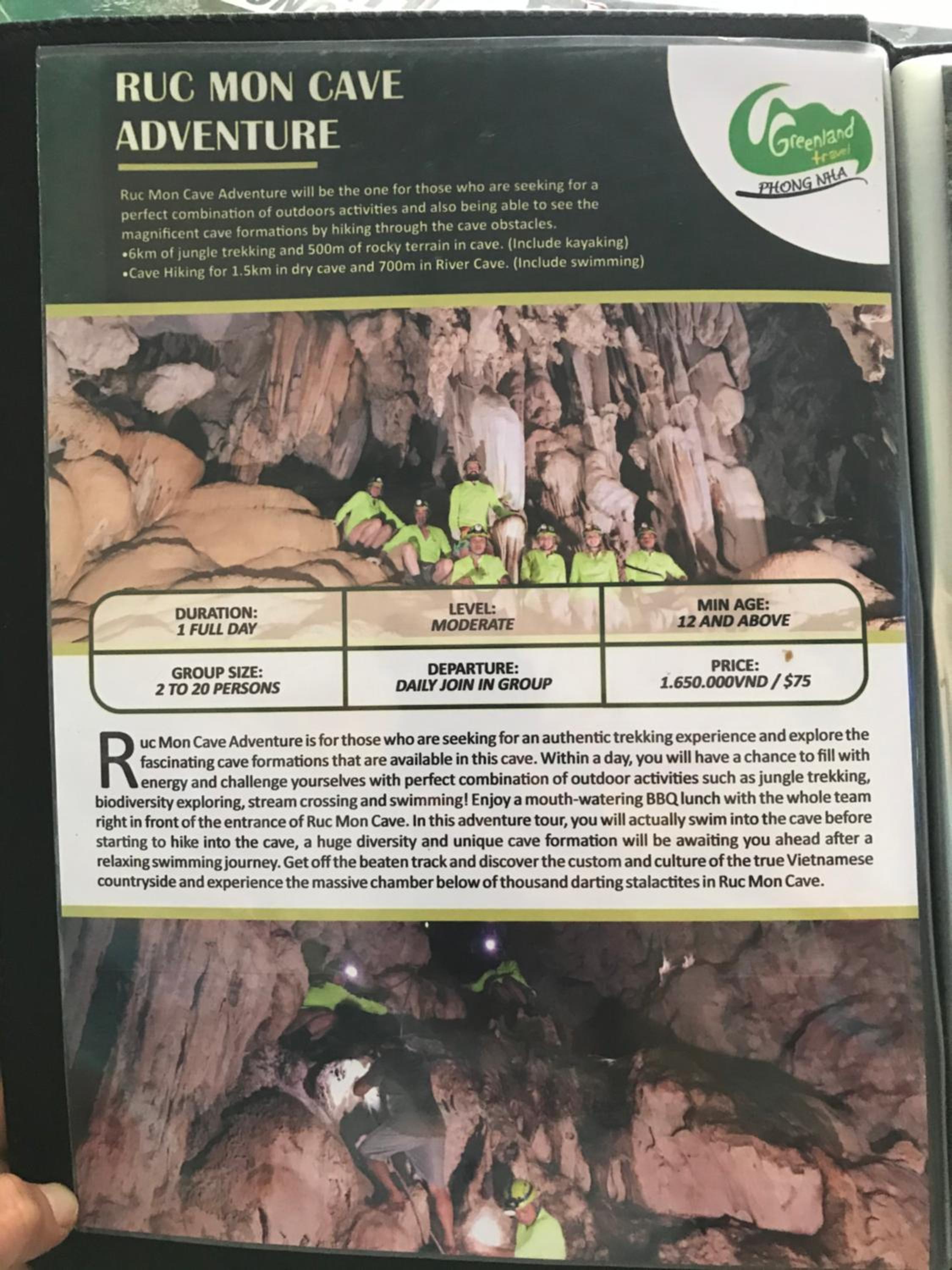 3я экскурсия ( в Phong Nha Cave с каякингом) была запланирована в дождливую погоду, чтобы не терять день отпуска,т.к в пещере нет дождя. Трекинг был непростой, включал каякинг,и посещение пещерной реки( купались 2 раза,если закаленные,вода примерно 20с).