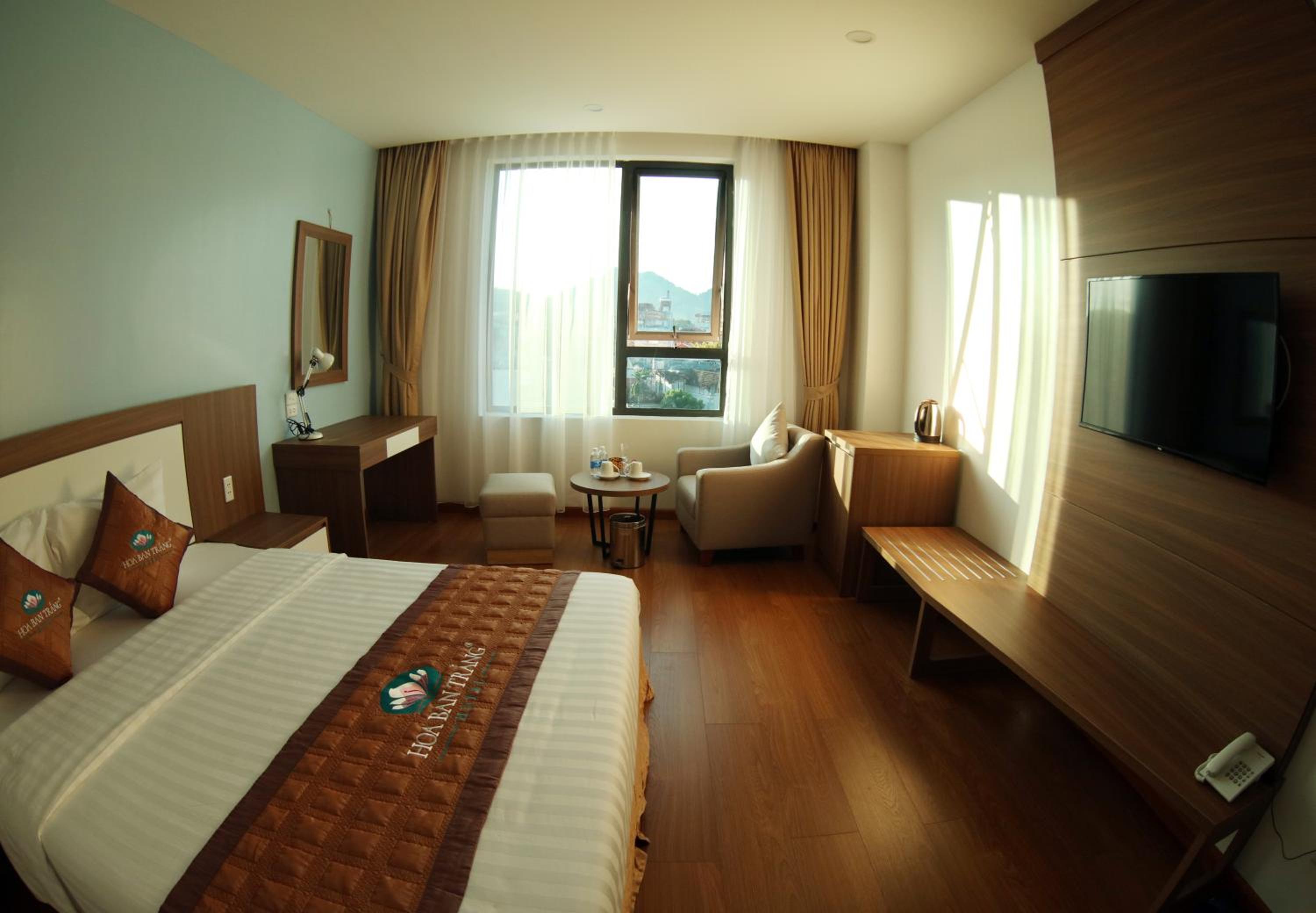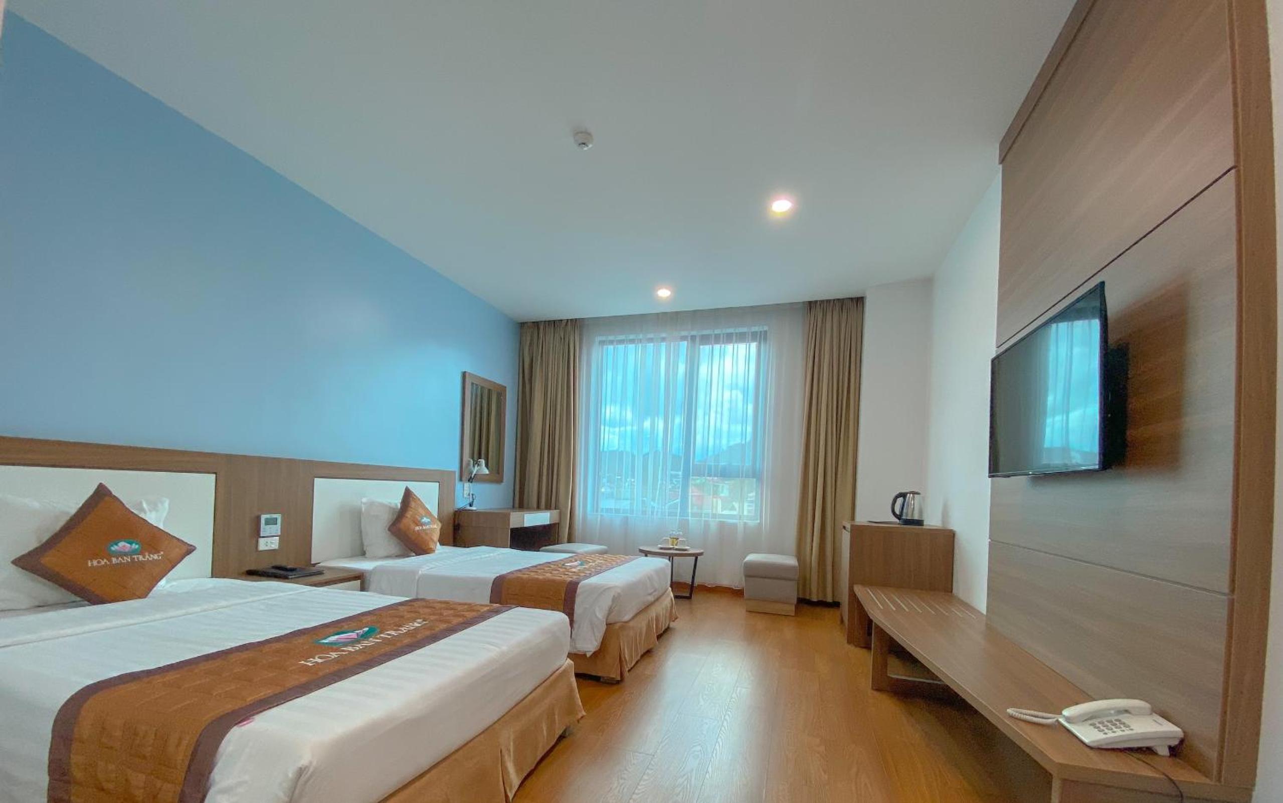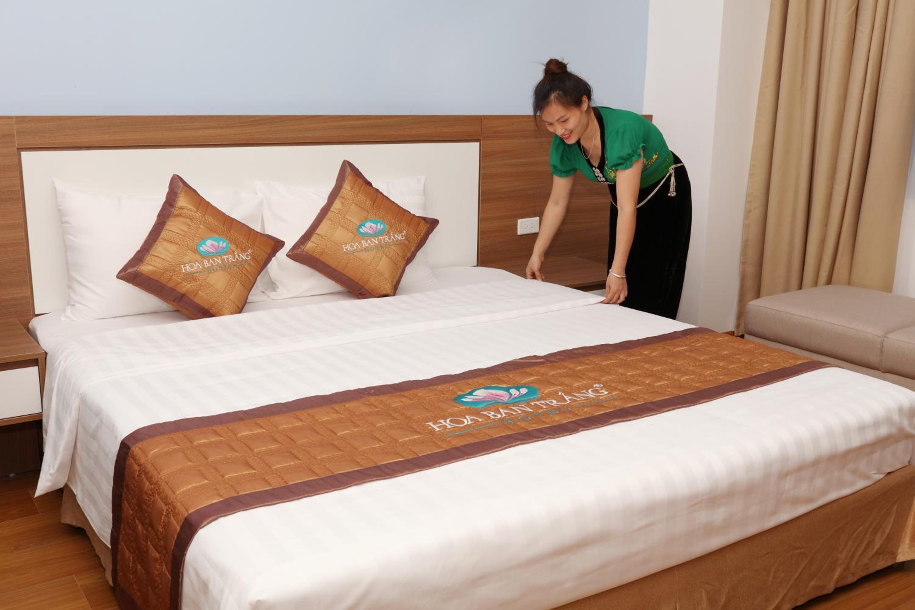 Luxurious Amenities: Khách Sạn Hoa Ban Trắng offers a range of upscale amenities including a restaurant, room service, and a 24-hour front desk. Guests can enjoy free WiFi throughout the property, ensuring they stay connected during their stay.