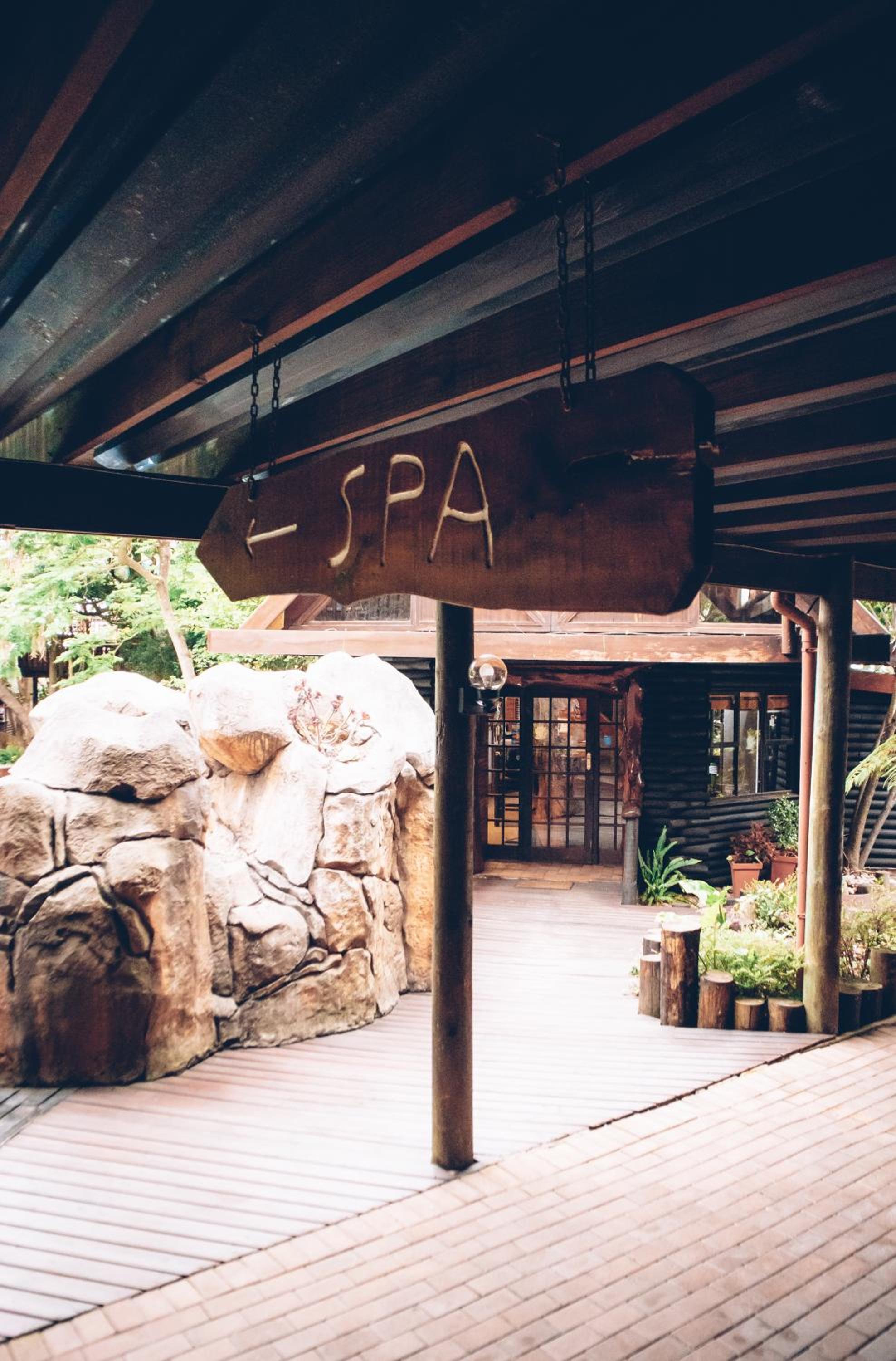 The lodge is very beautiful and tropical.