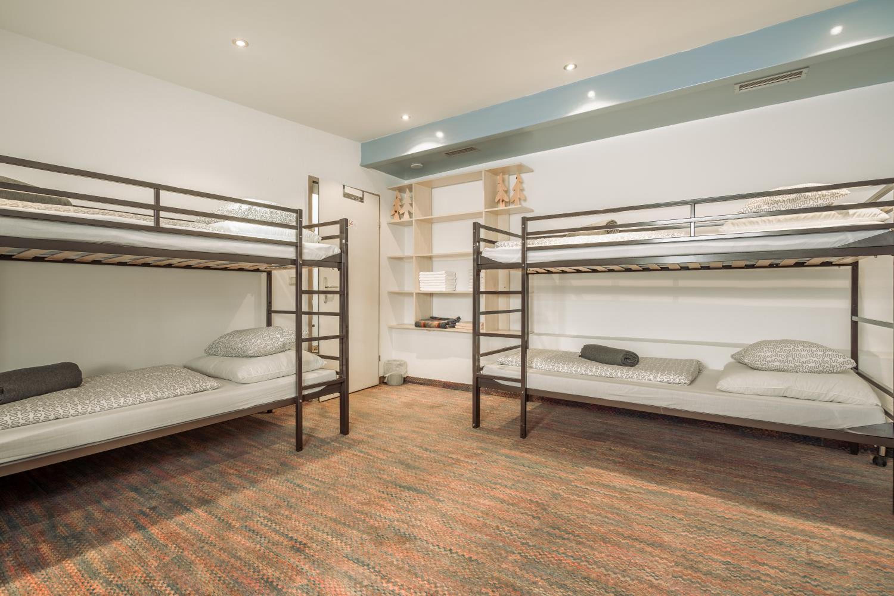 We stayed in the bunk bedroom, one room for 2 and one room for 3. I definitely won't recommend the bunk bedroom, you have no window which you can open, no own toilet or bathroom (shower you have to take in the hotel wellness area), and only one power point for 8pp in the whole room.