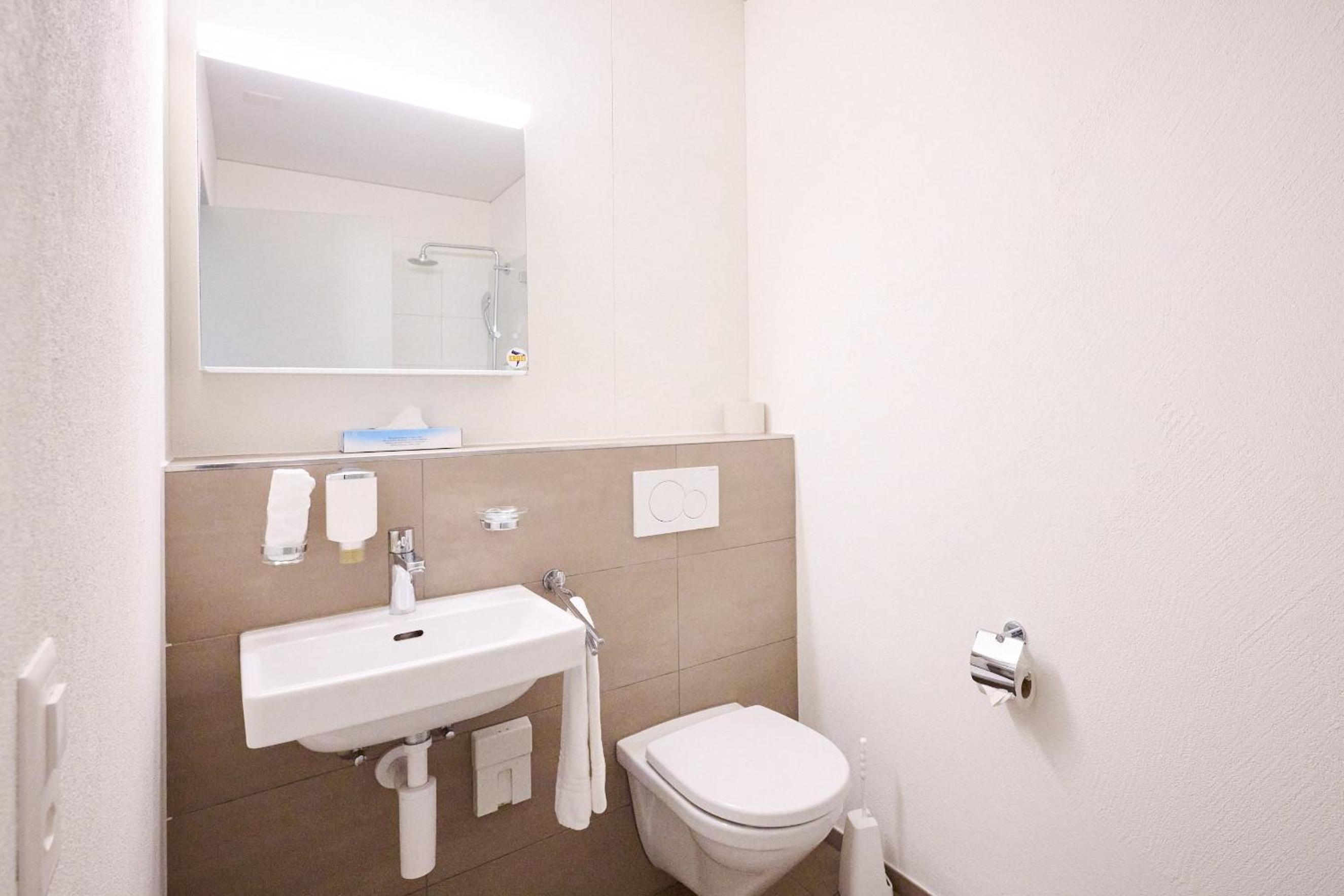 Hotel am Kreisel offers elegantly designed rooms with private bathrooms, showers, and complimentary toiletries. Enjoy the convenience of a hair dryer and flat-screen TV in every room for a comfortable stay.