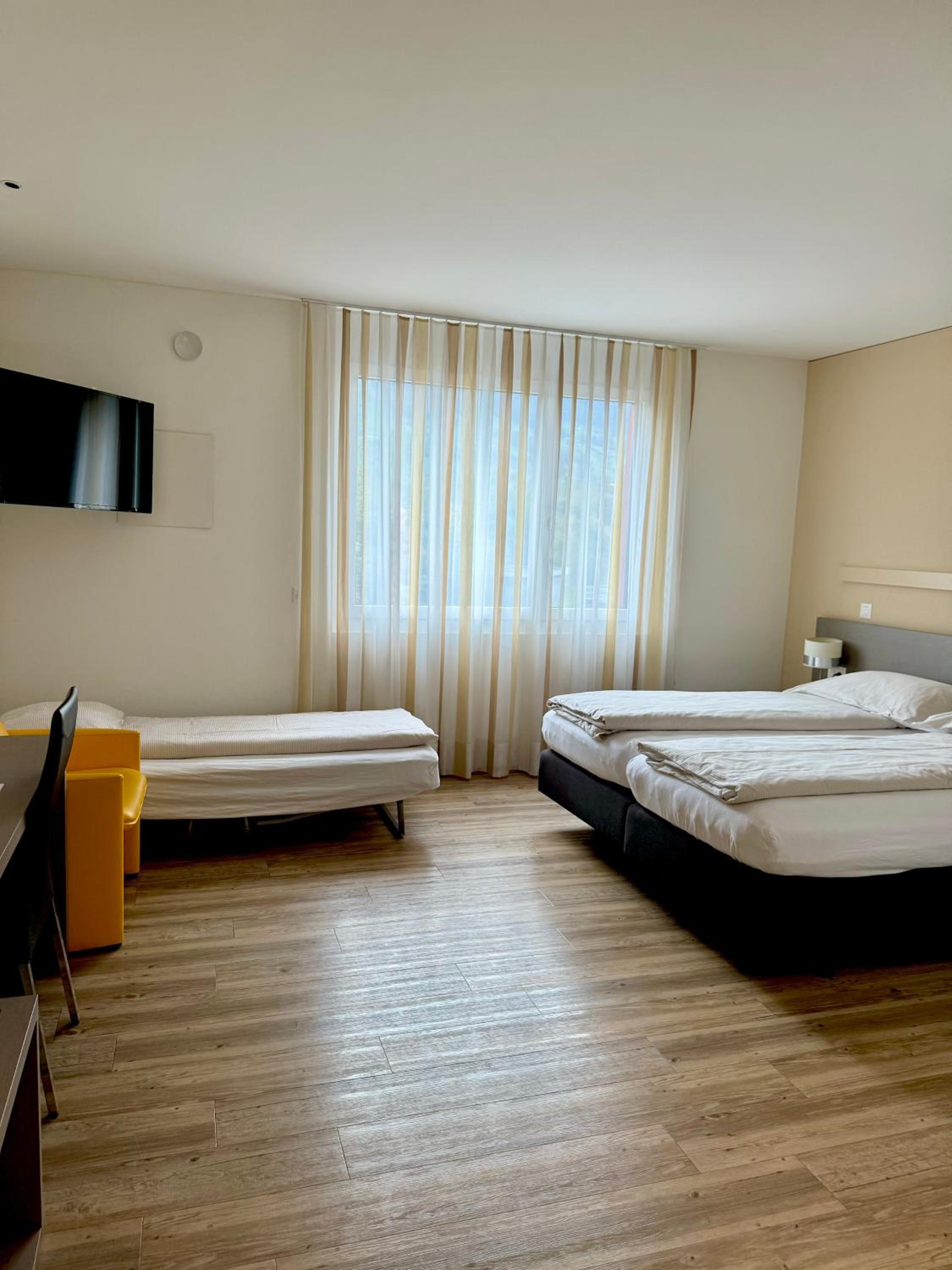 People 3 years old and over stay for CHF 60 per person per night when using an available extra bed.