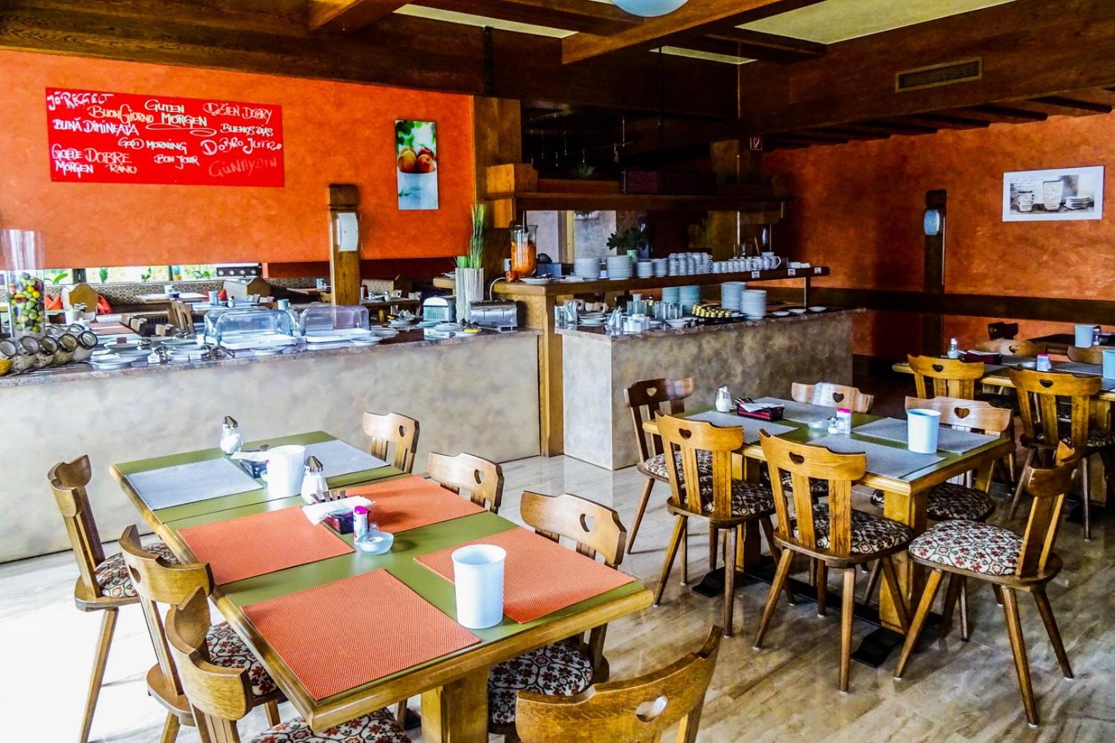 Indulge in a culinary journey at Mama Mia restaurant within the hotel, offering a delectable mix of Italian, German, and international cuisines. Additionally, the summer terrace provides a charming setting to savor food and drinks.