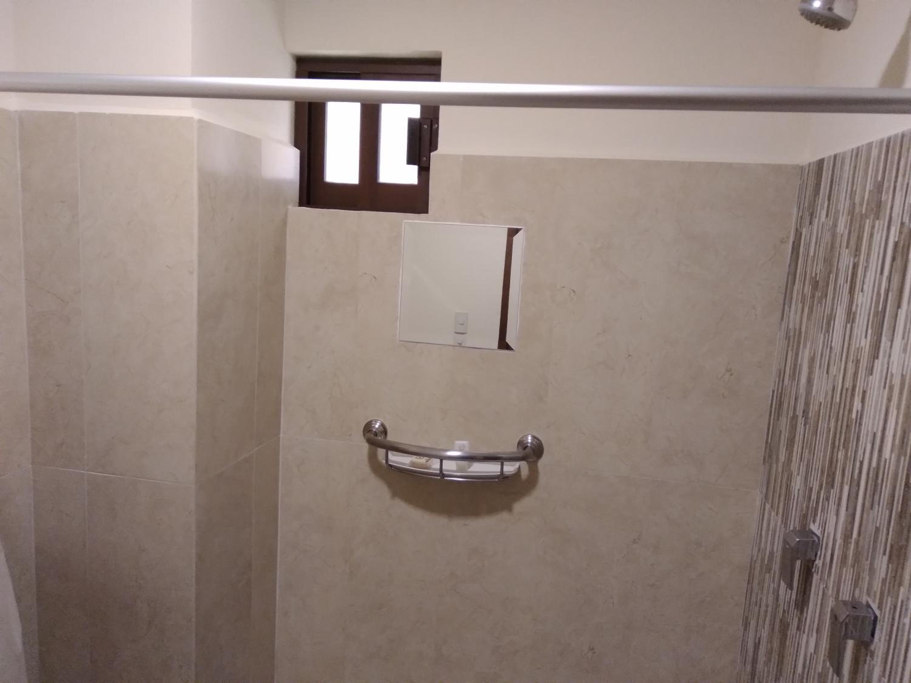 Un poco fría, nos prestaron calentador. Y el mueble del baño estaba flojo.
