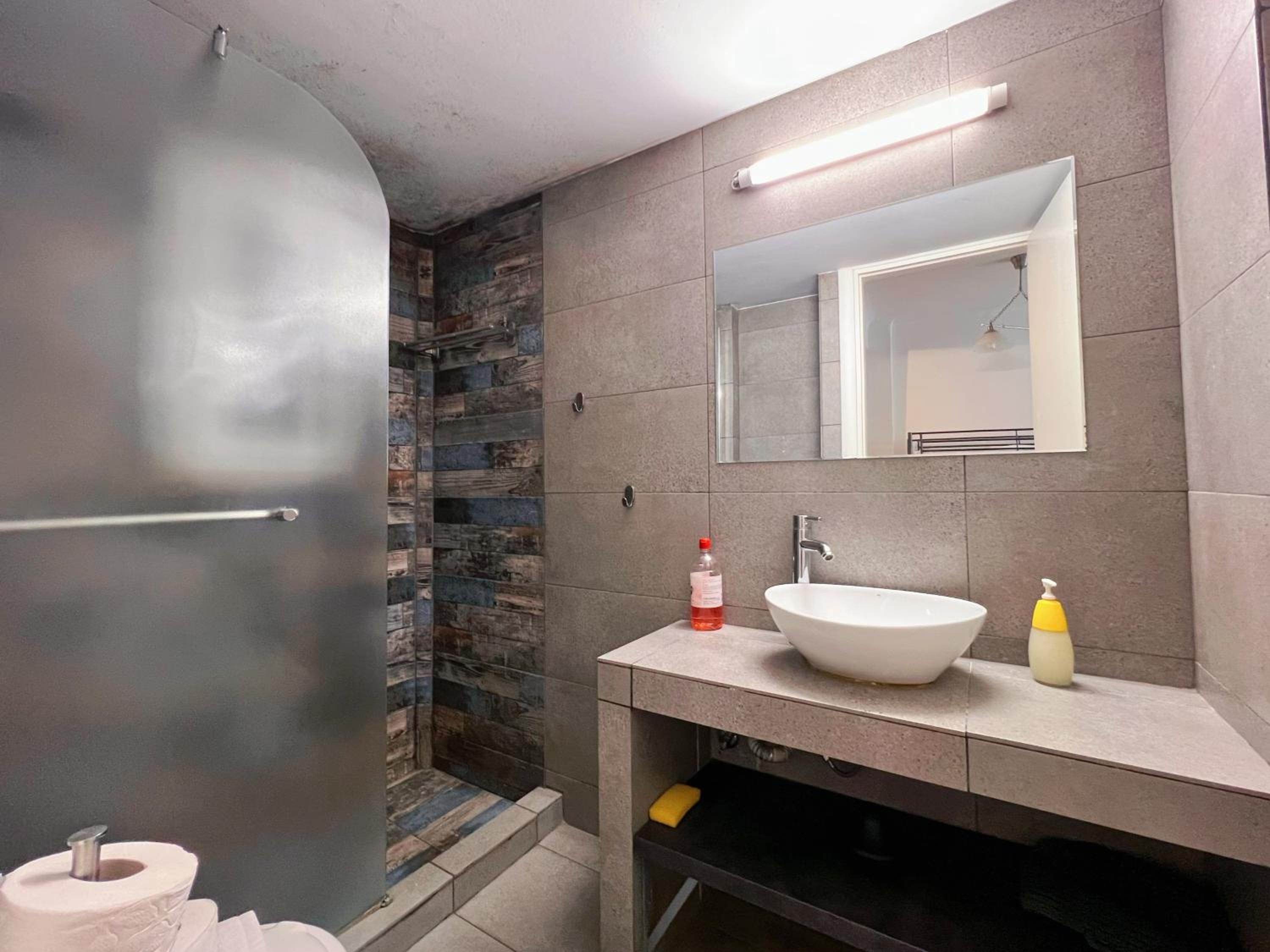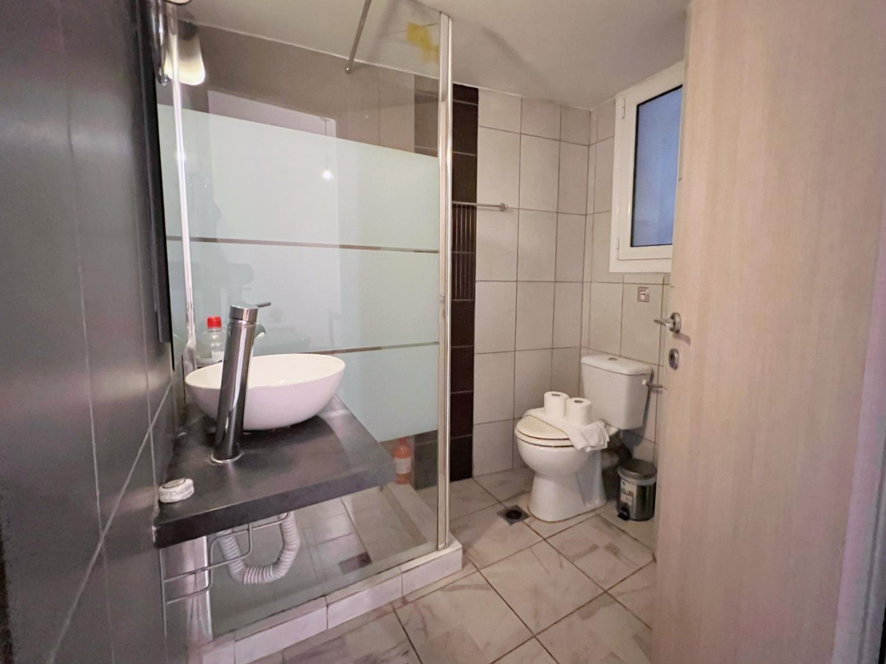 Everything inside was greasy and sticky. Inside was very cold, and the AC (very noisy) didn't succeed to make it better. The smell inside is like in an old kitchen, the walls are dirty. All the linen were not ironed, and it looks like someone else was staying there before.