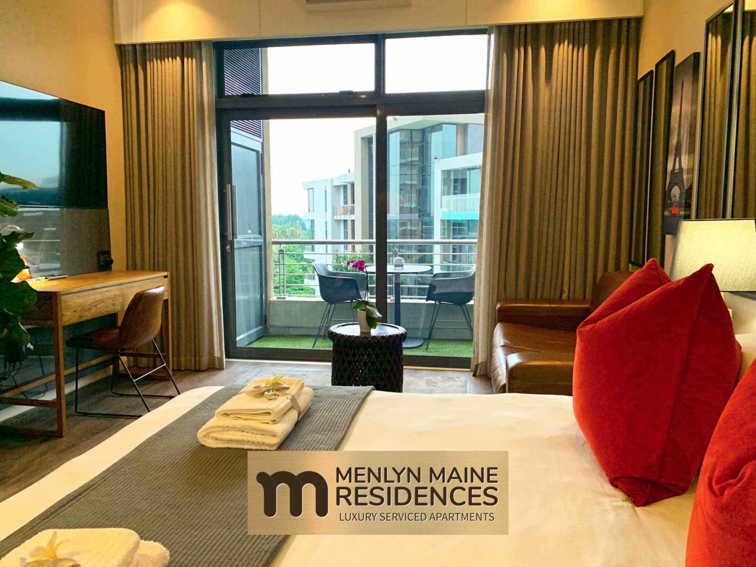 Experience ultimate relaxation at Menlyn Maine Trilogy Paris studio with king bed. Unwind by the rooftop pool or enjoy the serene garden view from your private patio.
