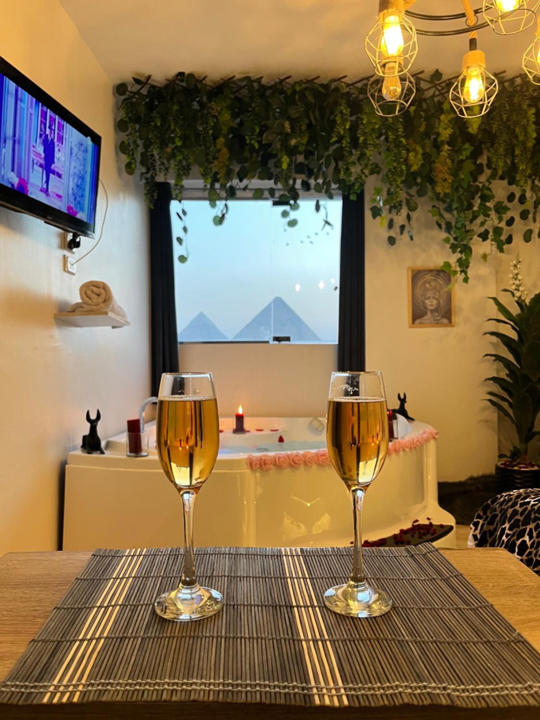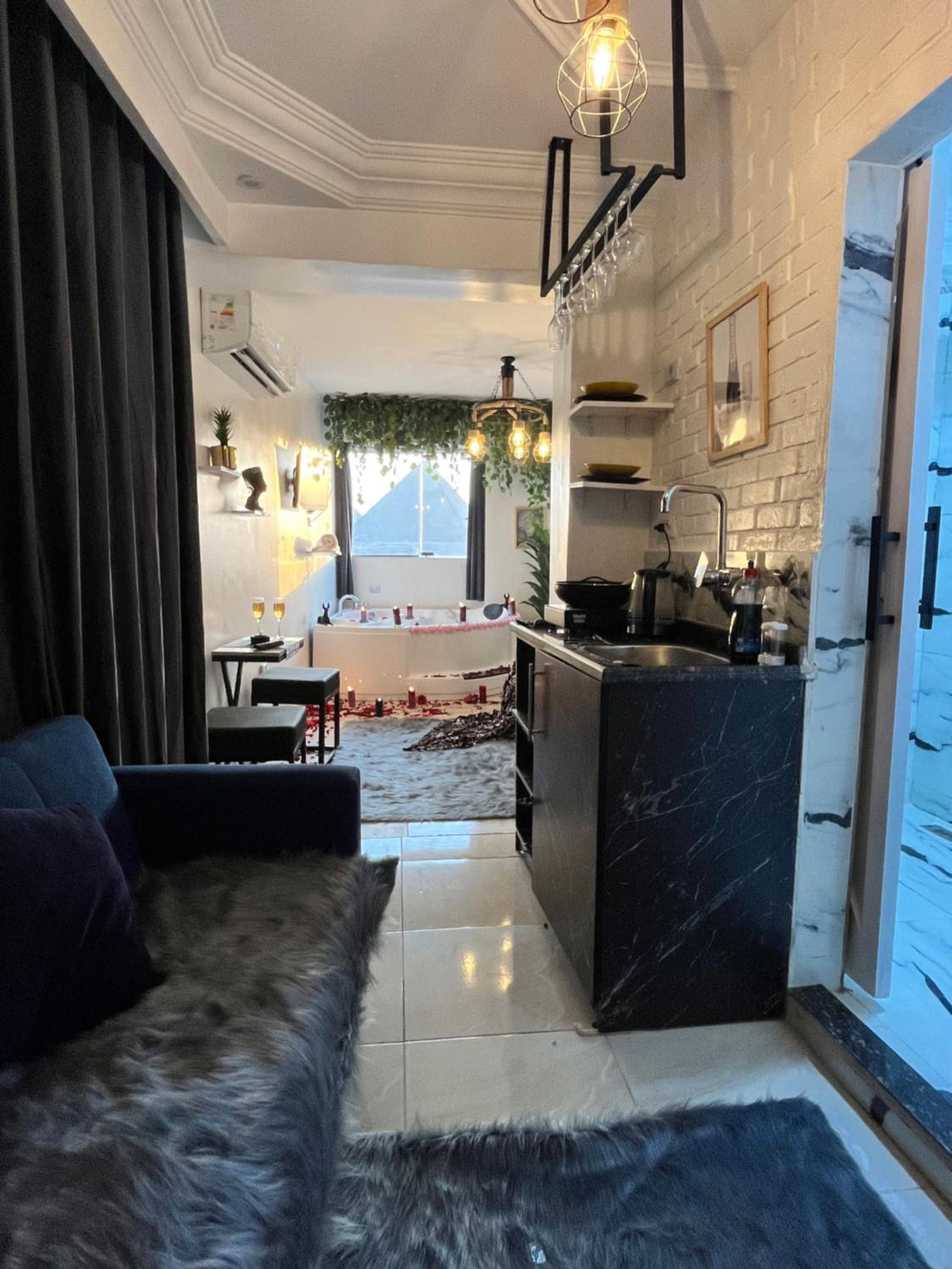 Prime Location: Nestled just 1.8 km from the Great Sphinx and 2 km from the Giza Pyramids, Jacuzzi Pyramids View 5 offers a sustainable stay near Cairo's iconic landmarks. Book now for an unforgettable experience!