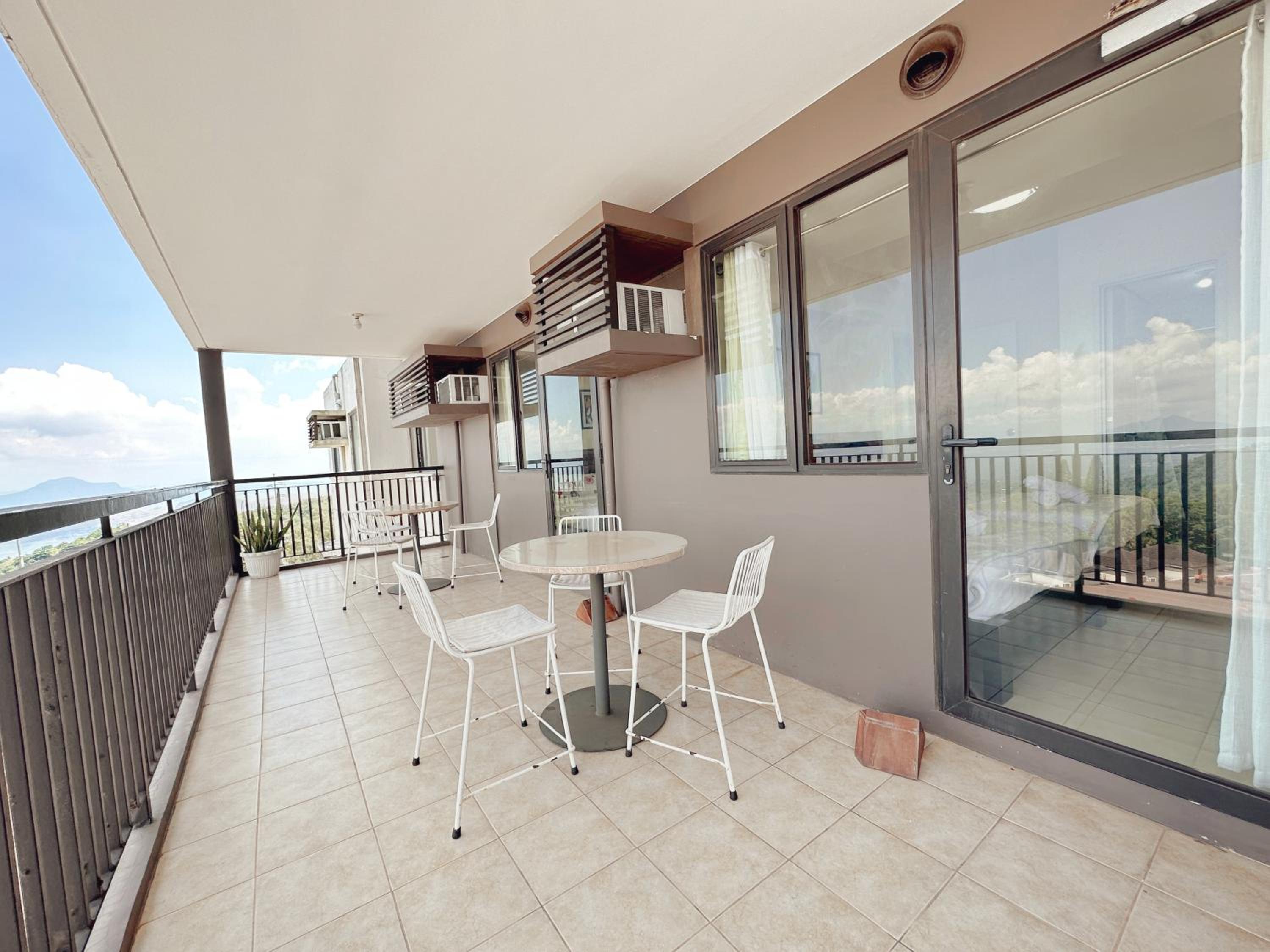 Unforgettable Dining Experience: Enjoy outdoor dining overlooking city views or opt for added privacy in this serene setting. Don't miss the chance to book your stay at Chill @ 10f Tagaytay-2BR+Balcony w/ Panoramic View for a truly memorable getaway.