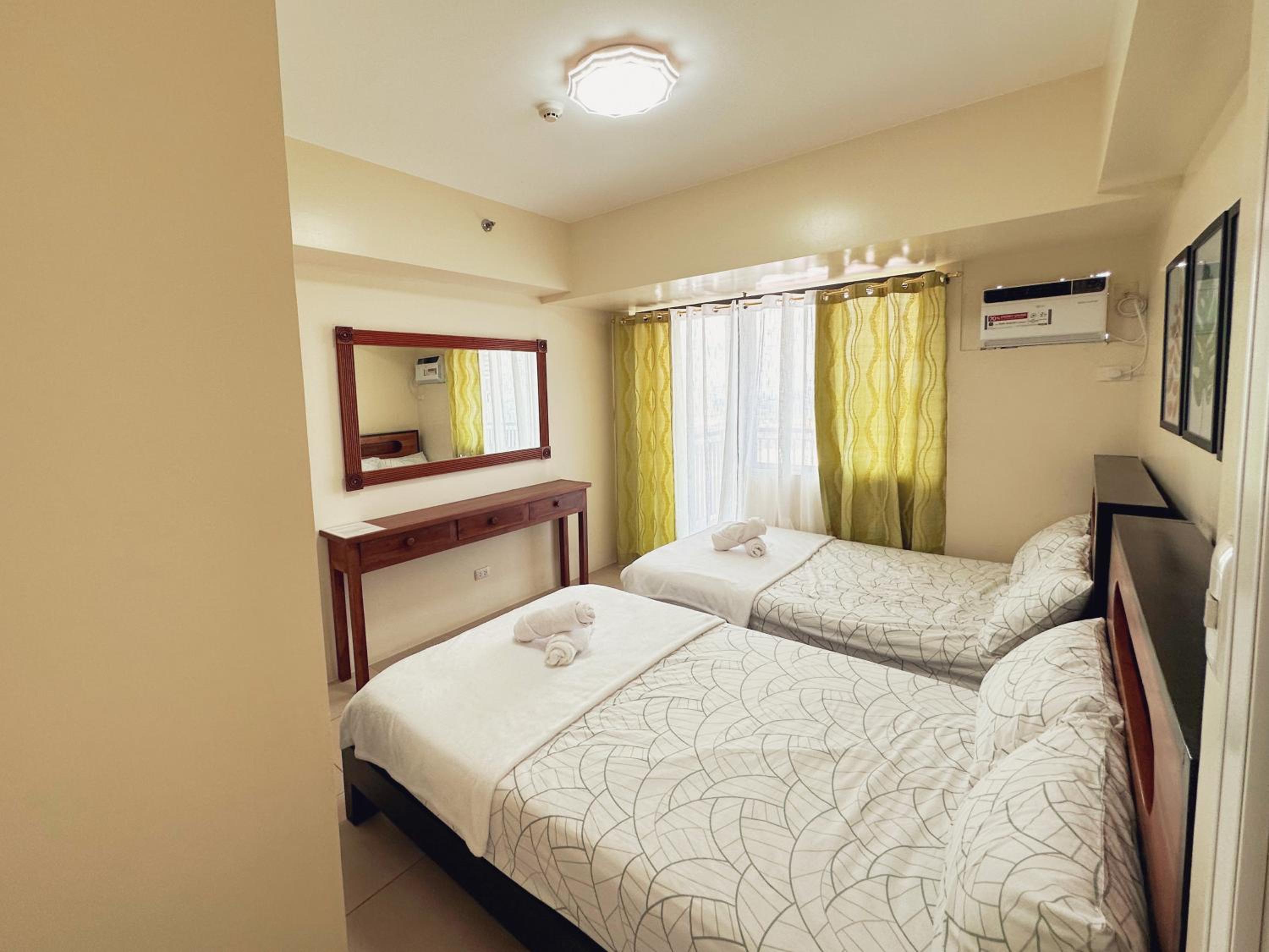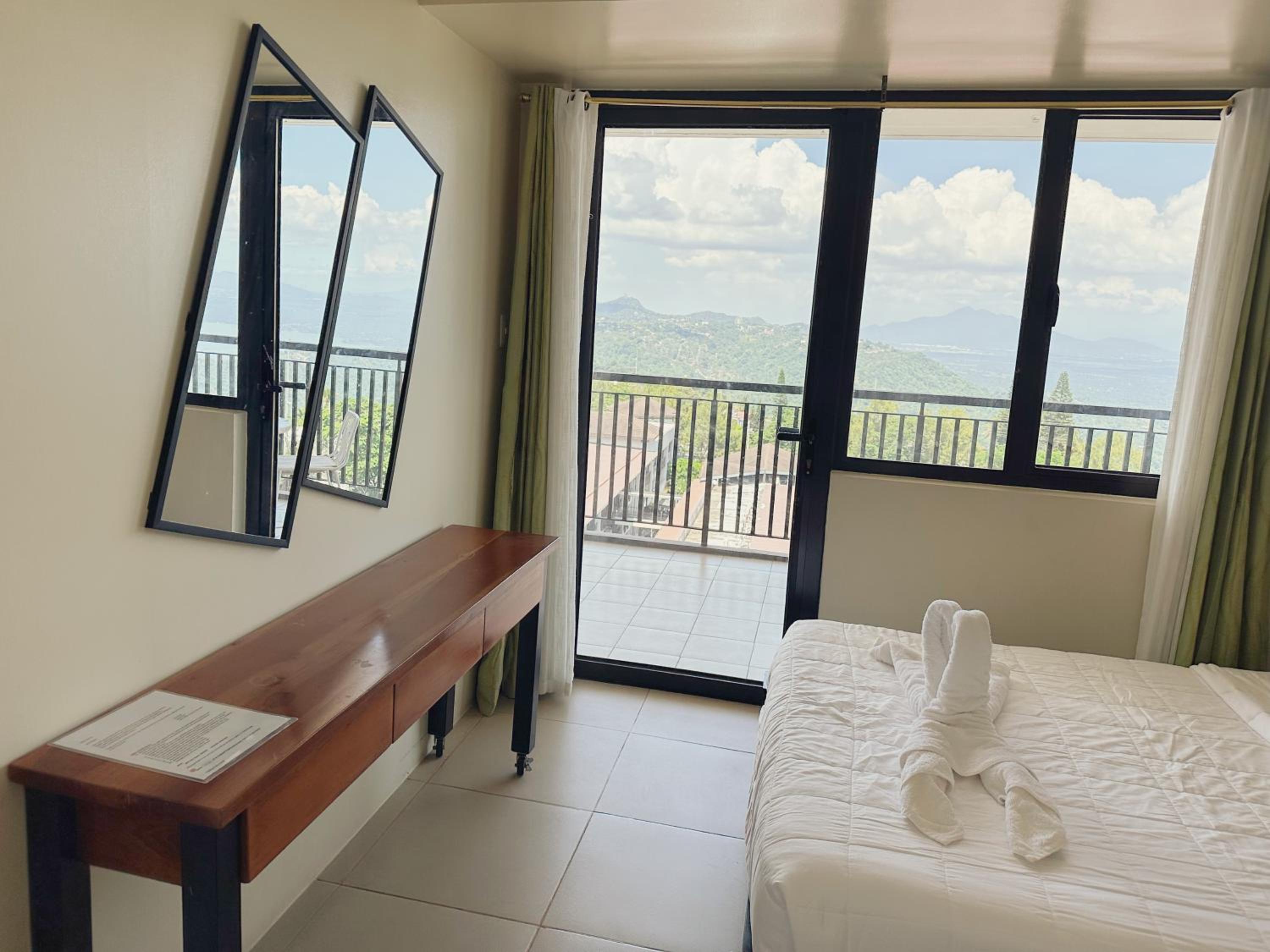 Panoramic Views and Modern Amenities: Chill @ 10f Tagaytay-2BR+Balcony offers a pool with a view, lake view, and a balcony. The 2-bedroom aparthotel boasts a terrace with mountain views, a fully equipped kitchen, and a dining area for an unforgettable stay.