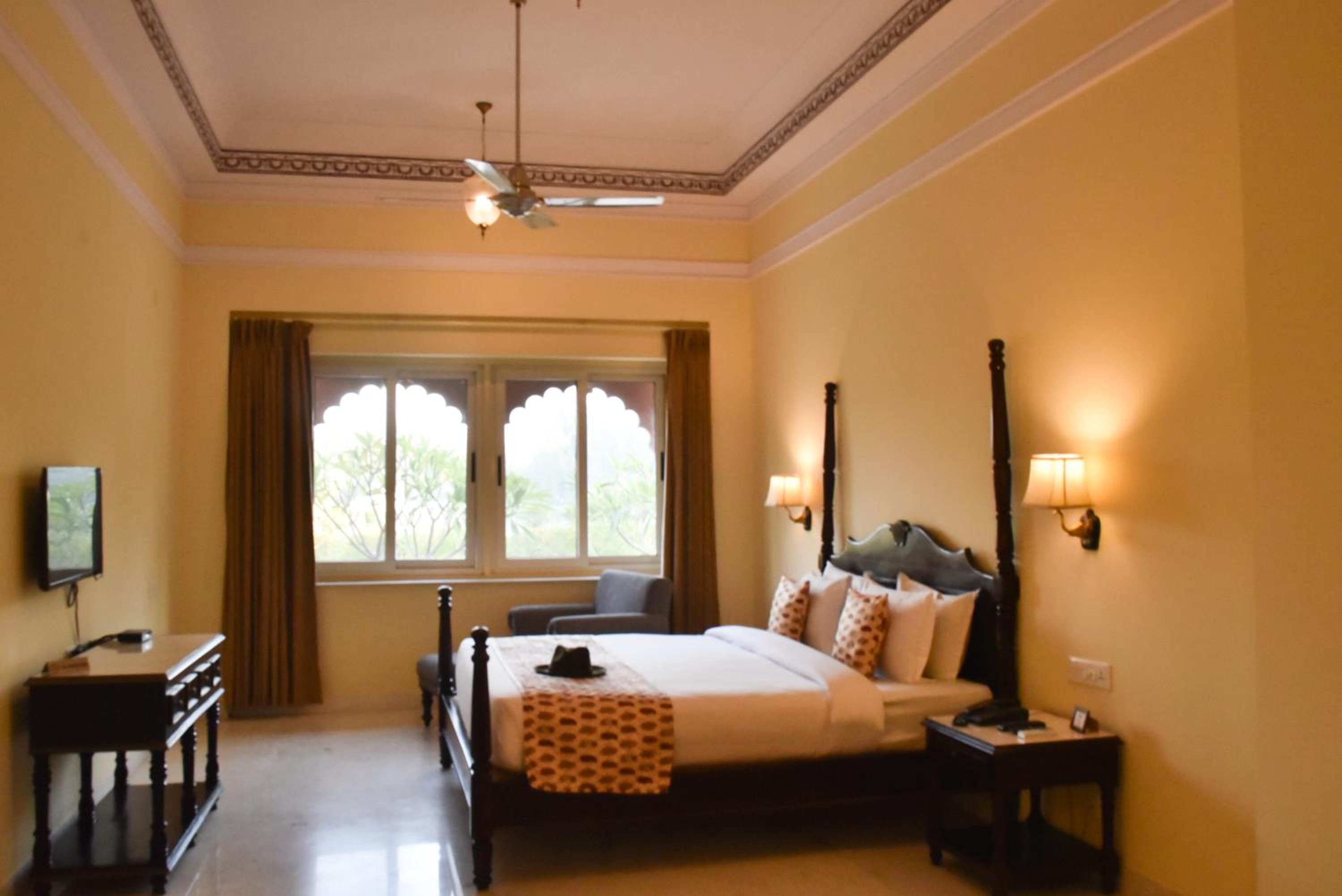 Unwind by the outdoor pool, indulge in a rejuvenating body massage, or try your hand at fishing. For the adventurous souls, camel rides and bicycle rentals are available to explore the nearby attractions like Bhangarh and Chand Baori Stepwell Abhaneri.