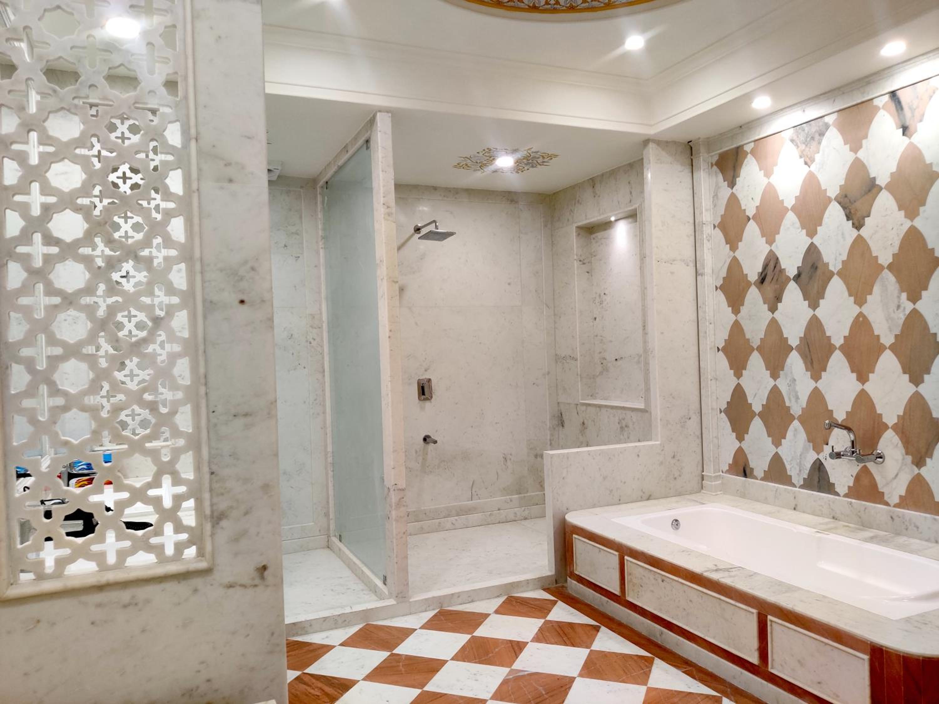 This was one of the more luxury, higher priced accommodations of our trip of India and we did not regret booking it. All of the staff were very friendly, attentive and helpful. Our room was beautiful and large with a lovely big bathroom and shower. The dinner and breakfast were buffet style, great selection and very tasty. We loved the building and the grounds, very pretty and well maintained. Swimming in the nice pool and sitting on the terrace with view of the lake behind the hotel were a treat! Thanks for a very enjoyable stay, well done Umaid Palace Hotel!