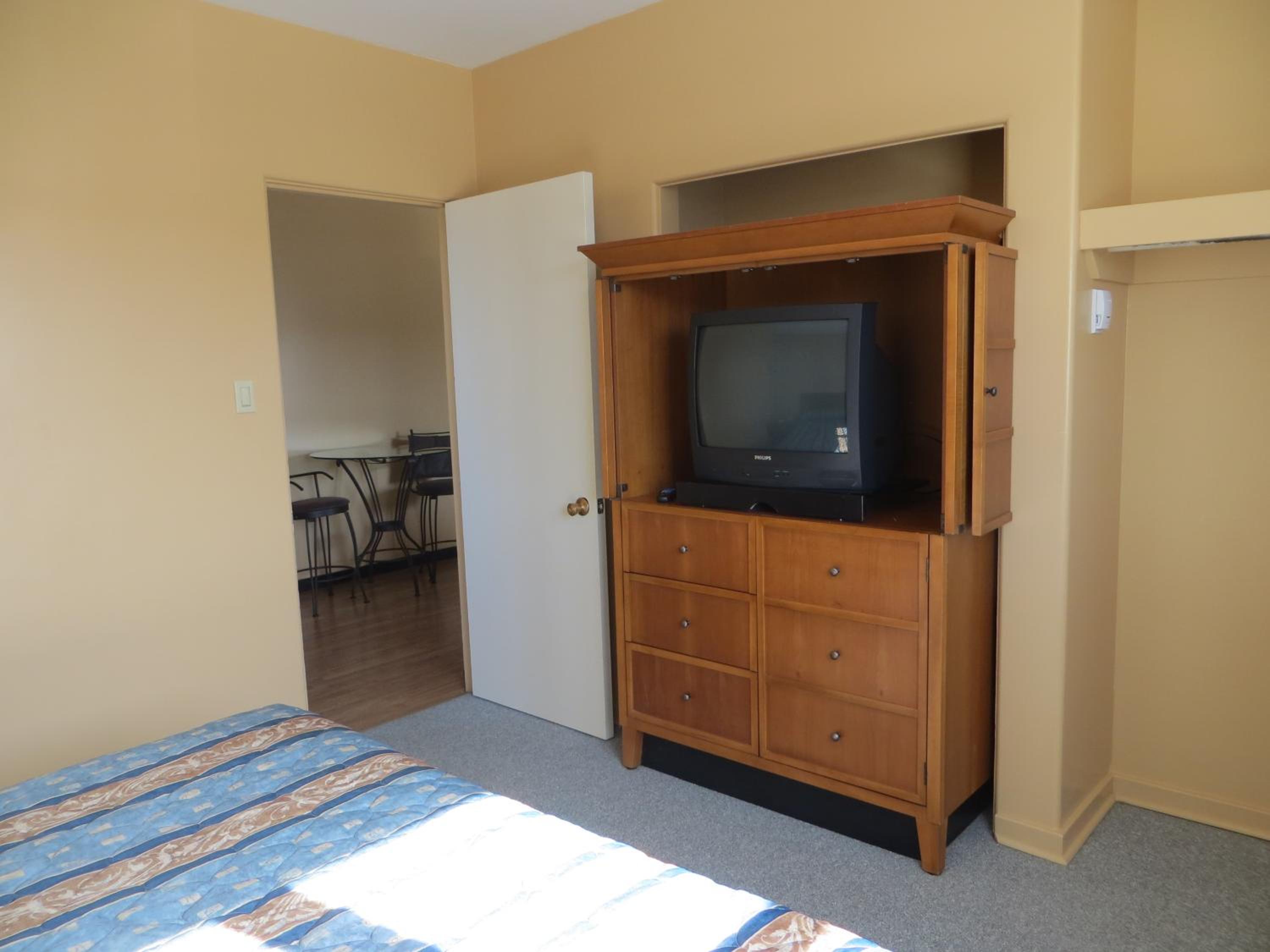 We rent a unit with 2 bedrooms and a kitchenette. There is no air conditioner in 1 room and in the living area. To think that the weather is so hot that time, so 1 air conditioner that built in 1 room is not enough for the whole unit. We have babies and we have a hard time to get in the 2nd floor because there is no elevator. If you need an extra towel or anything, you need to go down in the main floor and get it for yourself from the front desk. But we like the size of the unit.