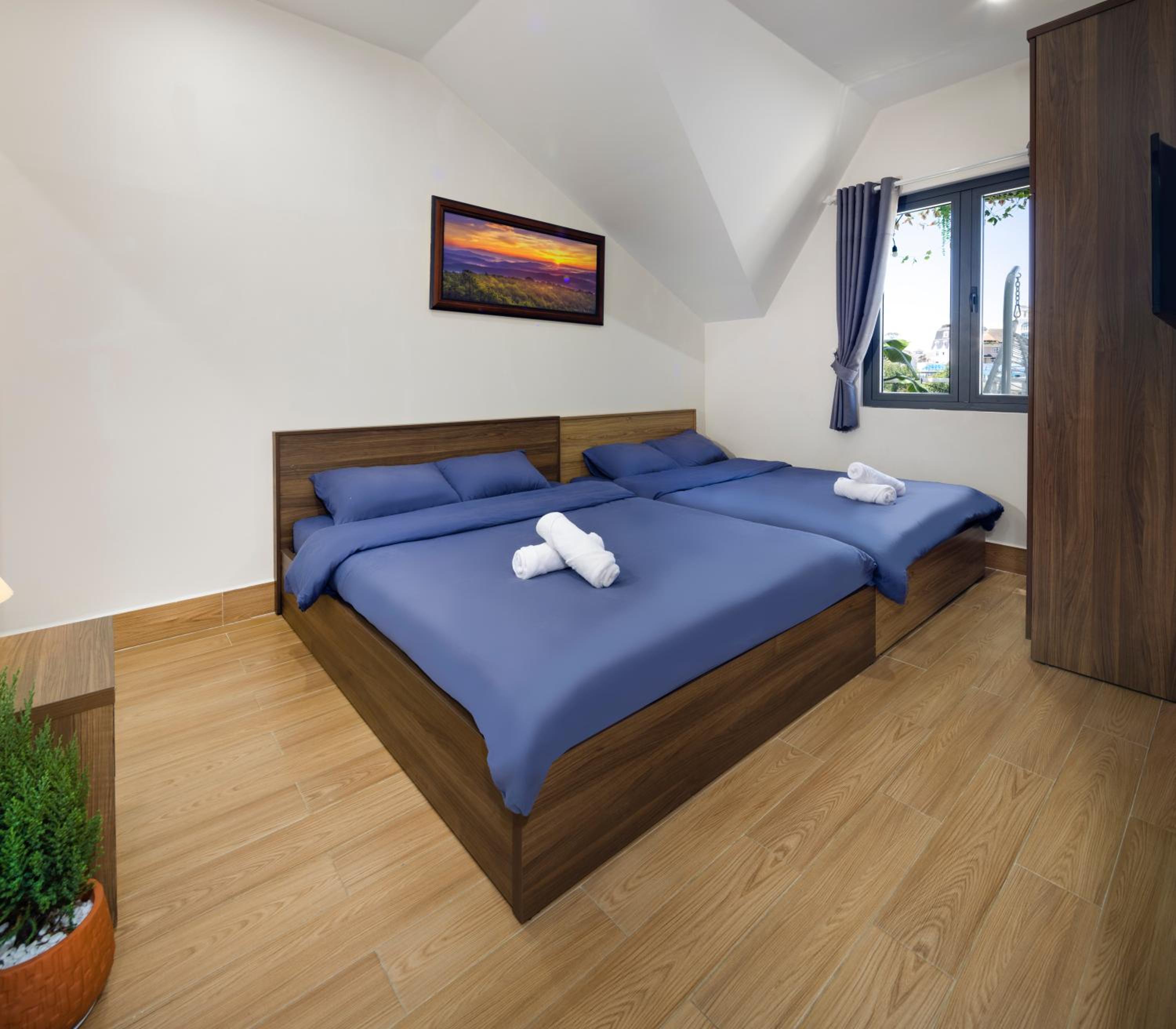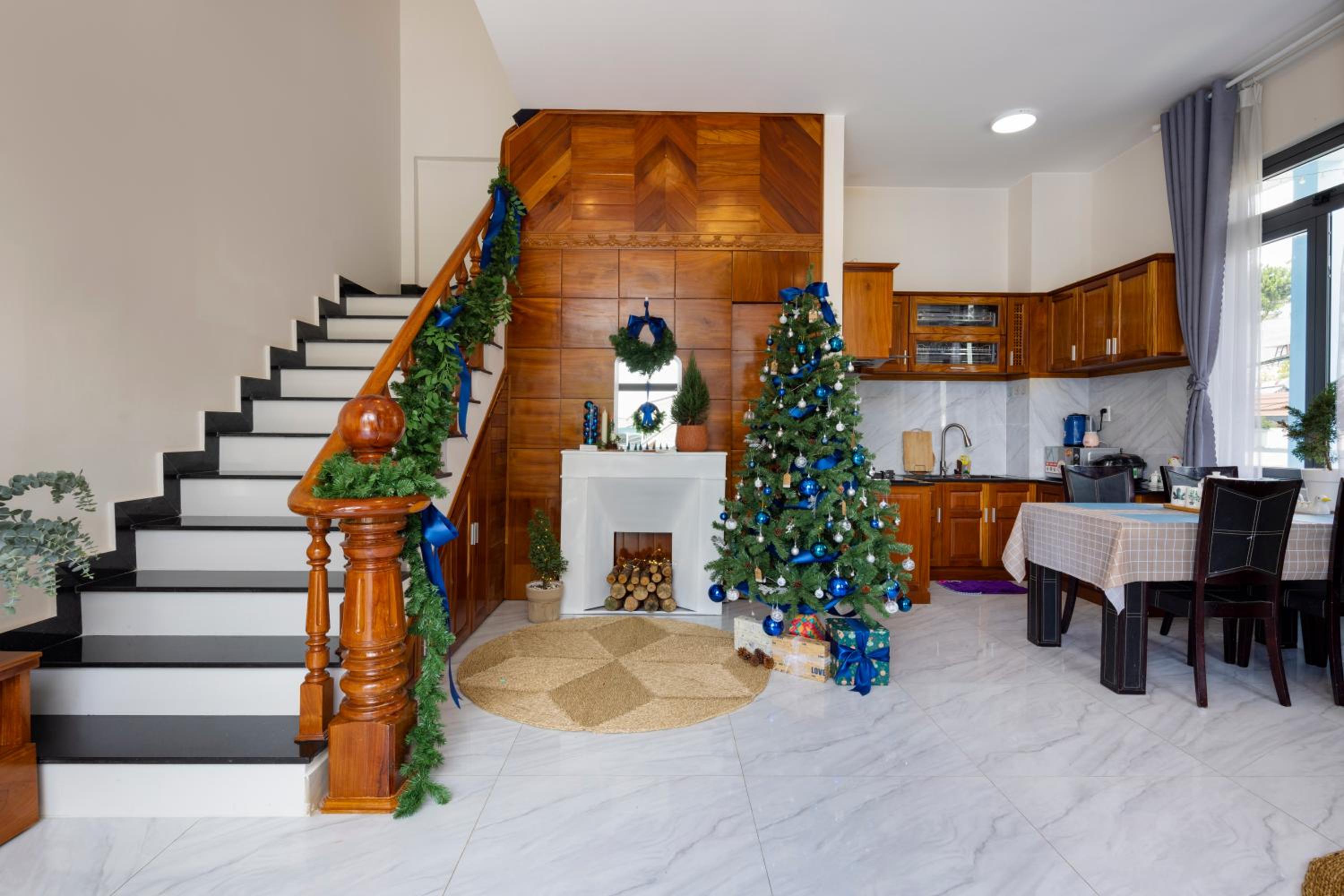 Nhà Giáng Sinh Trên Đồi Villa, nestled in Da Lat, offers cozy accommodation with stunning mountain views from private patios. Guests can unwind in rooms equipped with modern amenities like bed linen, free toiletries, and iPod docking stations.