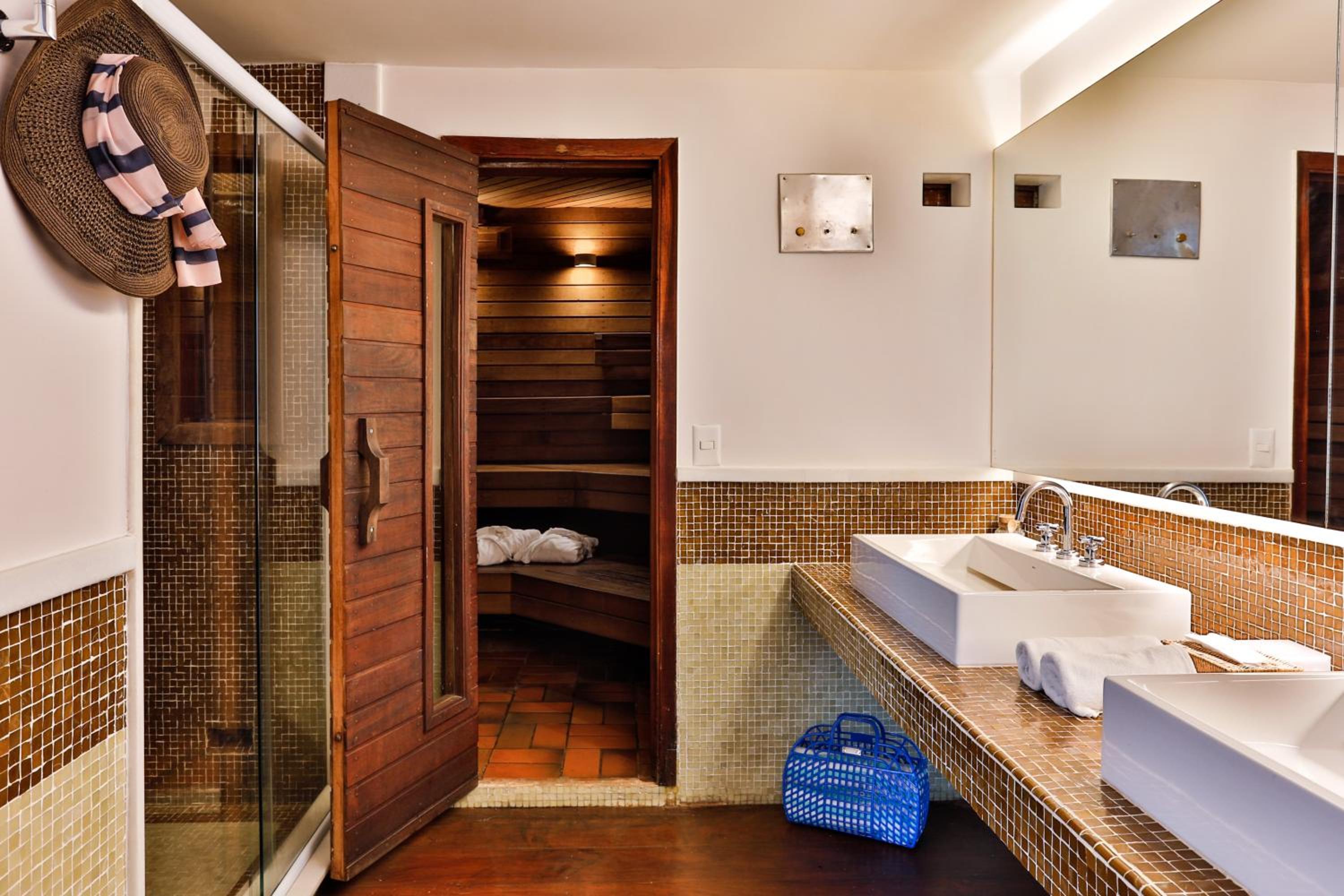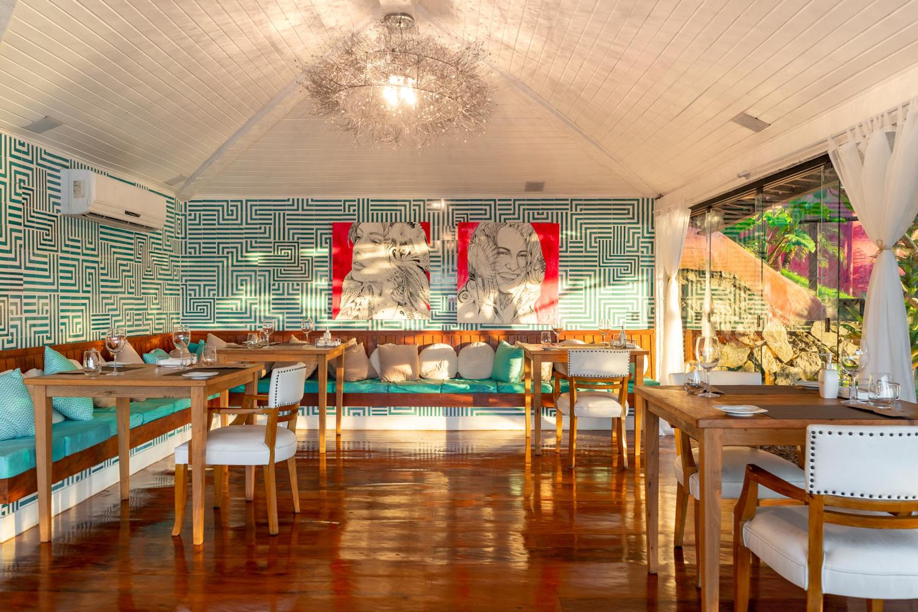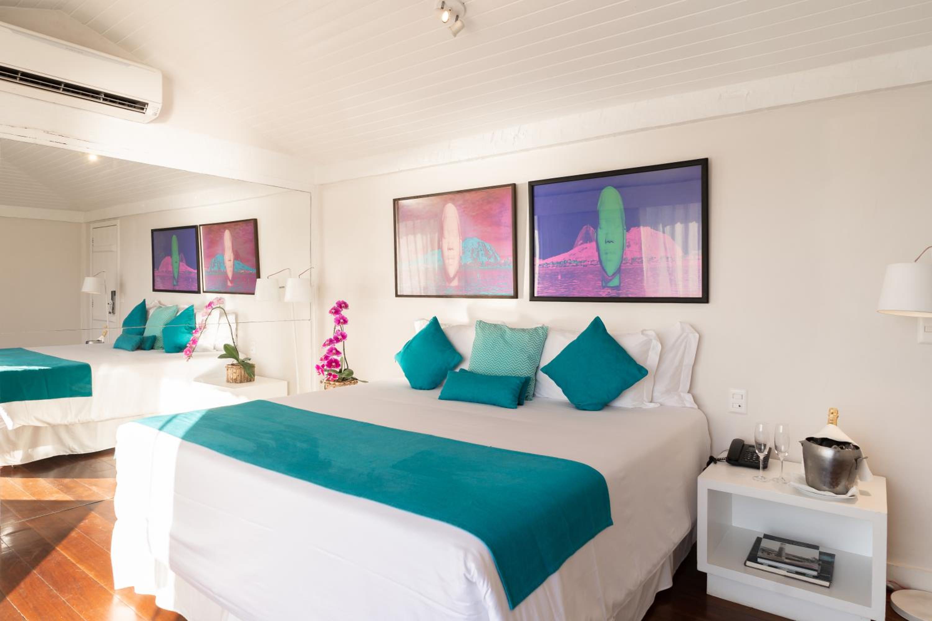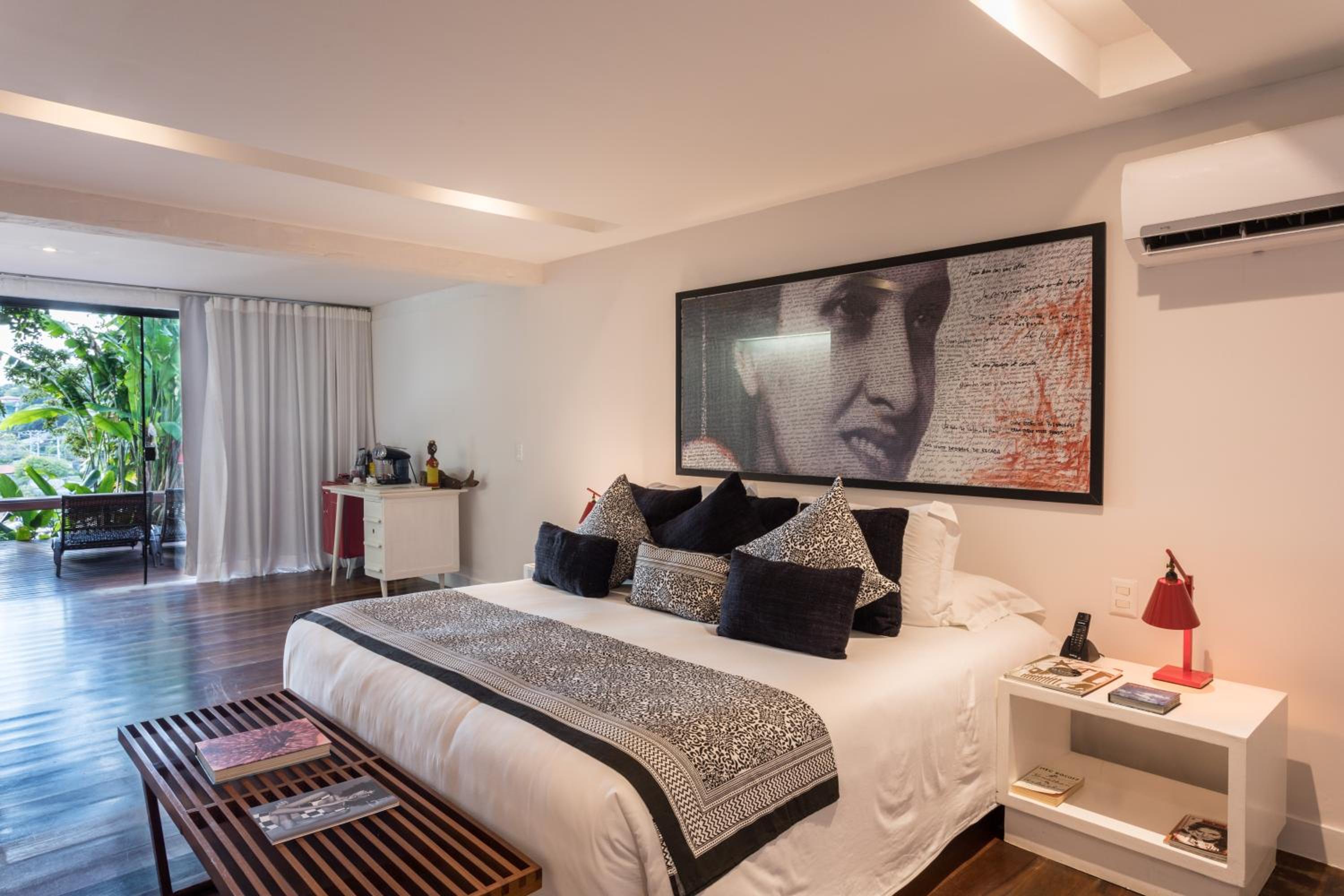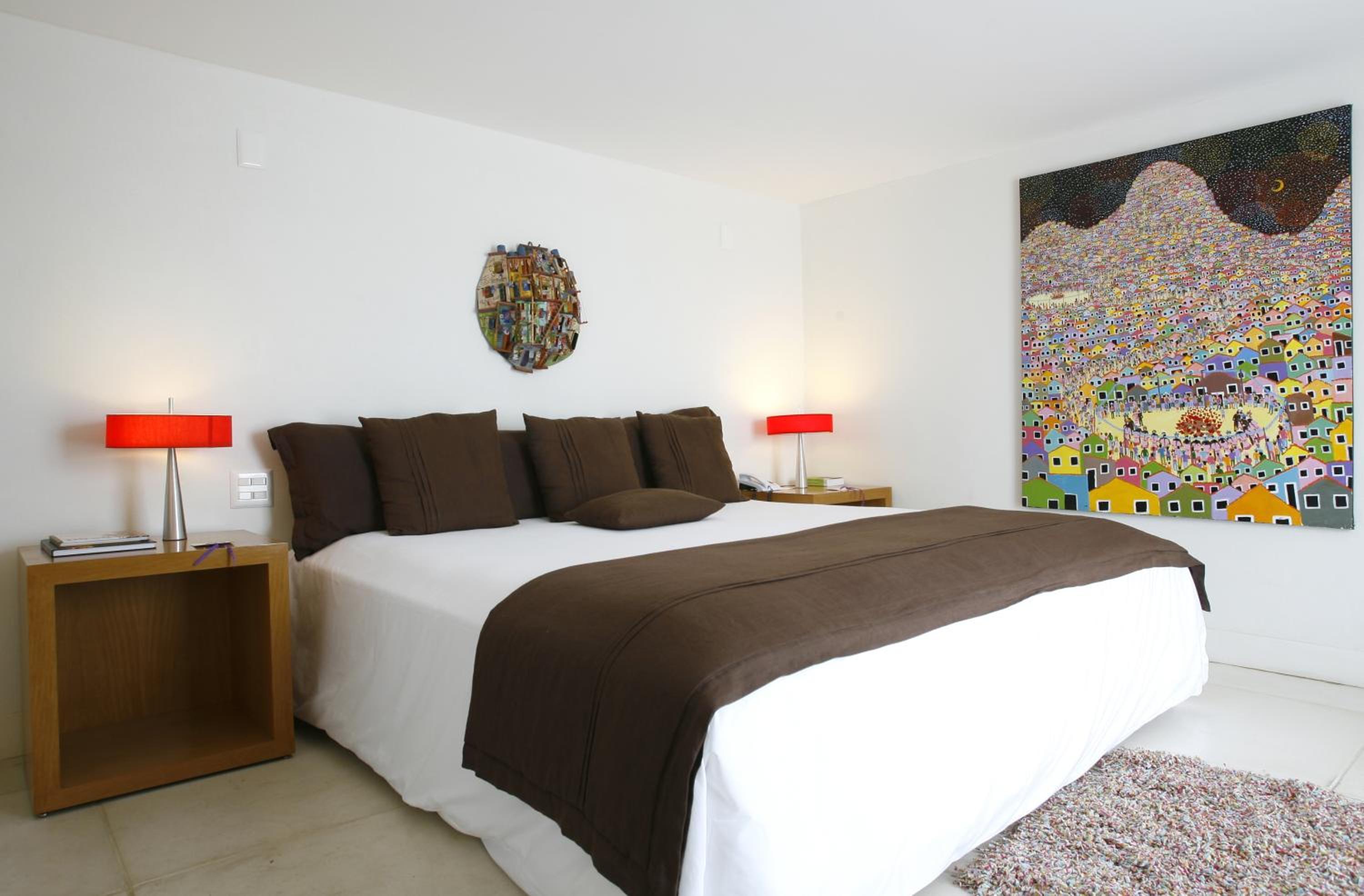 Indulge in delicious Brazilian cuisine at the rooftop restaurant, surrounded by flowers and hand-painted art, or grab a snack and drink at the poolside bar while soaking up the sun.