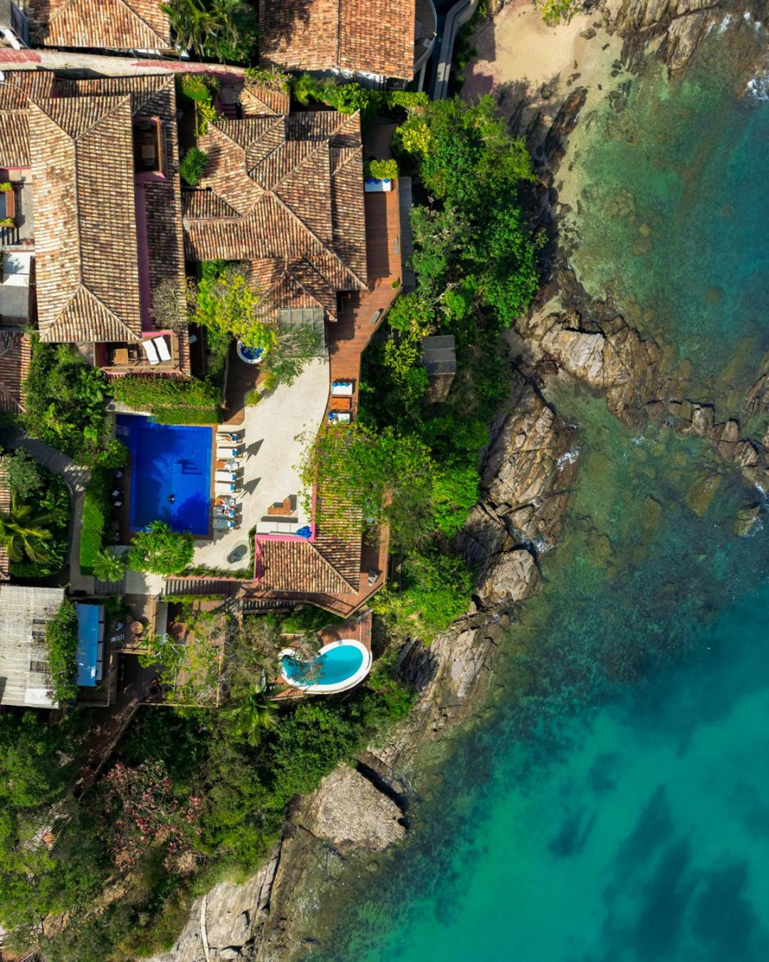 The Insolito Boutique Hotel & Spa offers exclusive rooms with bright tones and luxurious amenities, including wooden deck balconies with stunning ocean views and hot tubs in select suites.
