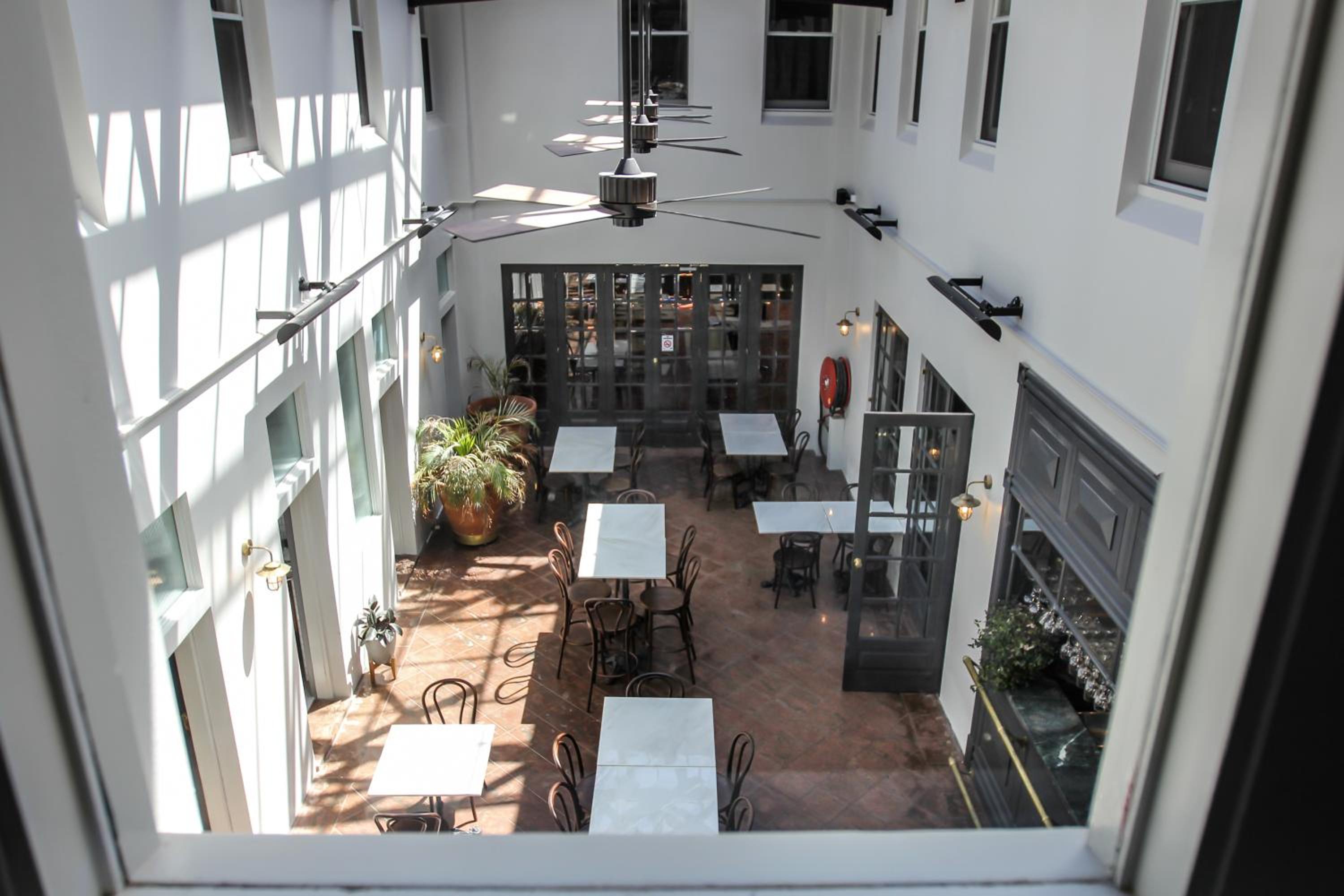 Noisy patrons in courtyard