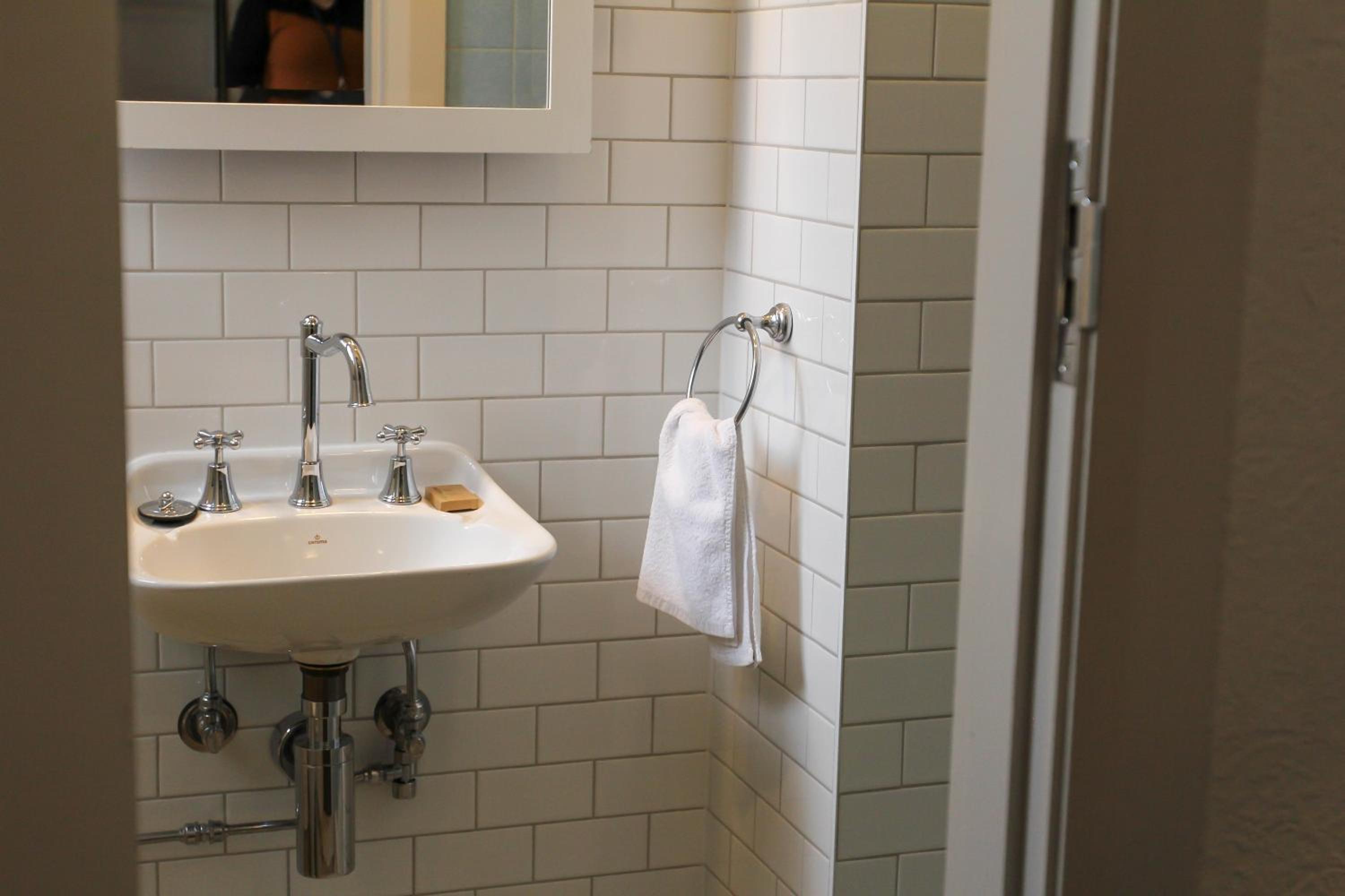 However, the shower and toilet are particularly dated. It’s difficult to get a mild or lukewarm water temperature in the sink or shower. Furthermore, there’s no shower curtain so water splashes all over the bathroom floor.