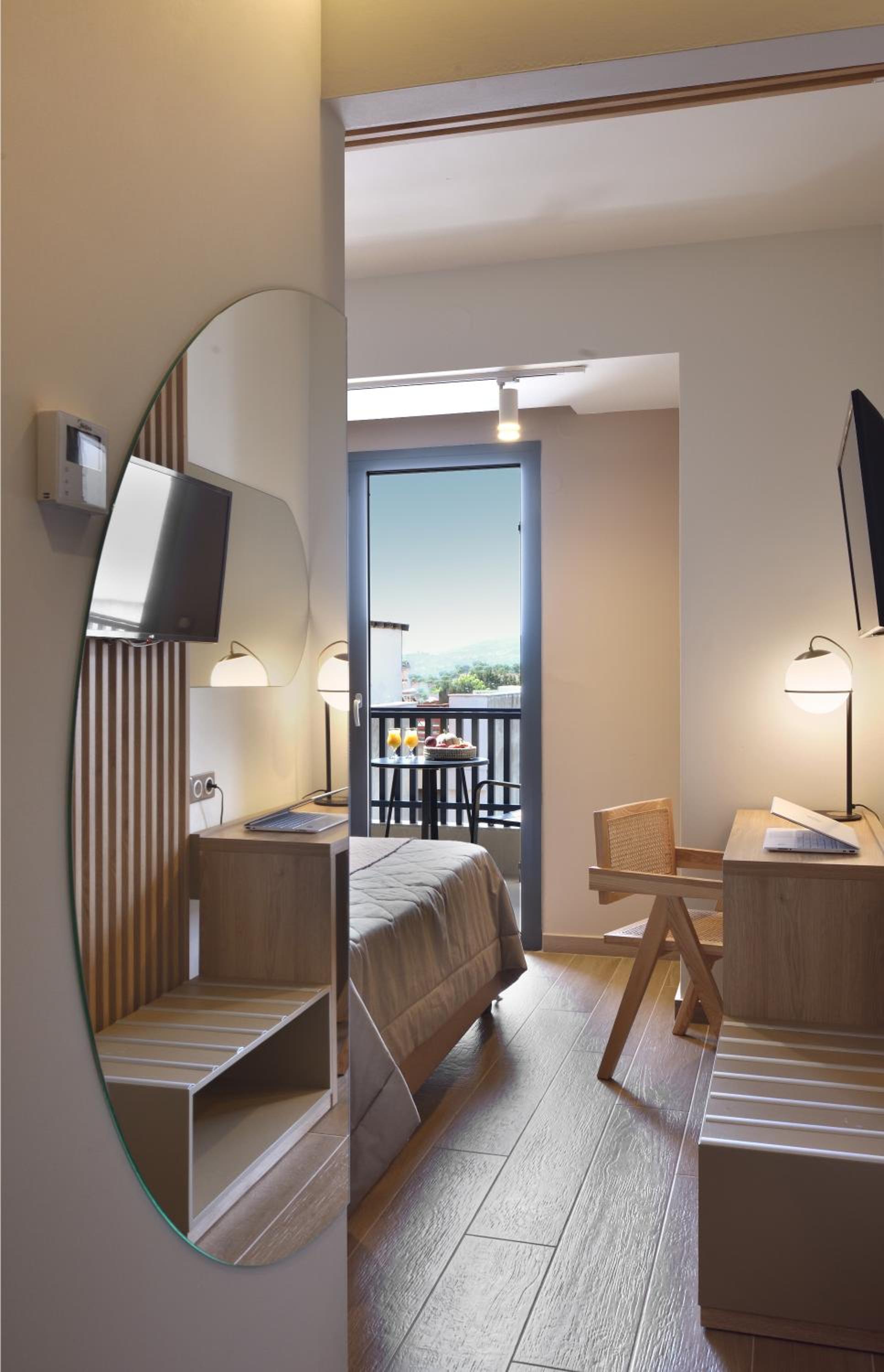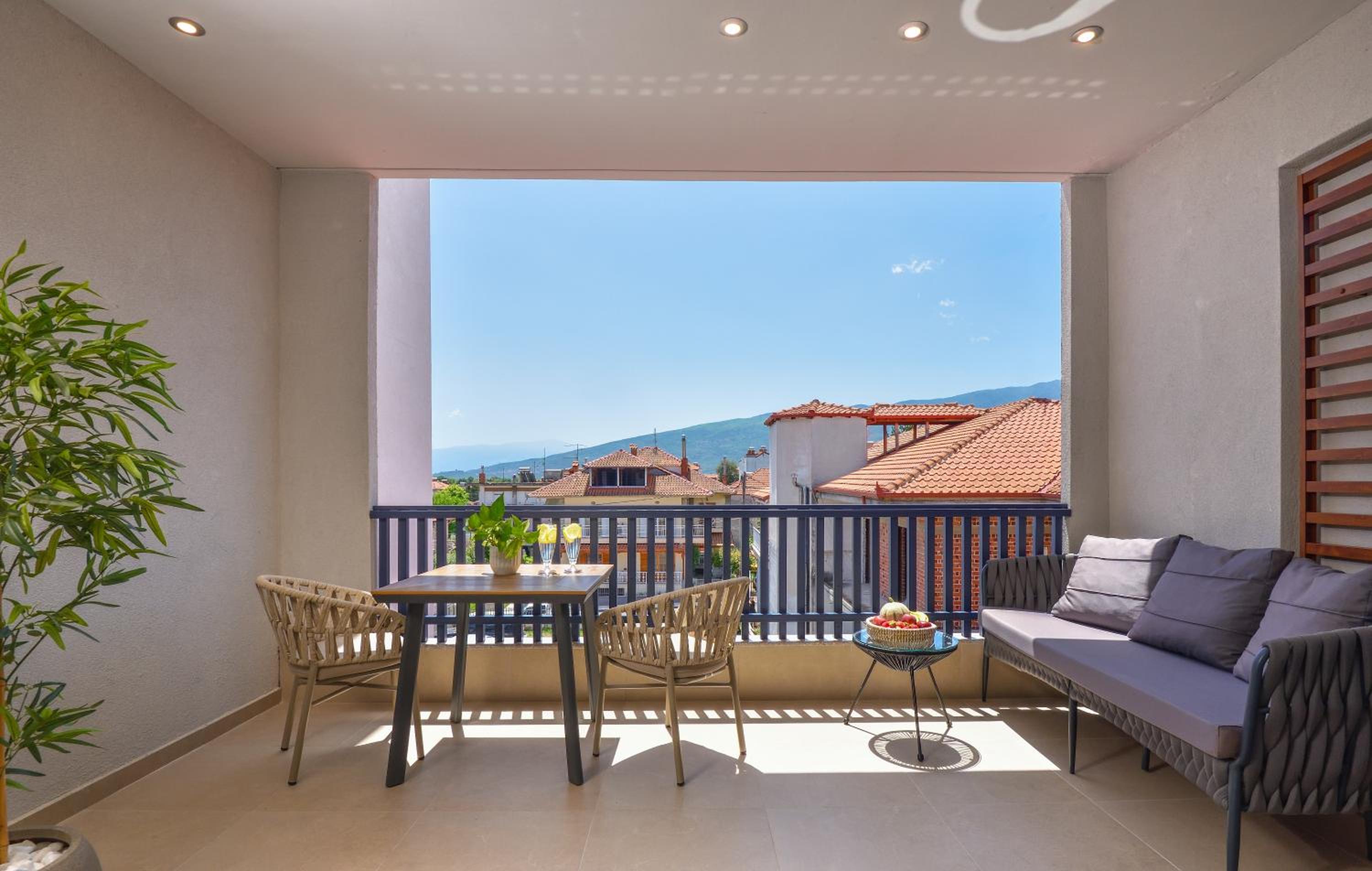 Luxurious Accommodation: CORYLUS Luxury Rooms & Suites, located in Leptokaria, offers elegant rooms with balconies boasting mountain views. Each unit is equipped with air conditioning, flat-screen TV, and a cozy seating area, ensuring a comfortable stay.