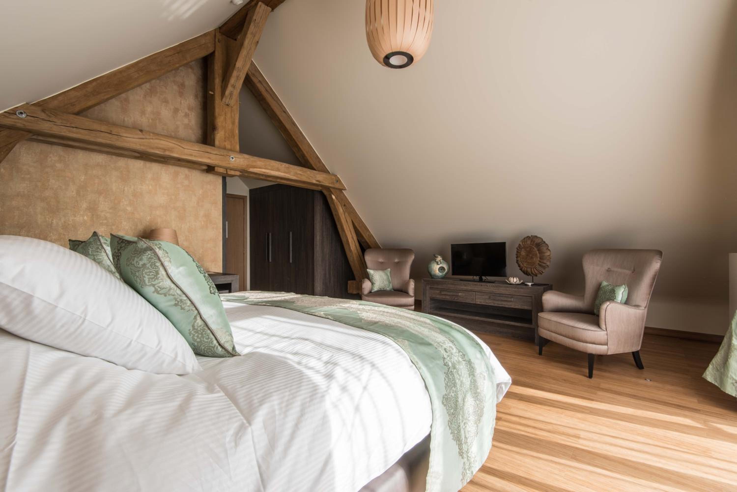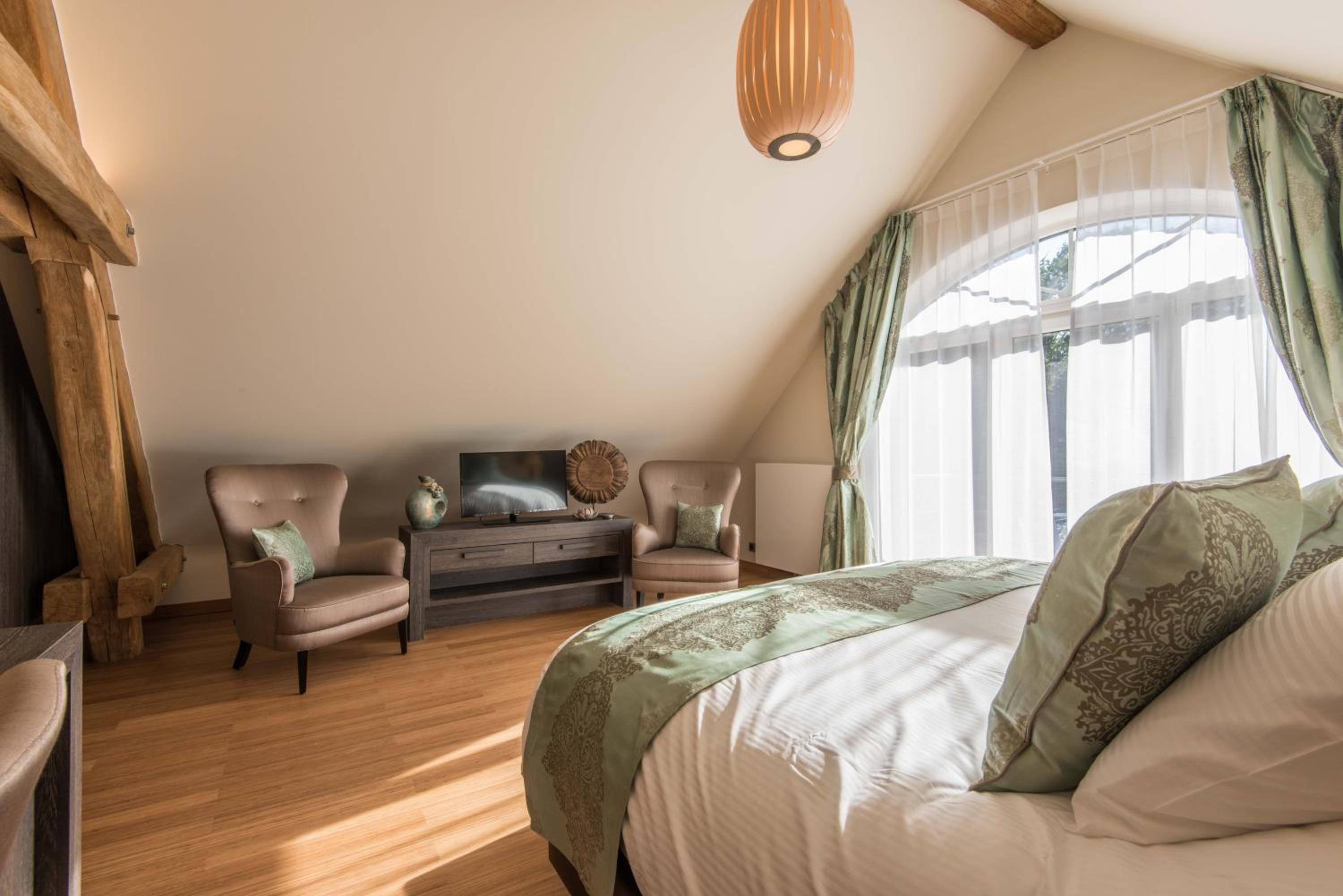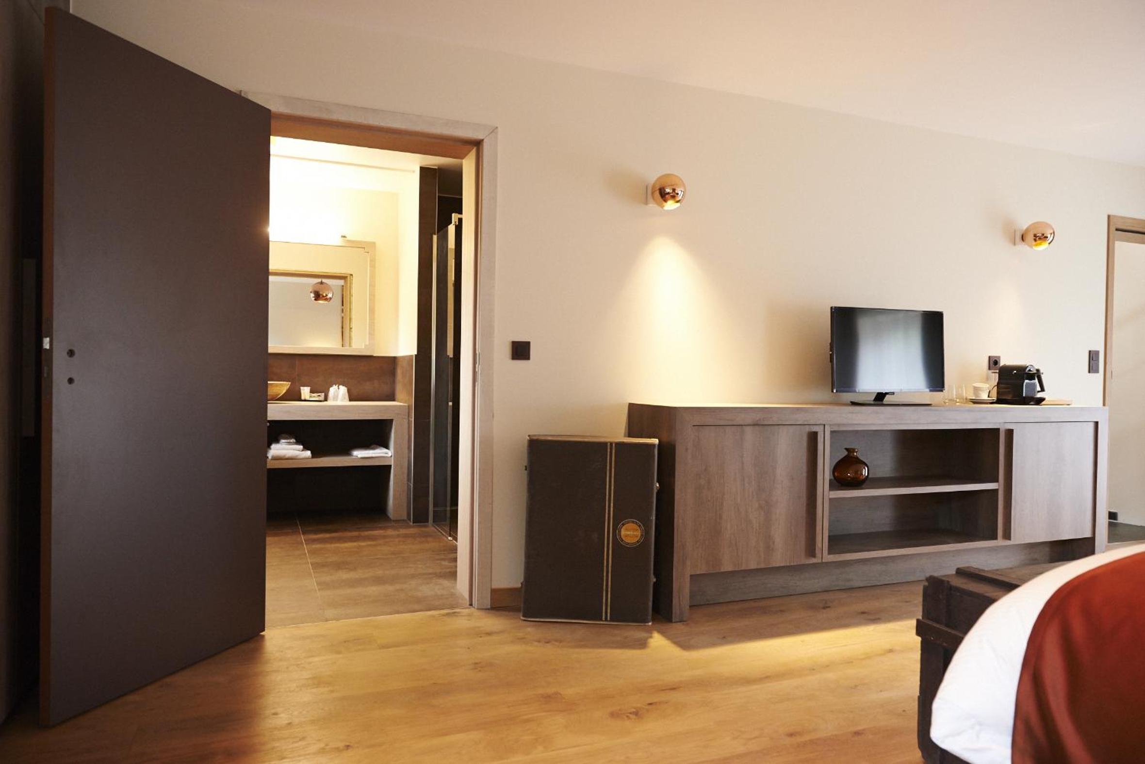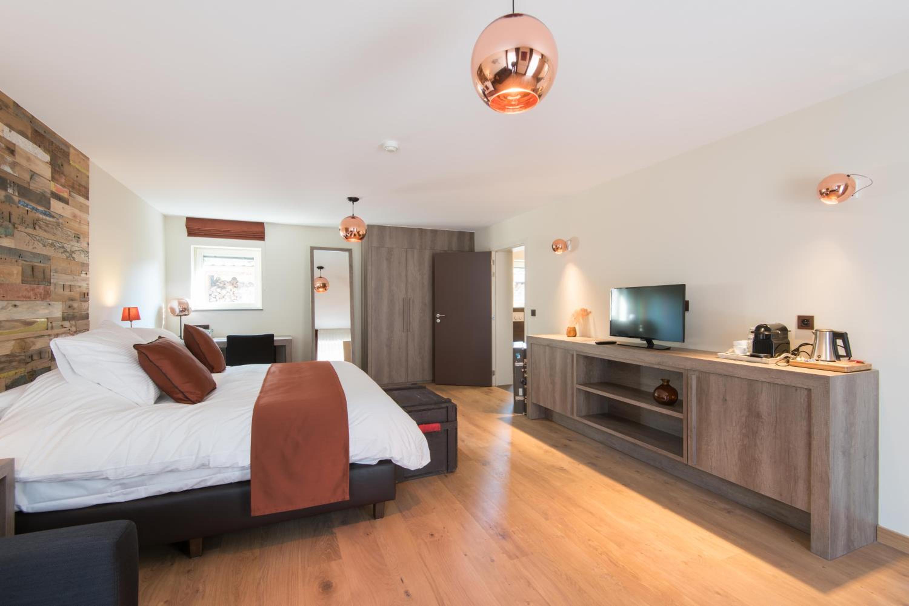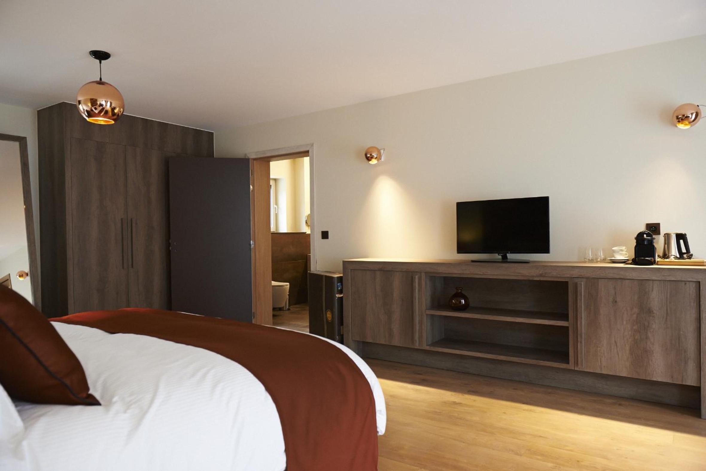 Indulge in a stay at Koru Hôtel & Private Wellness, where comfort meets elegance. Unwind in beautifully designed rooms with modern amenities, including a flat-screen TV, plush seating area, and a coffee machine. The private bathrooms are stocked with premium bathrobes, slippers, and toiletries for your convenience.