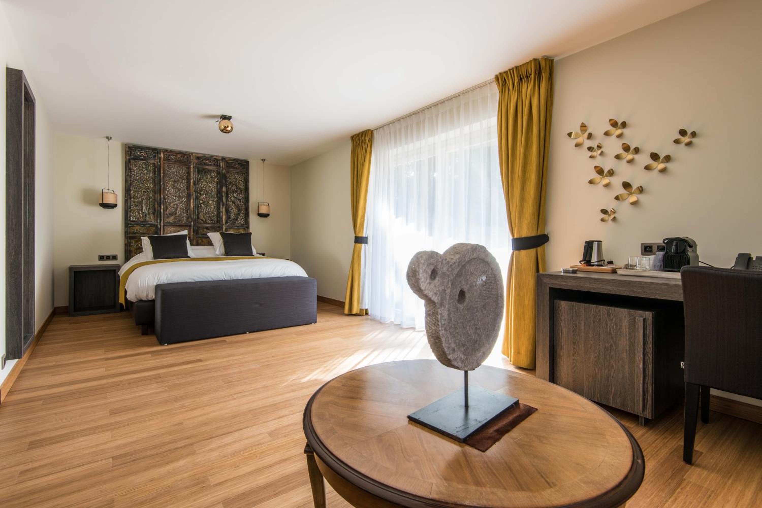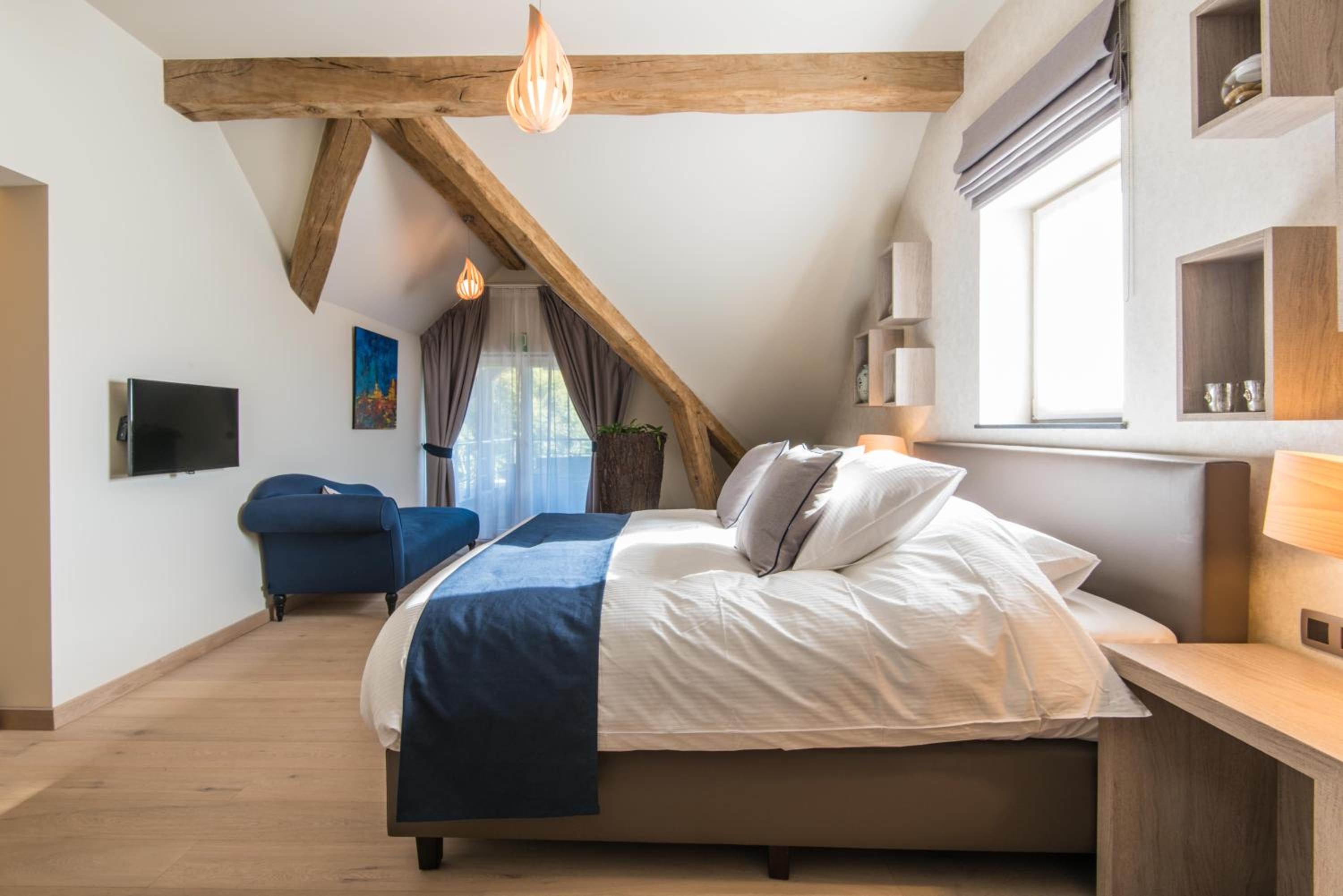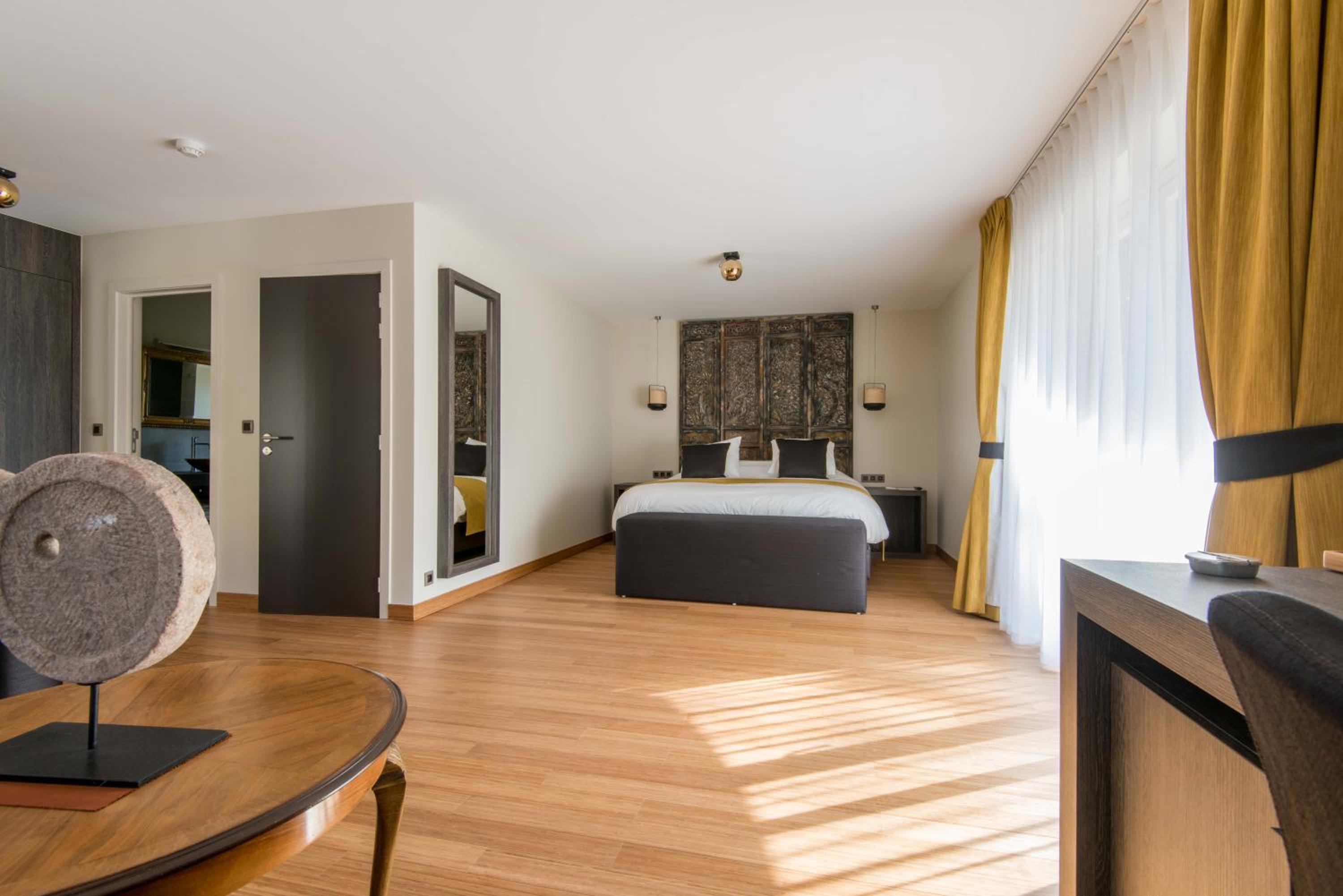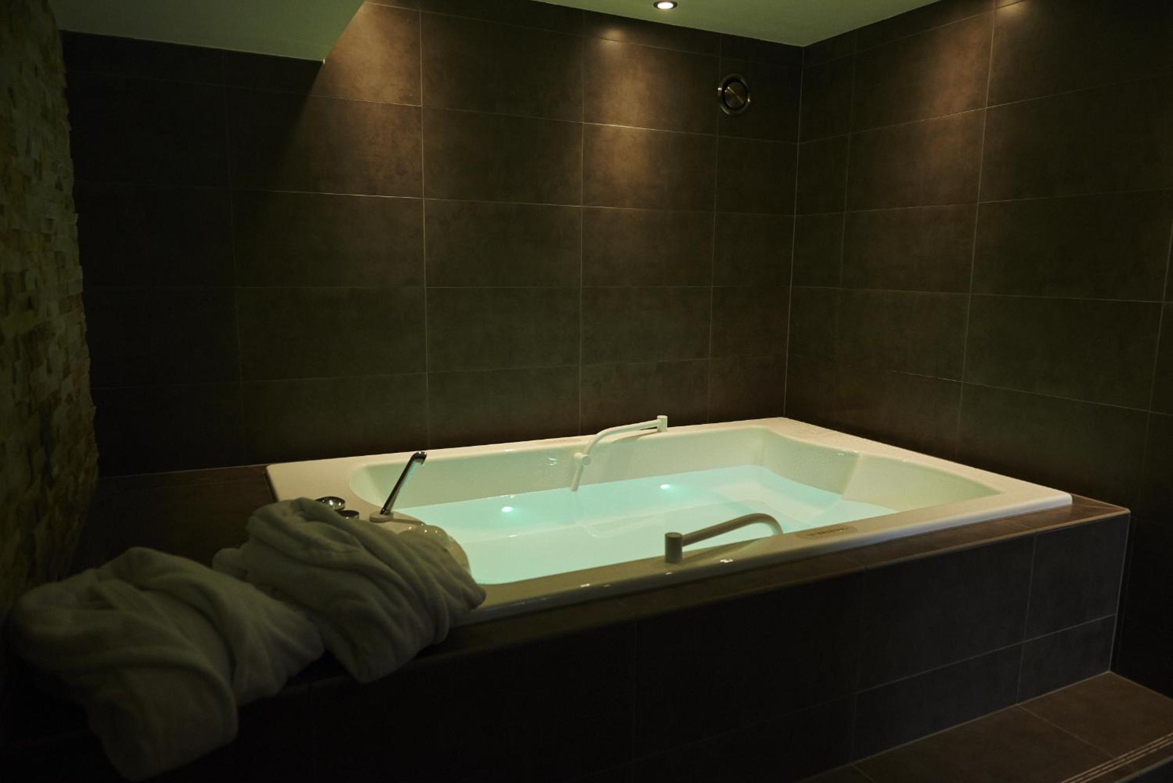 Indulge in a stay at Koru Hôtel & Private Wellness, where comfort meets elegance. Unwind in beautifully designed rooms with modern amenities, including a flat-screen TV, plush seating area, and a coffee machine. The private bathrooms are stocked with premium bathrobes, slippers, and toiletries for your convenience.