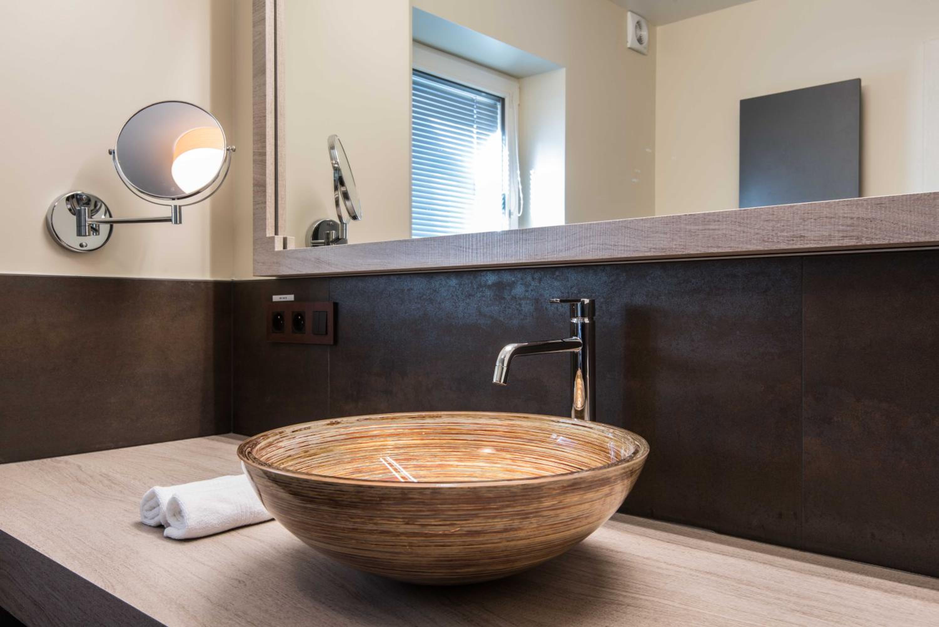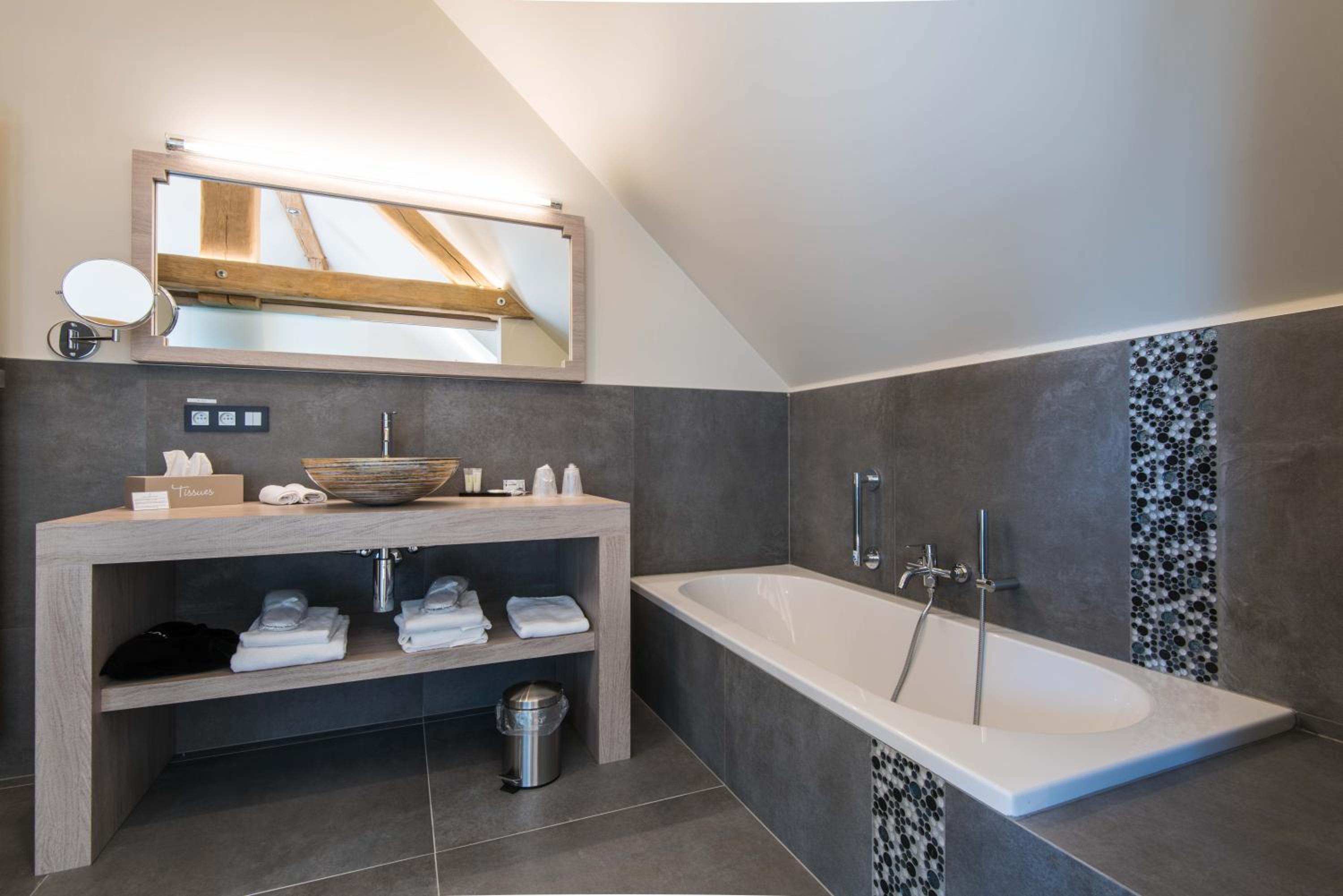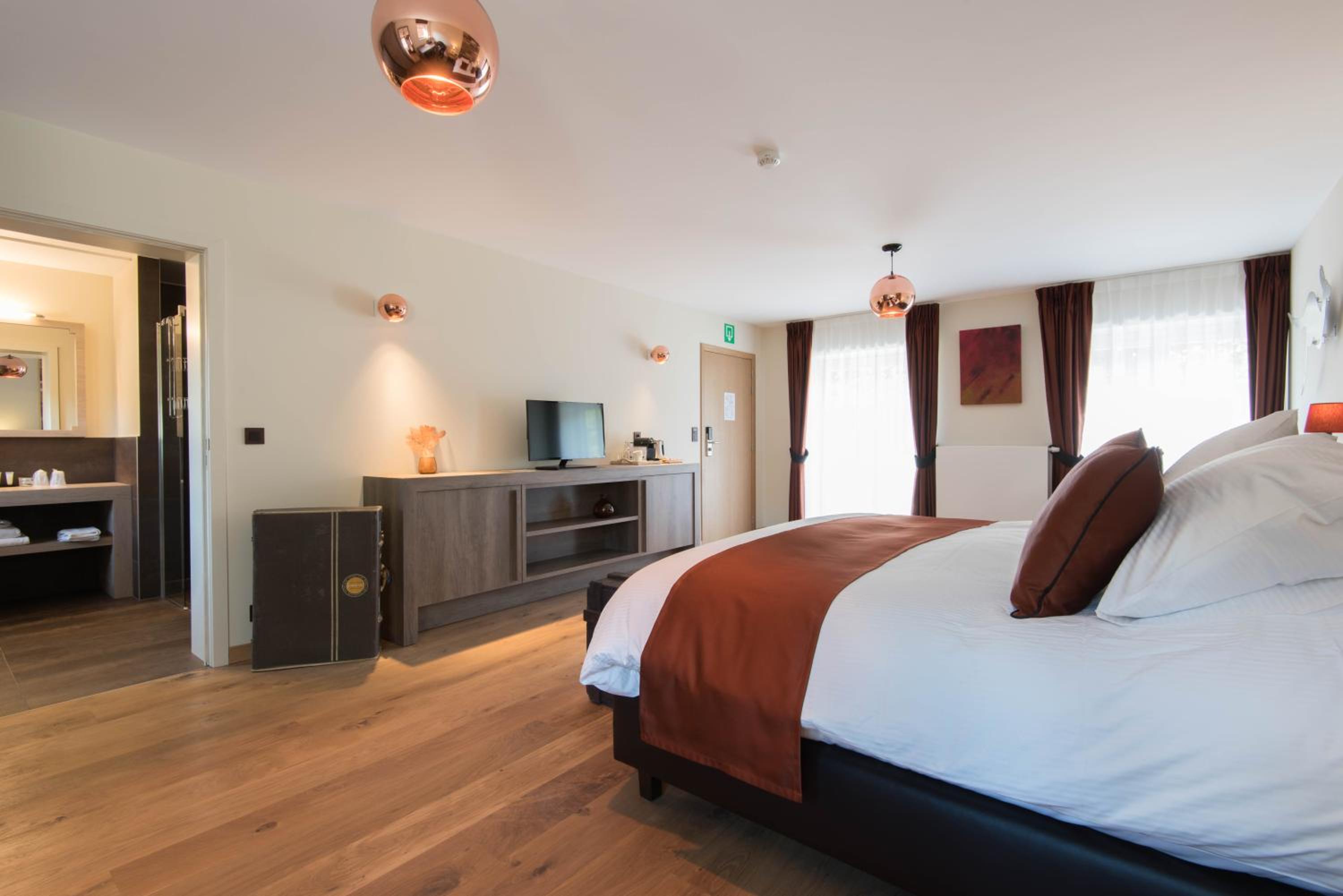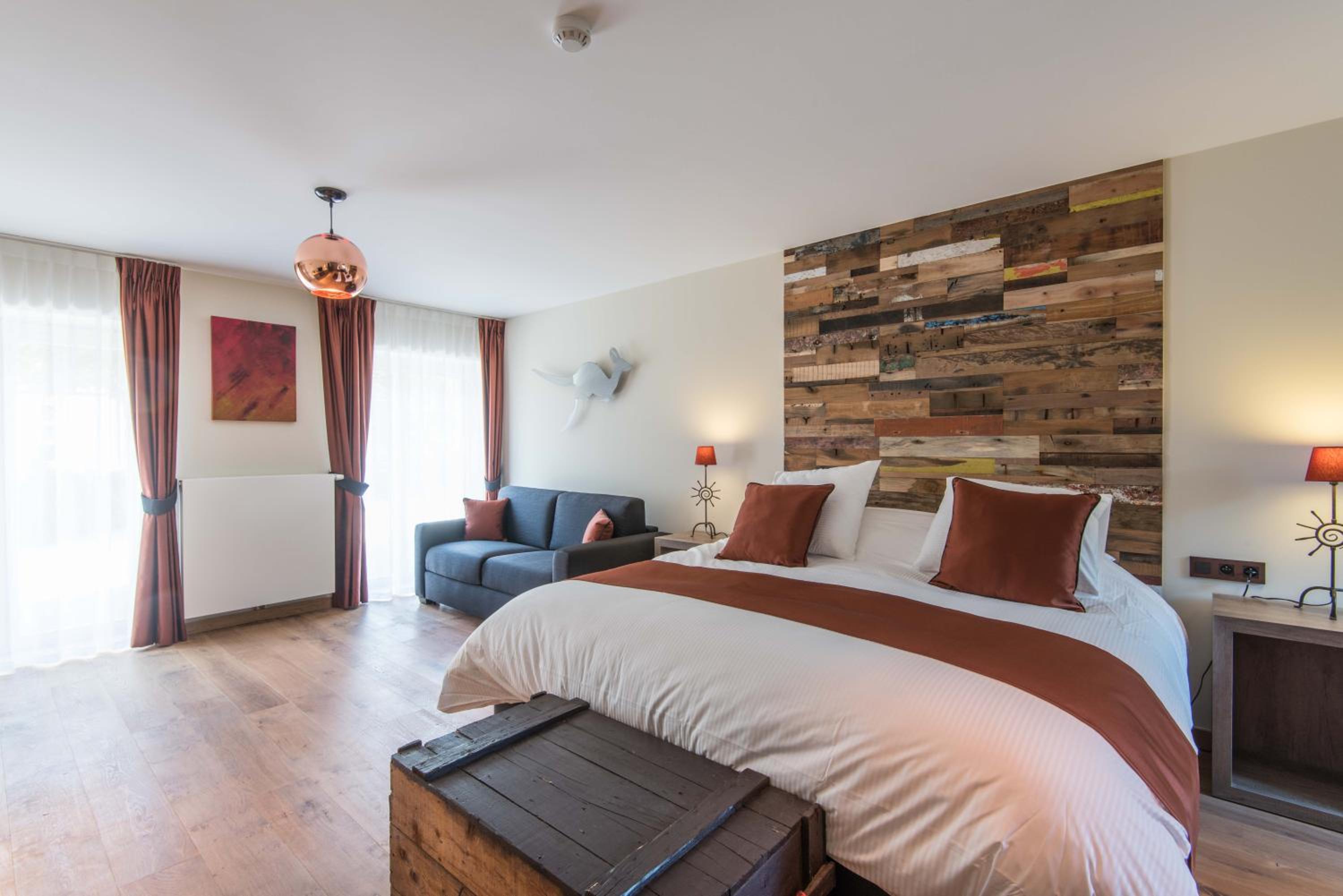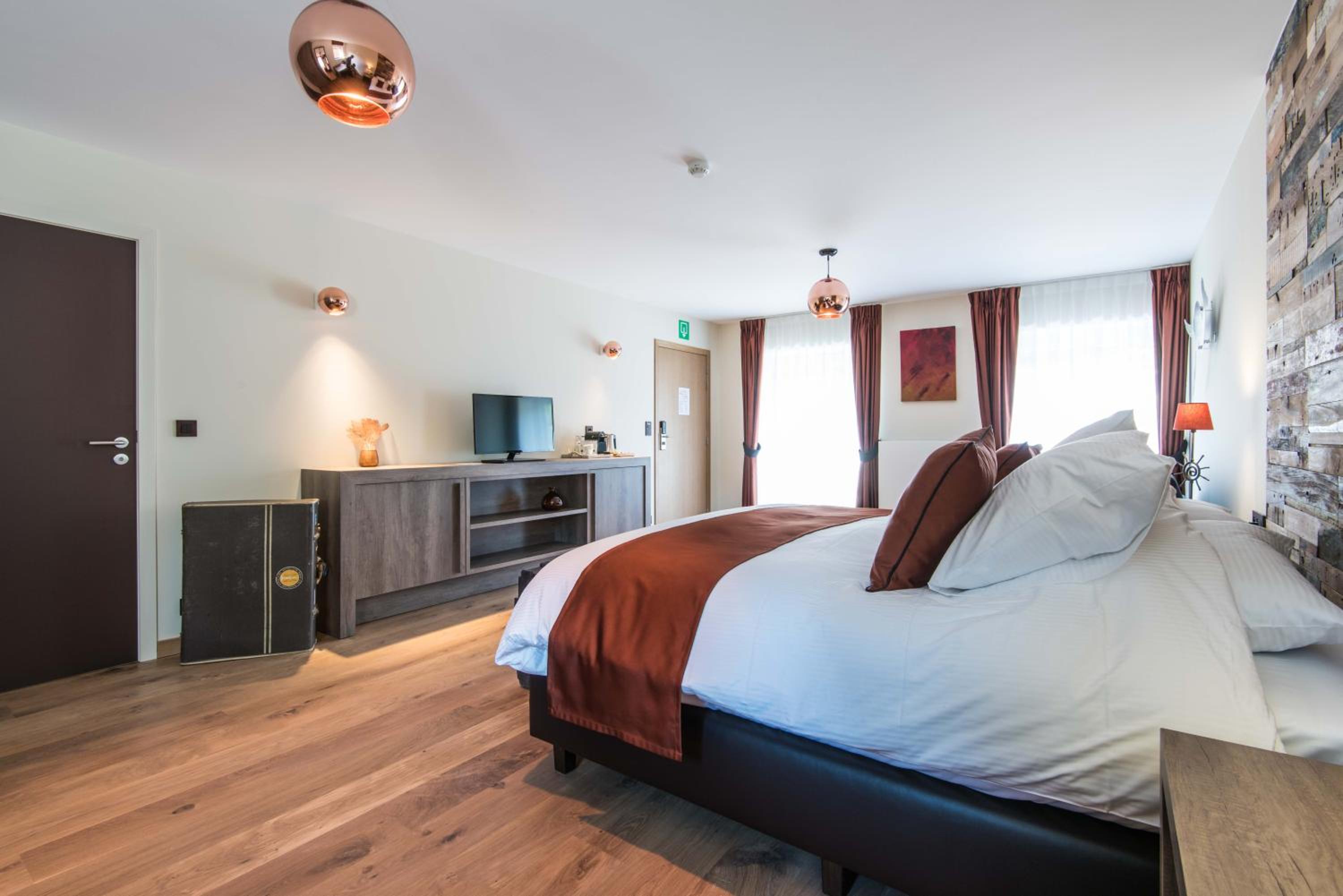 Indulge in a stay at Koru Hôtel & Private Wellness, where comfort meets elegance. Unwind in beautifully designed rooms with modern amenities, including a flat-screen TV, plush seating area, and a coffee machine. The private bathrooms are stocked with premium bathrobes, slippers, and toiletries for your convenience.