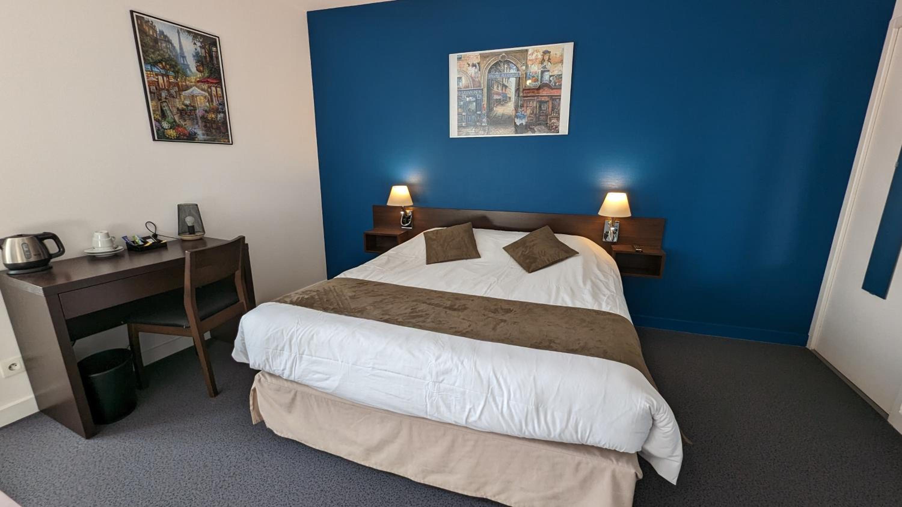Chambre spacieuse, propre , jolie décoration , lieu calme , parking a côté , petit déjeuner simple mais efficace . Bon accueil