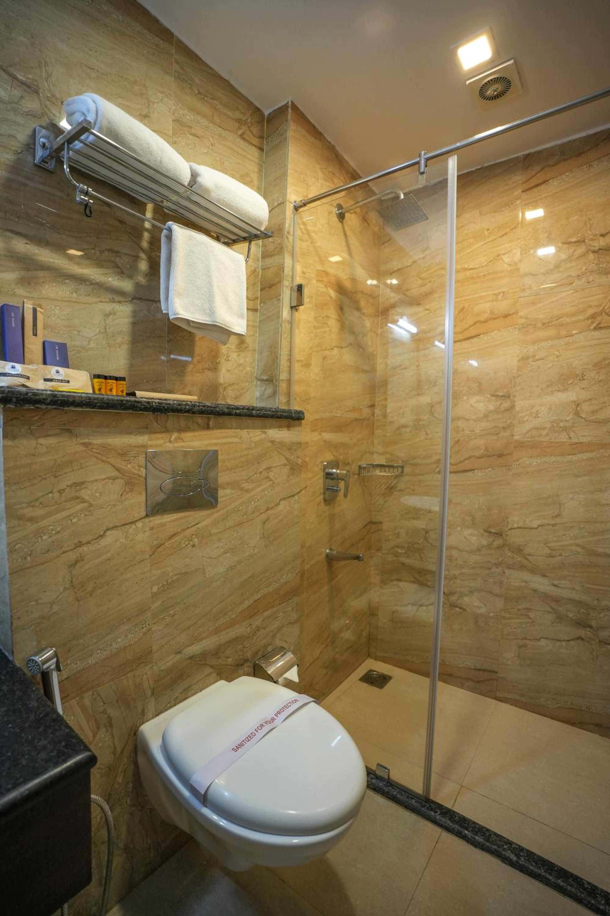 Experience comfort and convenience with our spacious rooms equipped with air conditioning, flat-screen TVs, and private bathrooms. Some rooms even feature a balcony for stunning views.