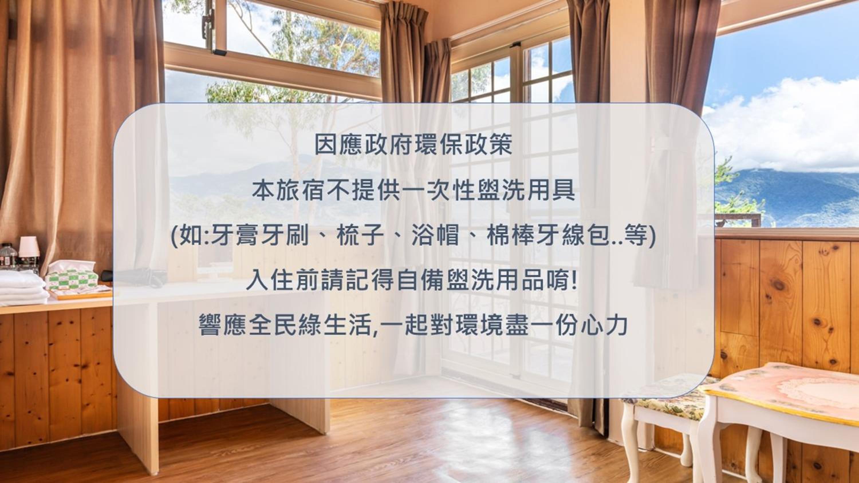 雖然開進去的位置不好開,但是商家都有在關鍵地點標示方向,很不錯,公共區域的山景很棒~~~可以給小孩當活動空間,去的時候剛好遇到重機車隊,商家也有規定他們晚上十點後,不可以繼續烤肉唱歌,車隊也很遵守~有在管理的商家~早餐也很好吃~是中式的~