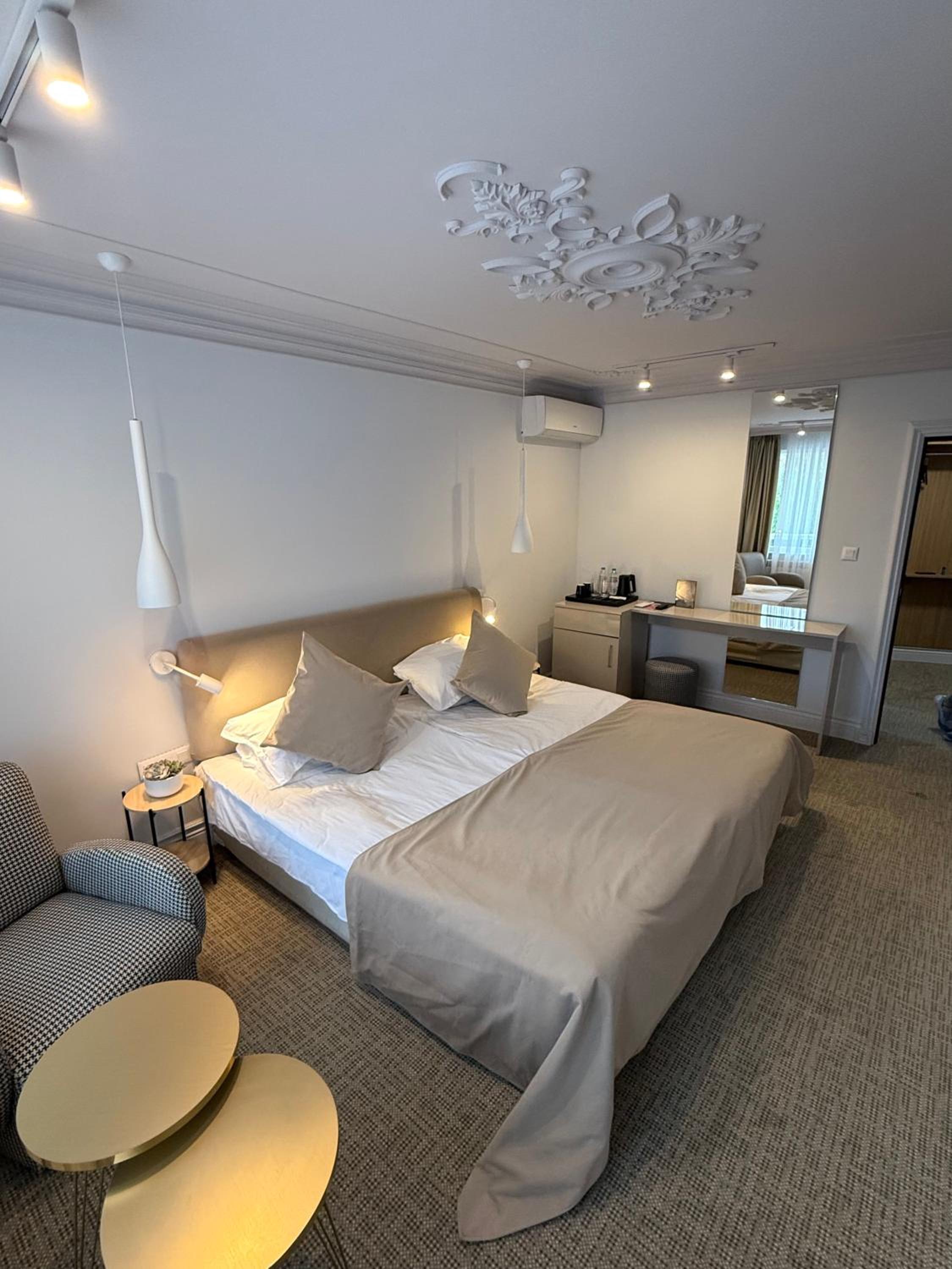 Хотелът е разположен на тихо и спокойно място. Бяхме настанени в делукс апартамент- чист, комфортен, изпипан до най-малкия детайл. Персоналът е изключително любезен и с професионално отношение .