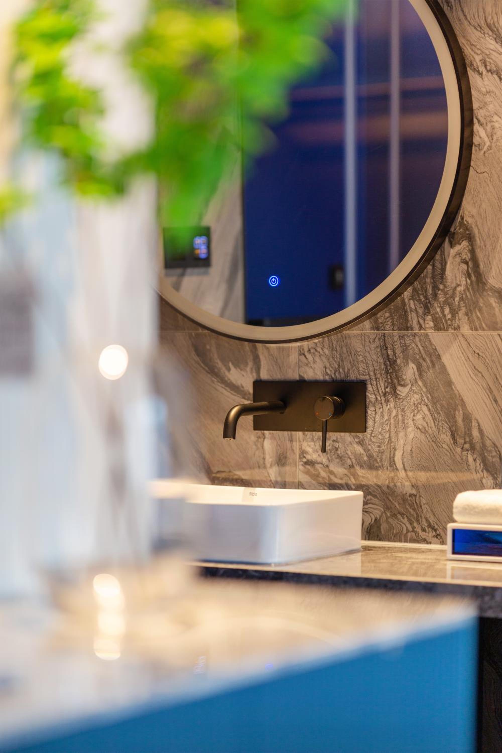 Inteligentny system sterowania: Przy łóżku znajdował się elegancki, szklany panel z przyciskami, który był niesamowitym ułatwieniem. Można było z niego sterować światłem w całym pokoju (w łazience, toalecie czy na korytarzu) oraz automatycznie rozsuwać i zasuwać zasłony, nie wstając z łóżka. Prawdziwy „wypas”!