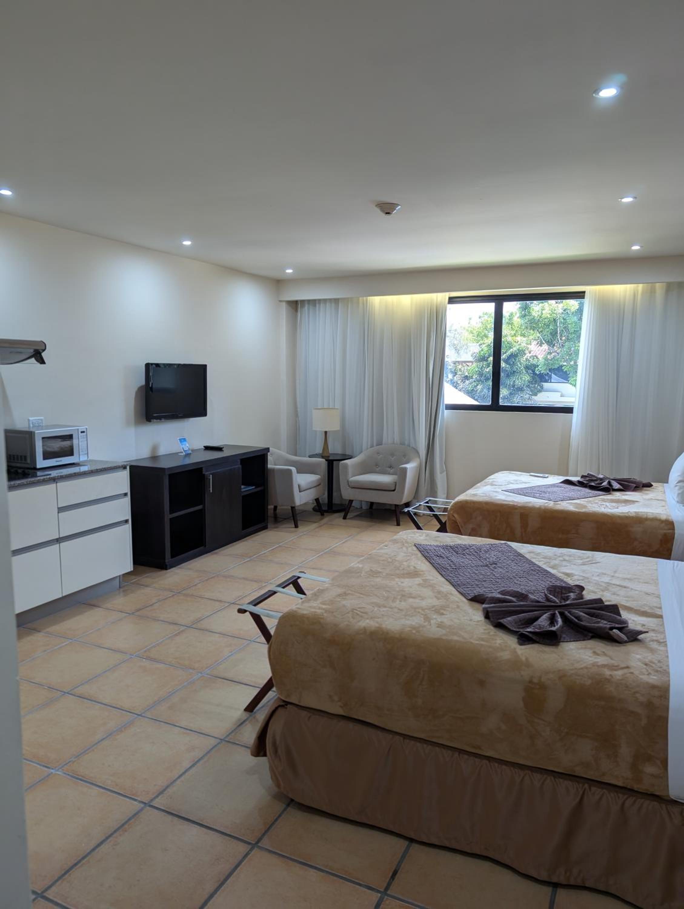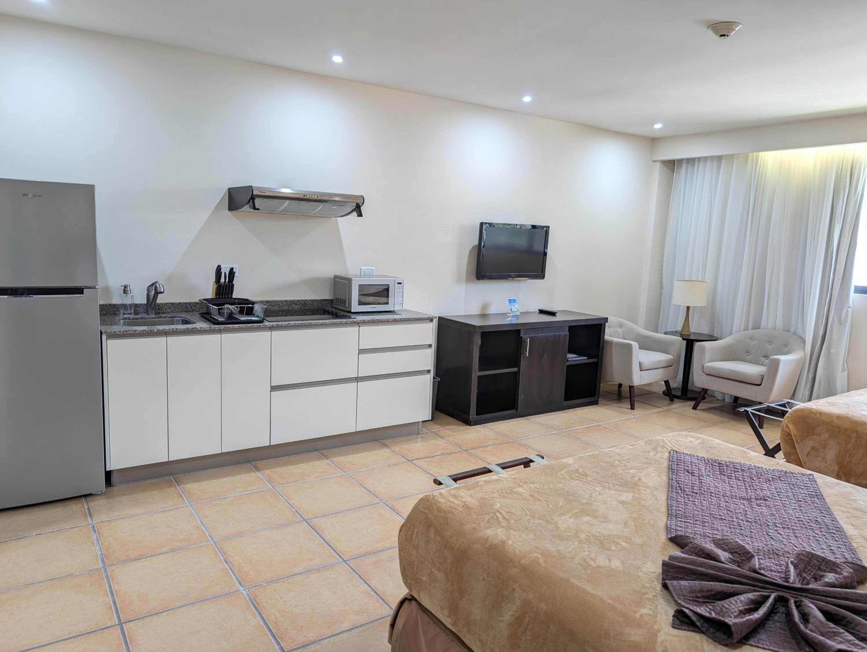This suite is situated in the beautiful Coronado golf club facility. Equipped with kitchenette (stove,fridge,microwave, sink) and all necesssry dishes,cutlery ,cups/glassware and pots and pans necessary for a comfortable stay.