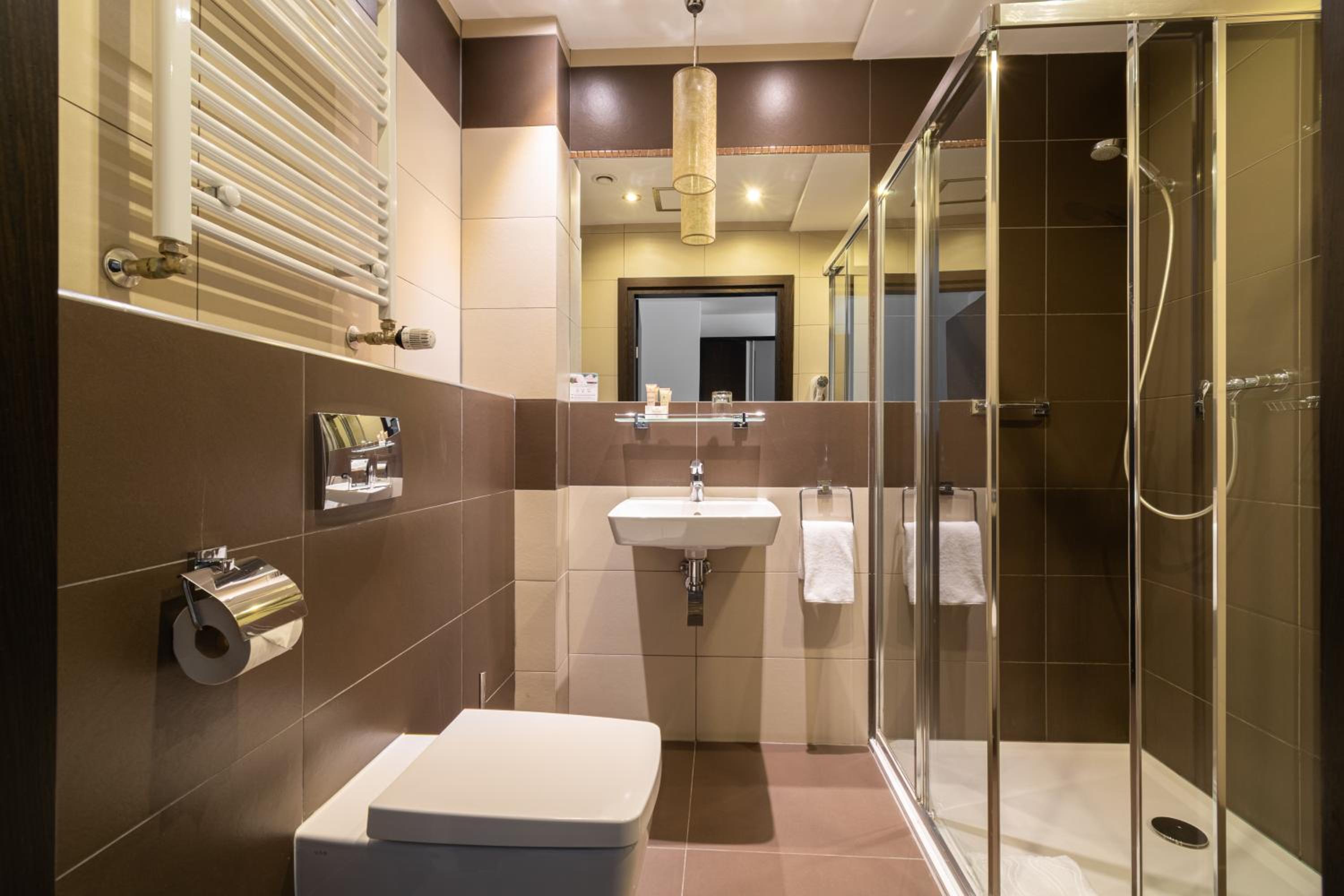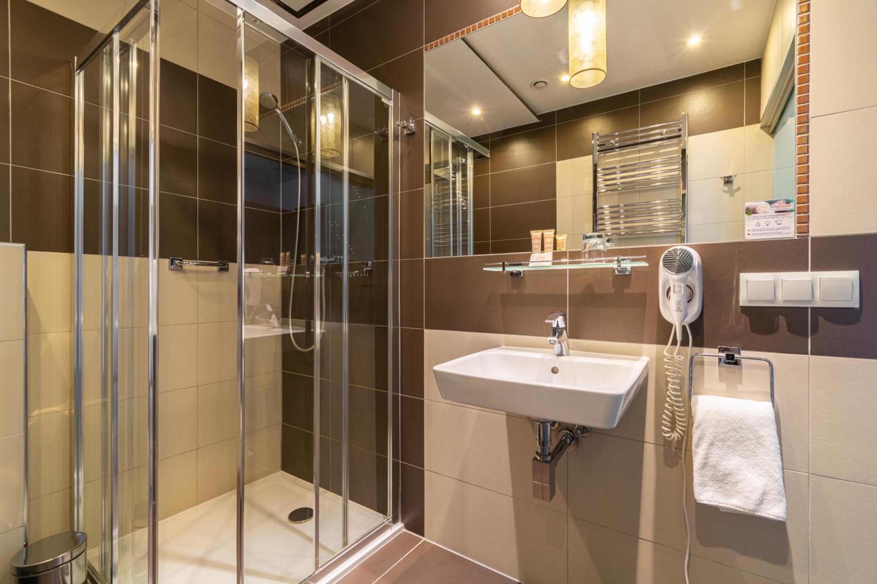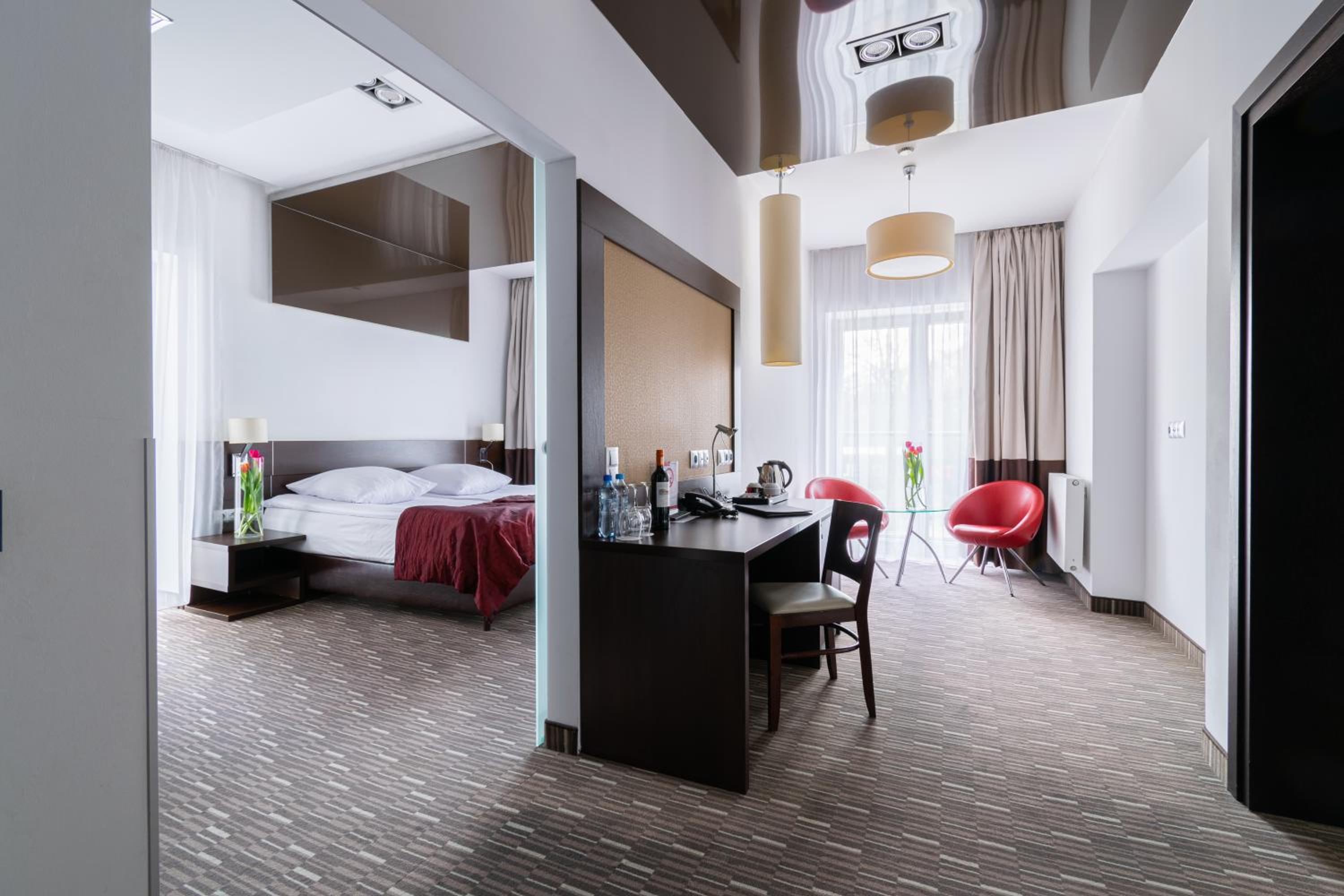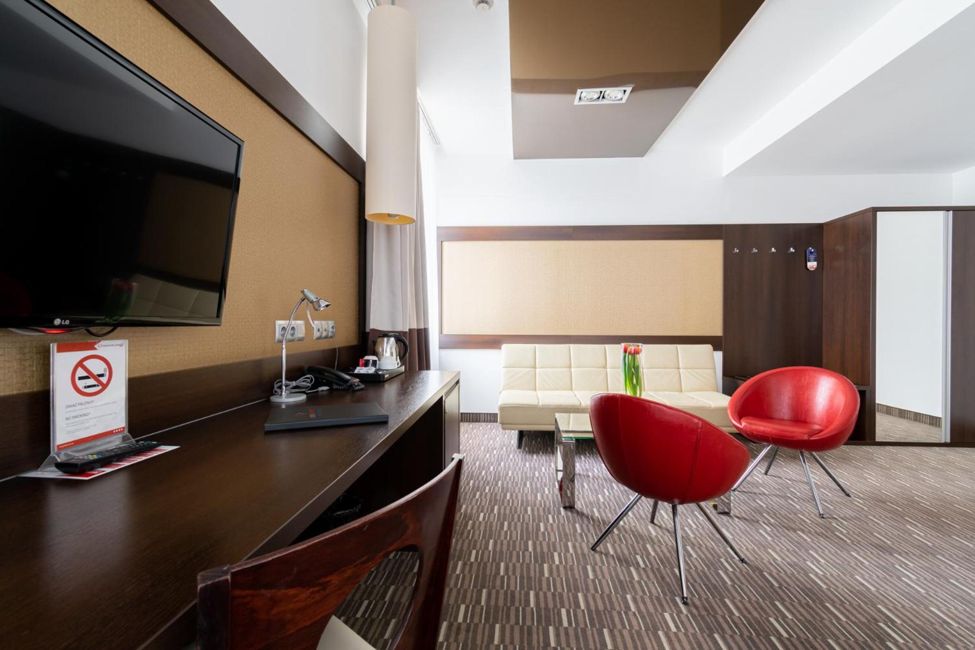 Park Hotel Diament Zabrze - Gliwice offers air-conditioned and soundproofed rooms with modern amenities like a flat-screen TV, work desk, and a unique lighting control system. The bathrooms are equipped with premium toiletries and a refreshing rain shower.