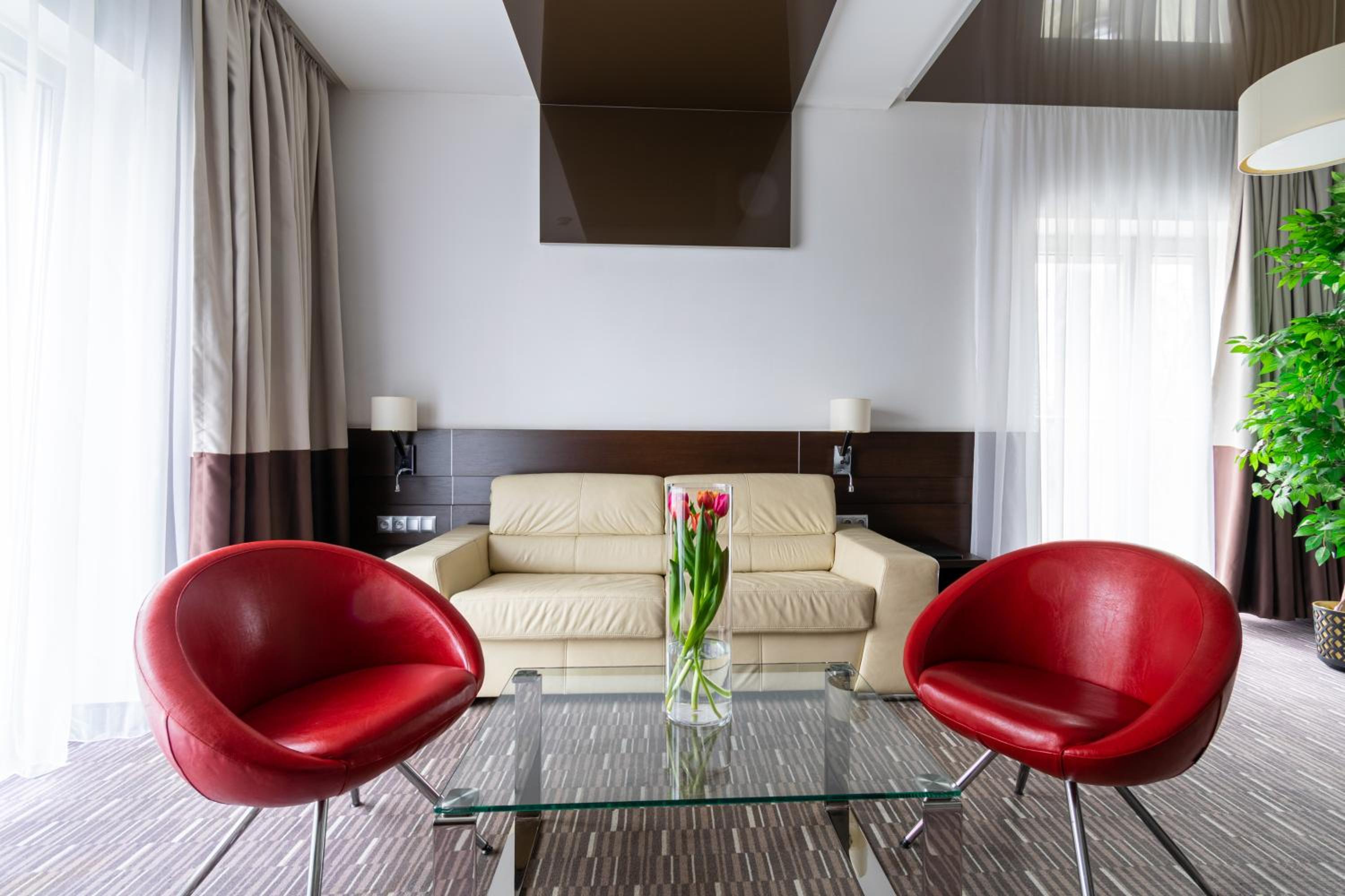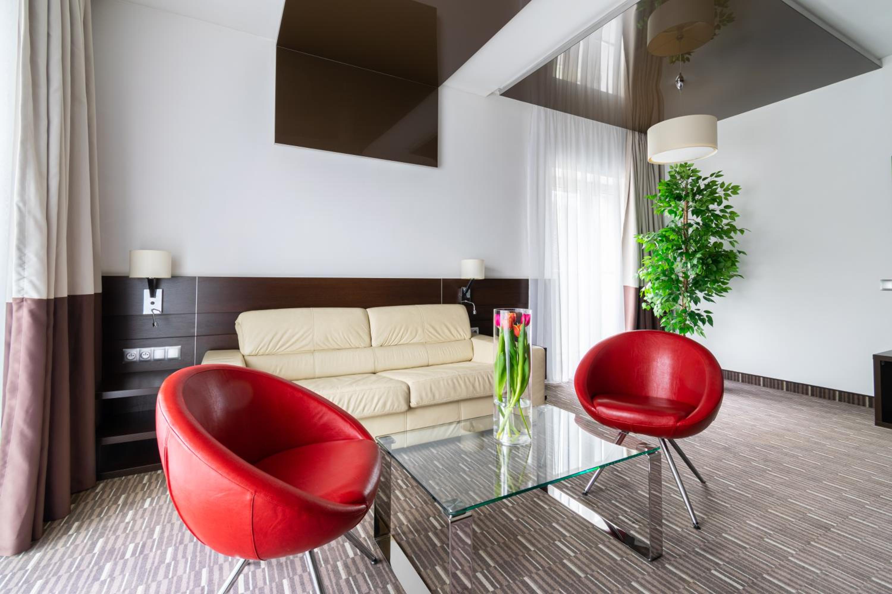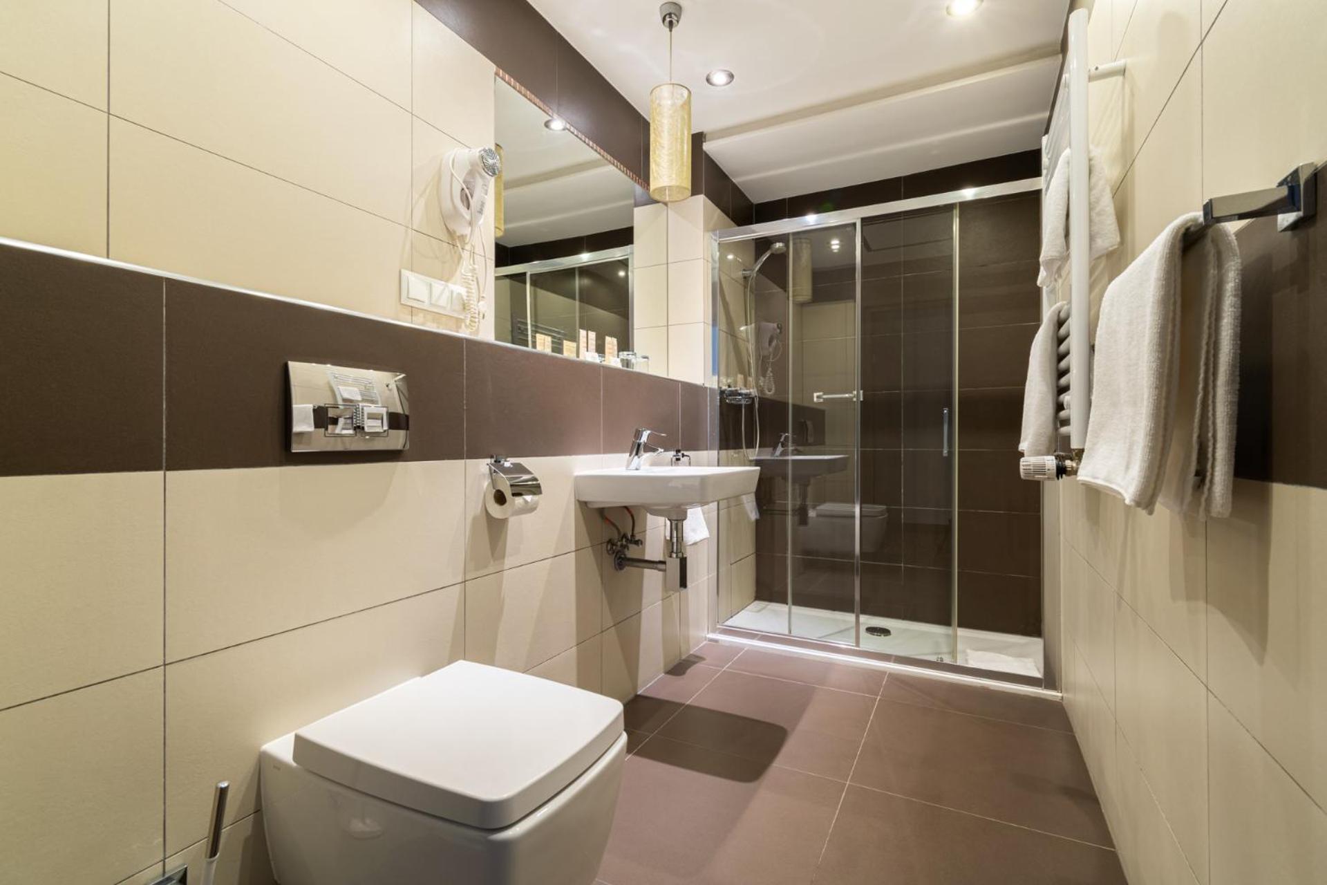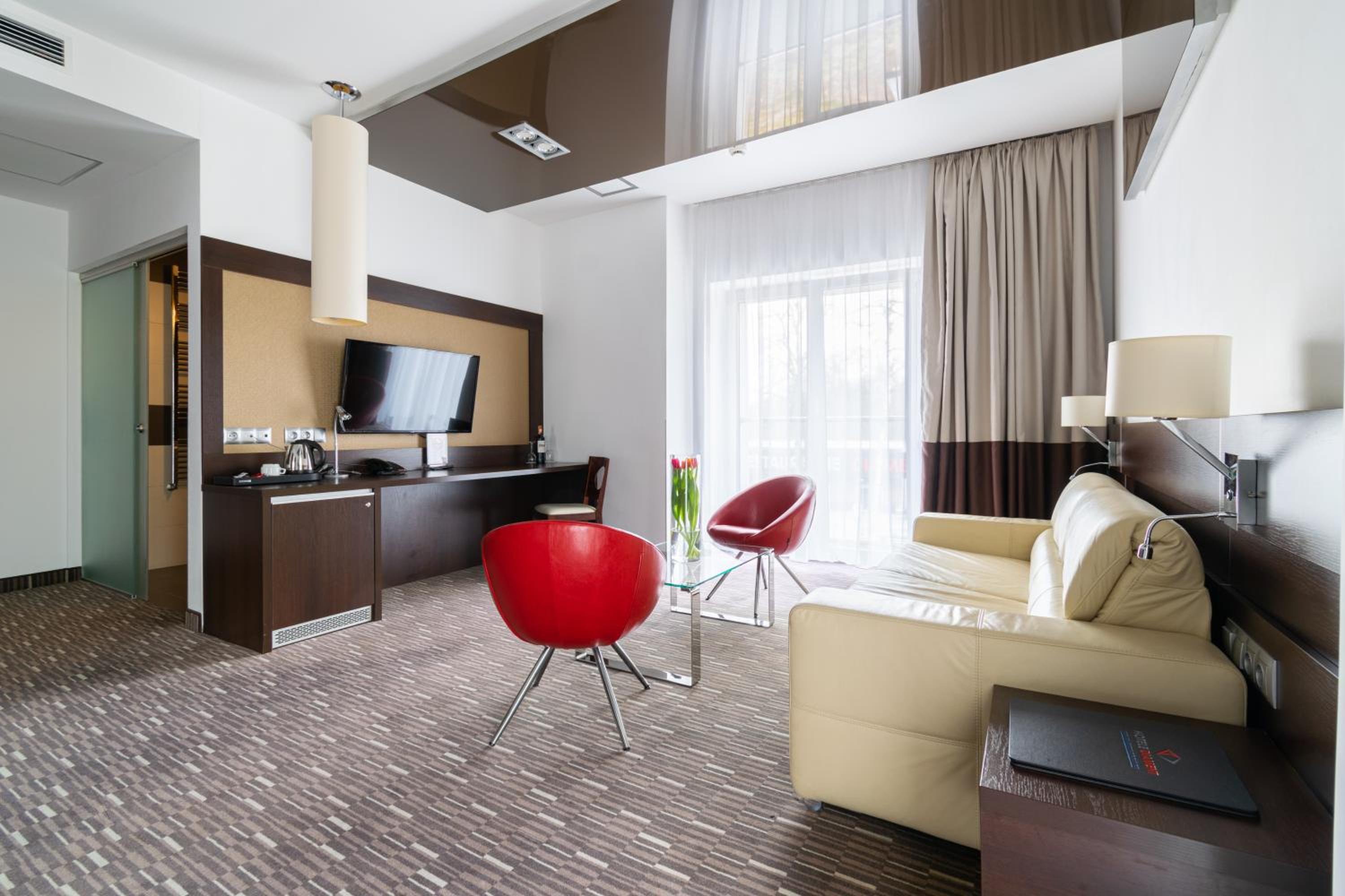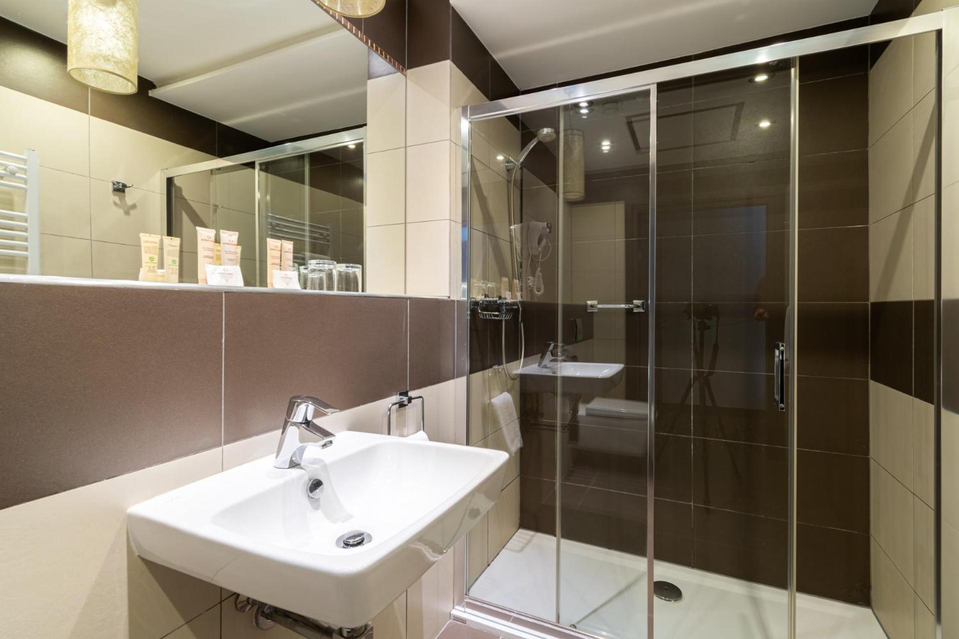 Park Hotel Diament Zabrze - Gliwice offers air-conditioned and soundproofed rooms with modern amenities like a flat-screen TV, work desk, and a unique lighting control system. The bathrooms are equipped with premium toiletries and a refreshing rain shower.