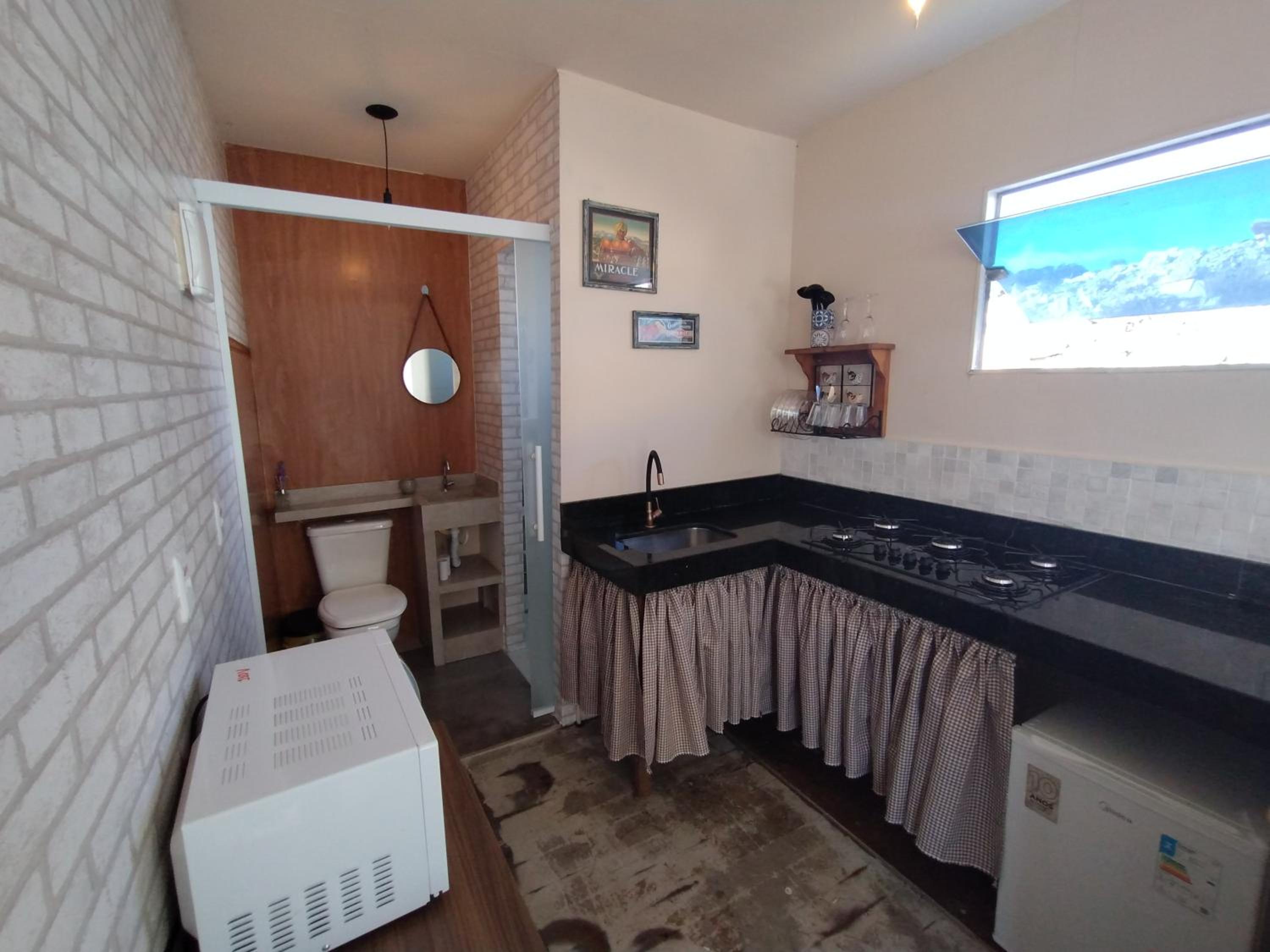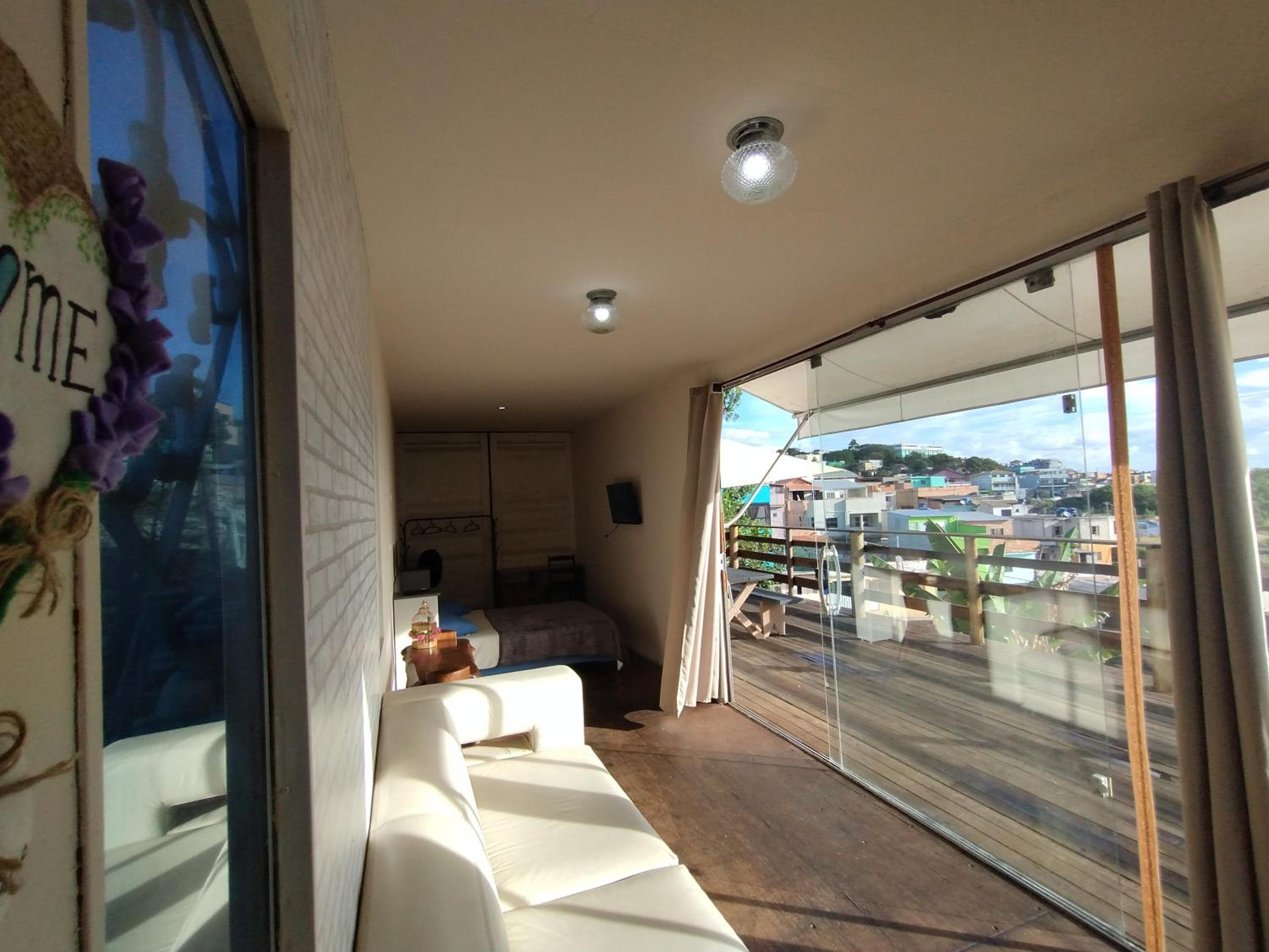Olha, ficamos na suíte Container. Embora não fosse ruim, no verão creio que não é possível ficar lá sem o ar condicionado ligado o tempo todo. A cortina também não veda o sol da manhã. Como o lugar está num ponto elevado, as 6 da manhã tudo está claro dentro do quarto. Outra coisa que decepecionou é a posição do vaso sanitário, sem privacidade nenhuma e praticamente dentro da cozinha. Como estava frio, o chuveiro, embora funcionasse, não era confortável, com pouca água caindo. A roupa de cama também podia ser mais confortável, embora estivesse satisfatório. A limpeza estava ok.