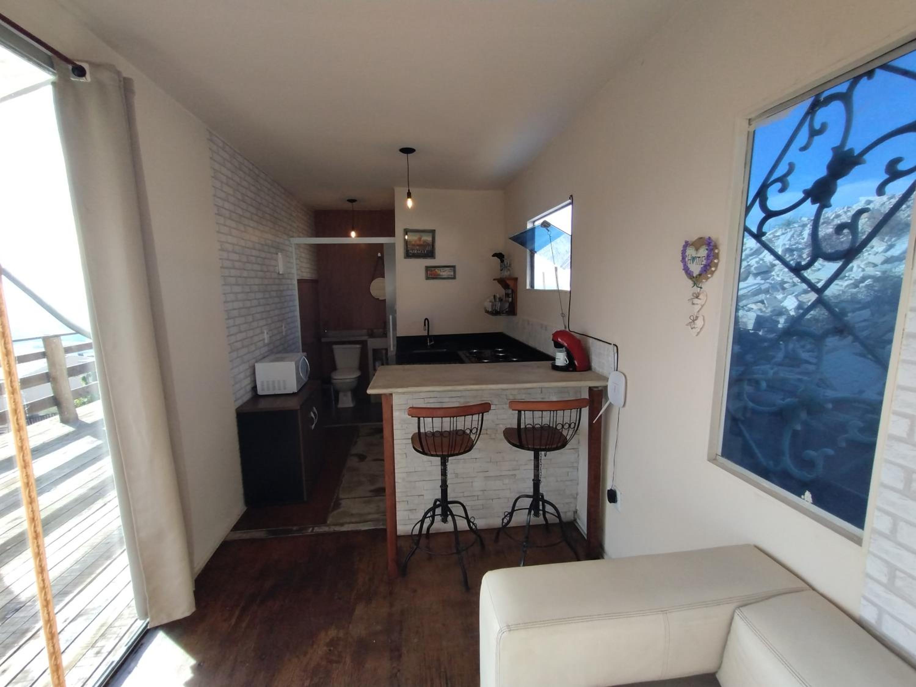 A acolhida do anfitrião foi excelente e o café da manhã muito gostoso! Gostamos muito da vista para o pôr do sol, do terraço, e da fogueira preparada para acendermos à noite, ao lado do Loft Container.