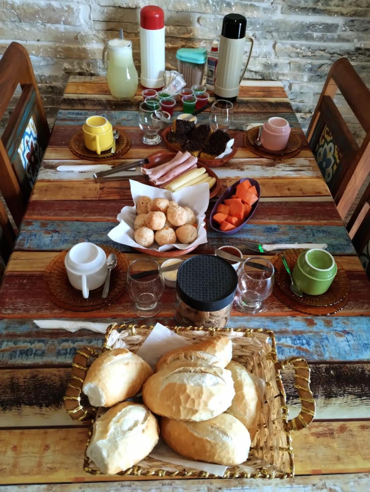Café da manhã bom, não faltou nada que eu gostaria de comer.