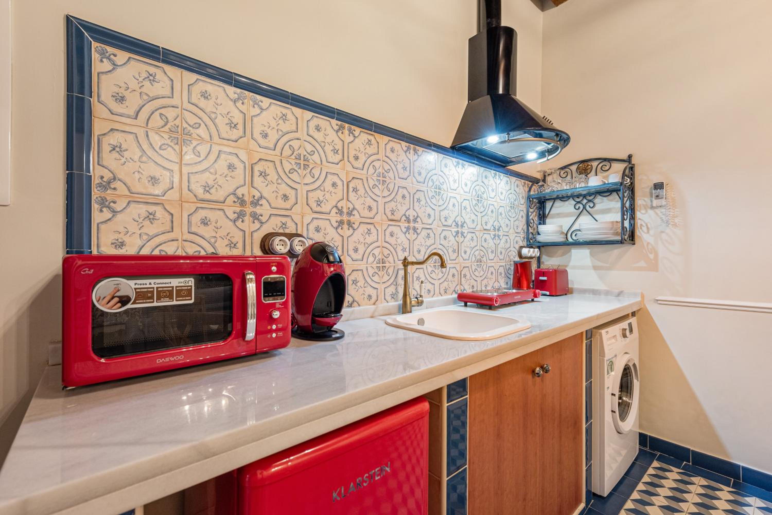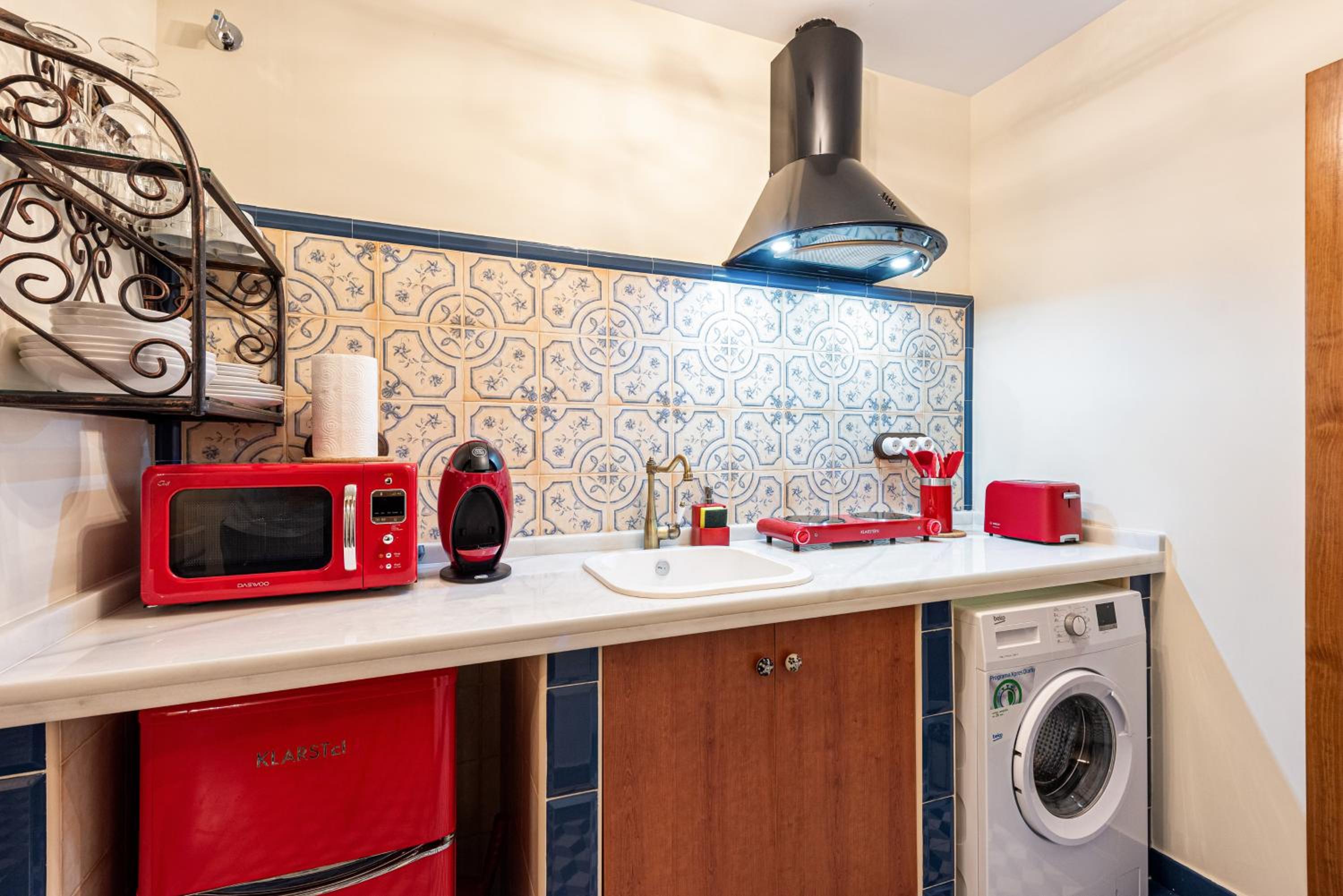 Great location, quiet residential street, felt as if we were locals yet everything (shops, restaurants, etc) very close by. Loved the tiles and decor of the apartment and inside the whole building; enough provided in kitchen for basic food prep (we cooked a breakfast every morning), lots of fridge space; wooden shutters on windows effective in blocking or letting in light. Slept well! Excellent communication throughout our stay.