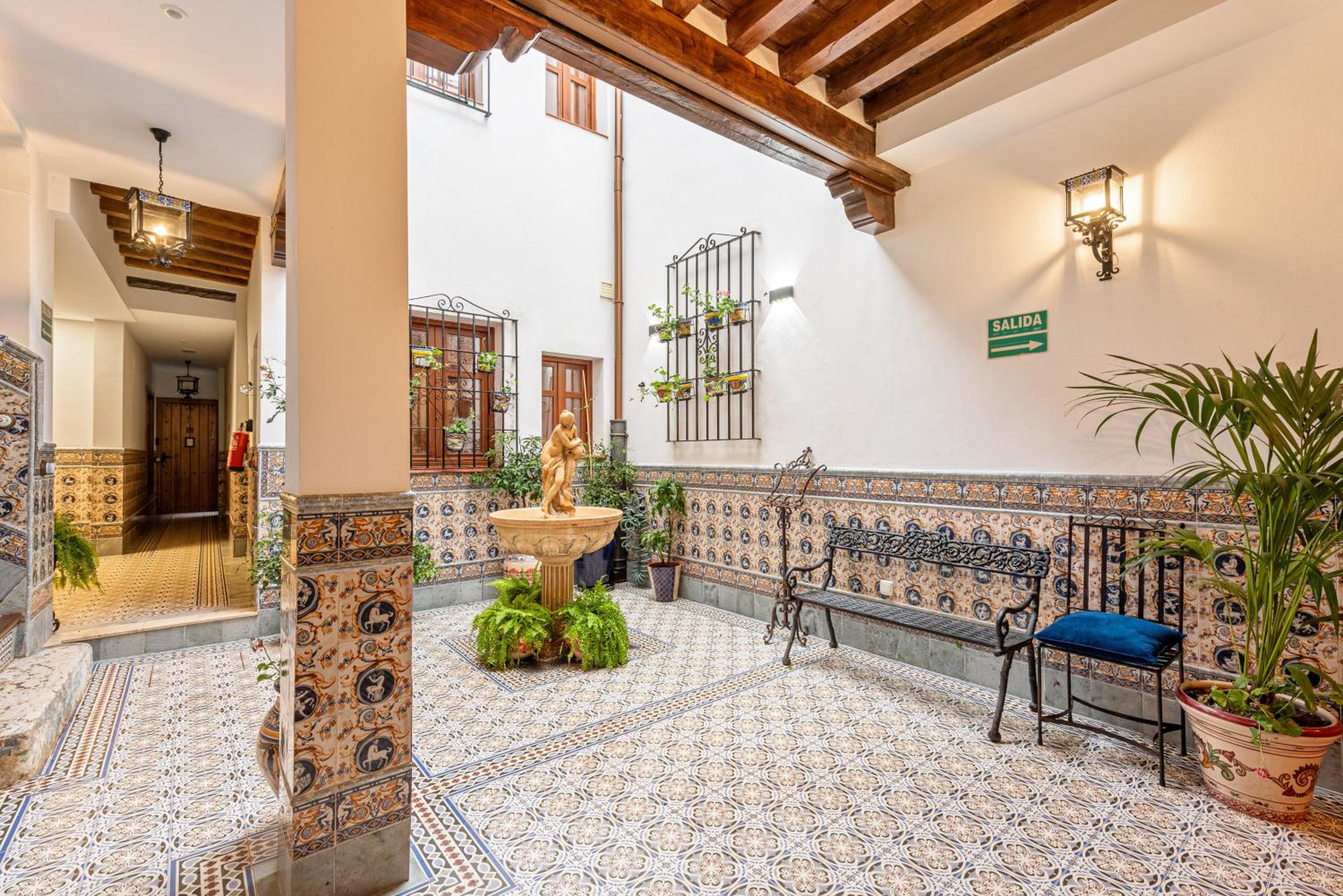 Delizioso appartamento vicino alla casa museo di Picasso, all' interno di un edificio con uno splendido patio con maioliche. Letto comodo.