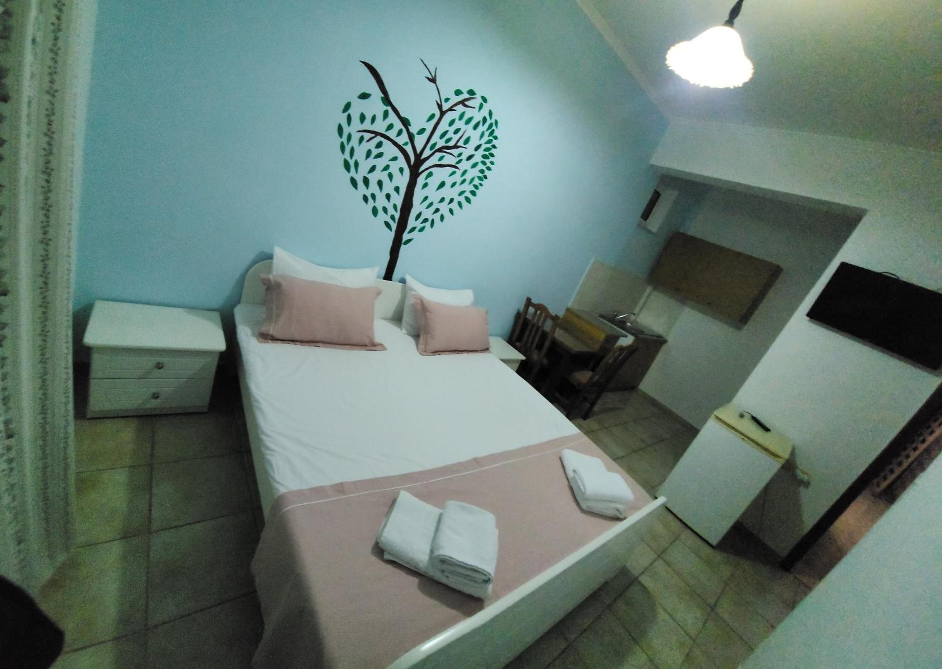 We booked last minute due to another property cancelling last minute. We had a room at the back of the building which we knew. Nice garden and free sunbeds. Little bar. Quite dated room and bathroom but we paid very little and it was spotless.