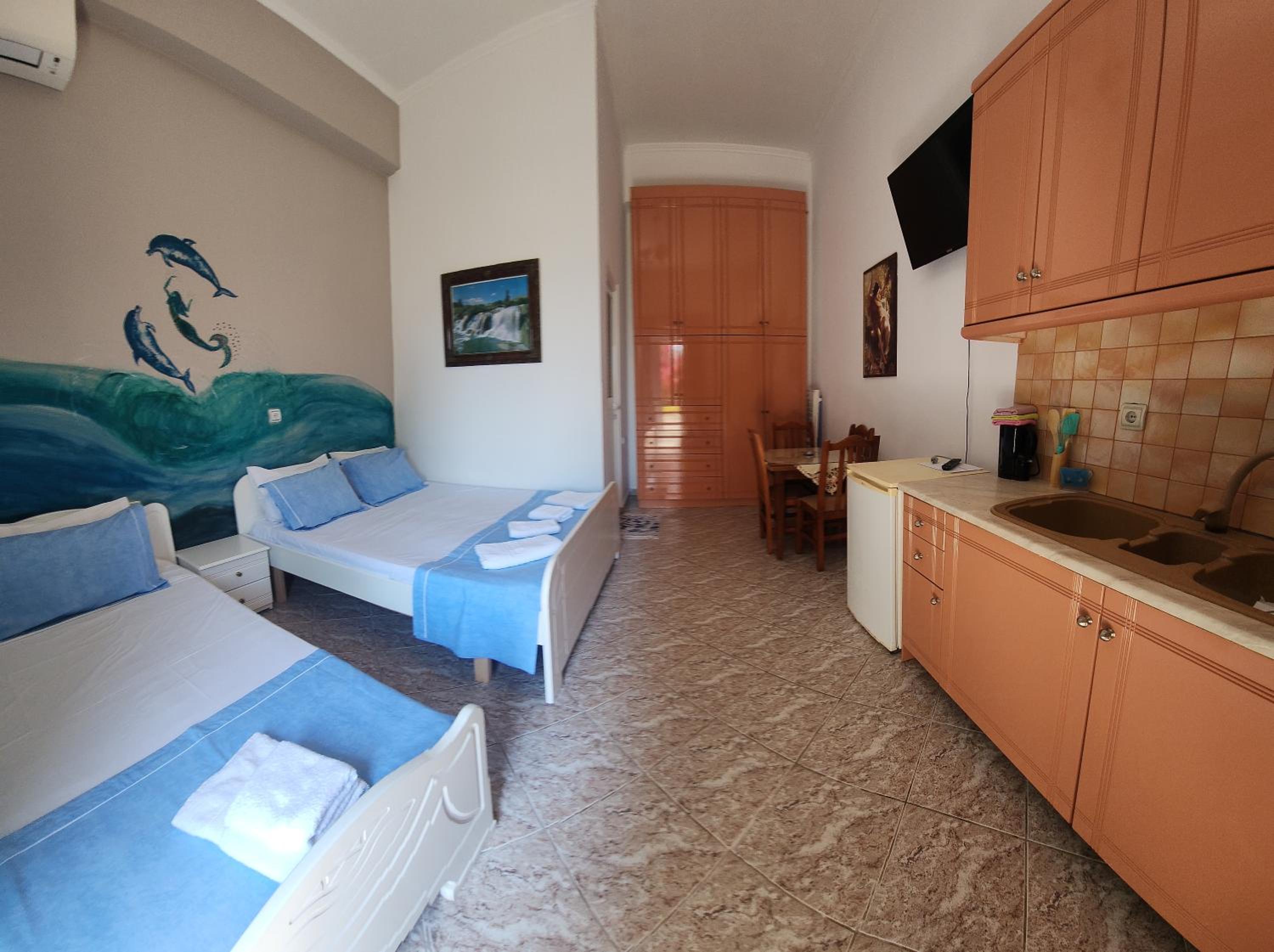 Modern Amenities: Enjoy a comfortable stay with rooms equipped with flat-screen TVs, kitchen facilities, and private bathrooms with sea views. The hotel also provides free WiFi, ensuring you stay connected throughout your visit.