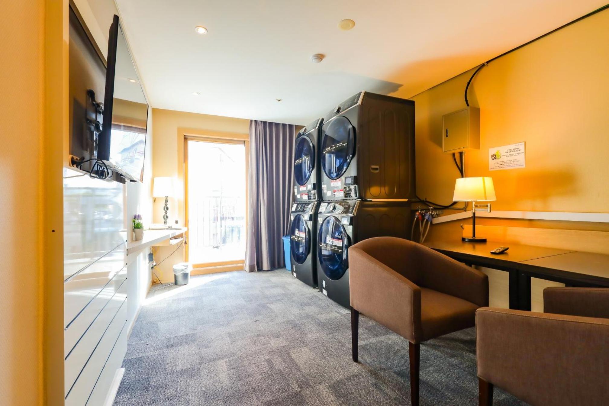 The room itself is quite nice and lets in a lot of natural light, with sheer curtains for privacy as the main window does face a street. The bed was comfortable and the spa bath was incredible to have. It's also on the same floor as the coin laundry which only accepts card (which was actually quite helpful, 5,000won per wash and then again to dry), which was super handy for washing clothes late at night before bed ready for the next day. There is a convenience store located downstairs within the hotel that is open til 1.30am, and there is lots of food options open til at least 8pm (many even until 10pm) within an under 15 minute walk.