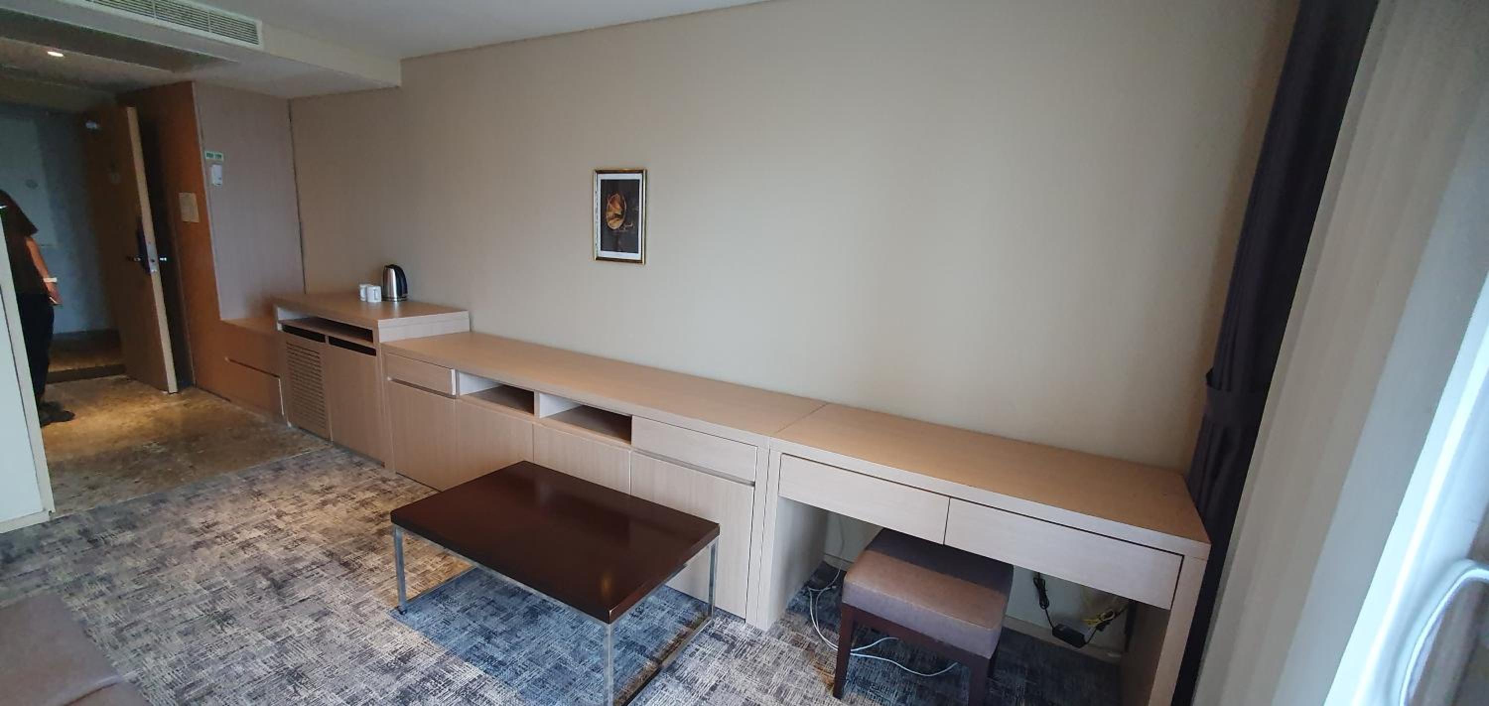11月之後飯店房間內不提供冷氣,只有暖氣,怕熱的人可能要把窗戶打開通風,但樓下對面是一間烤肉店,如果是低樓層的,味道會隨風吹進房間,可能是因為空曠,客人講話聲音聽的也很清楚,晚上被吵醒很多次,如果像我一樣睡眠有障礙的人,請跳過這間吧!