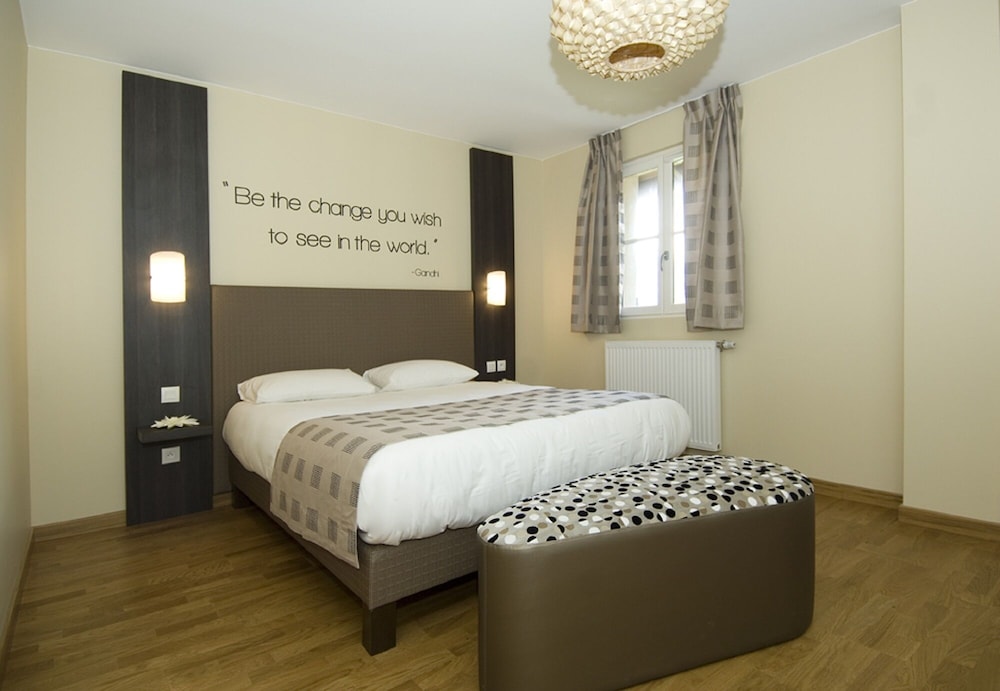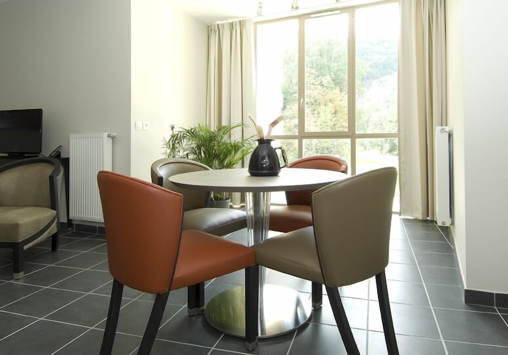 Exceptionnelle, l'arrivée se faisant sur le parking a droite , puis reception a l'arriere du bâtiment, si arrivee en dehors des heures réception, borne pour récupérer sa carte magnétique. Accès sans ascenseur aux appartements mais escaliers typique d'un petit château, appartement au top, grande chambre séparé et cuisine neuve avec lave vaisselle etc... petit plus , des dosettes sont fournies pour la machine a café pour apprécier au moins 4 tasses. Propreté au top, et calme pour séjourné 1 nuit voir plus. Je reviendrais sûrement pour affaire voir en famille pour découverte des autres appartements. Je recommande sans hésitation