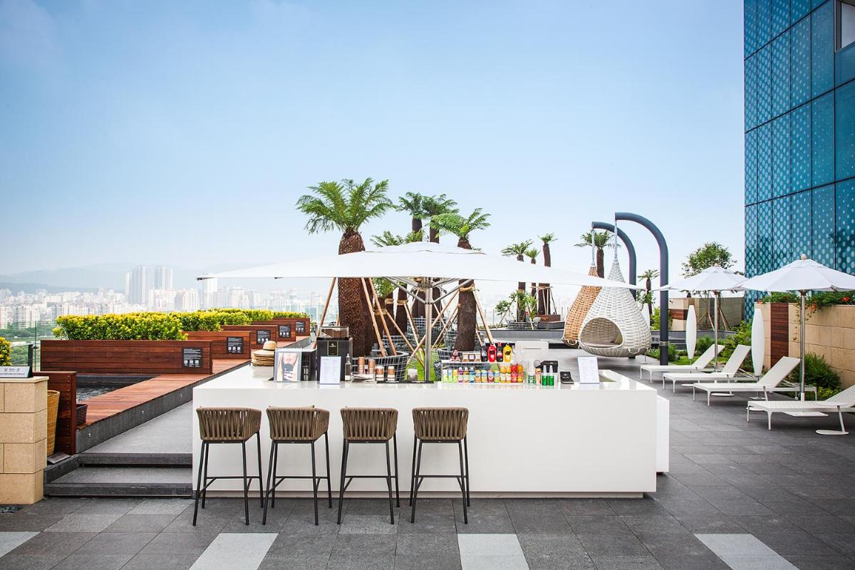 Indulge in the comfort of large flat-screen TVs, 400-thread-count bed sheets, and stylish en suite bathrooms at Vista Walkerhill Seoul - formerly W Seoul. Unwind at the full-service spa or take a dip in the heated indoor pool for a truly relaxing experience.