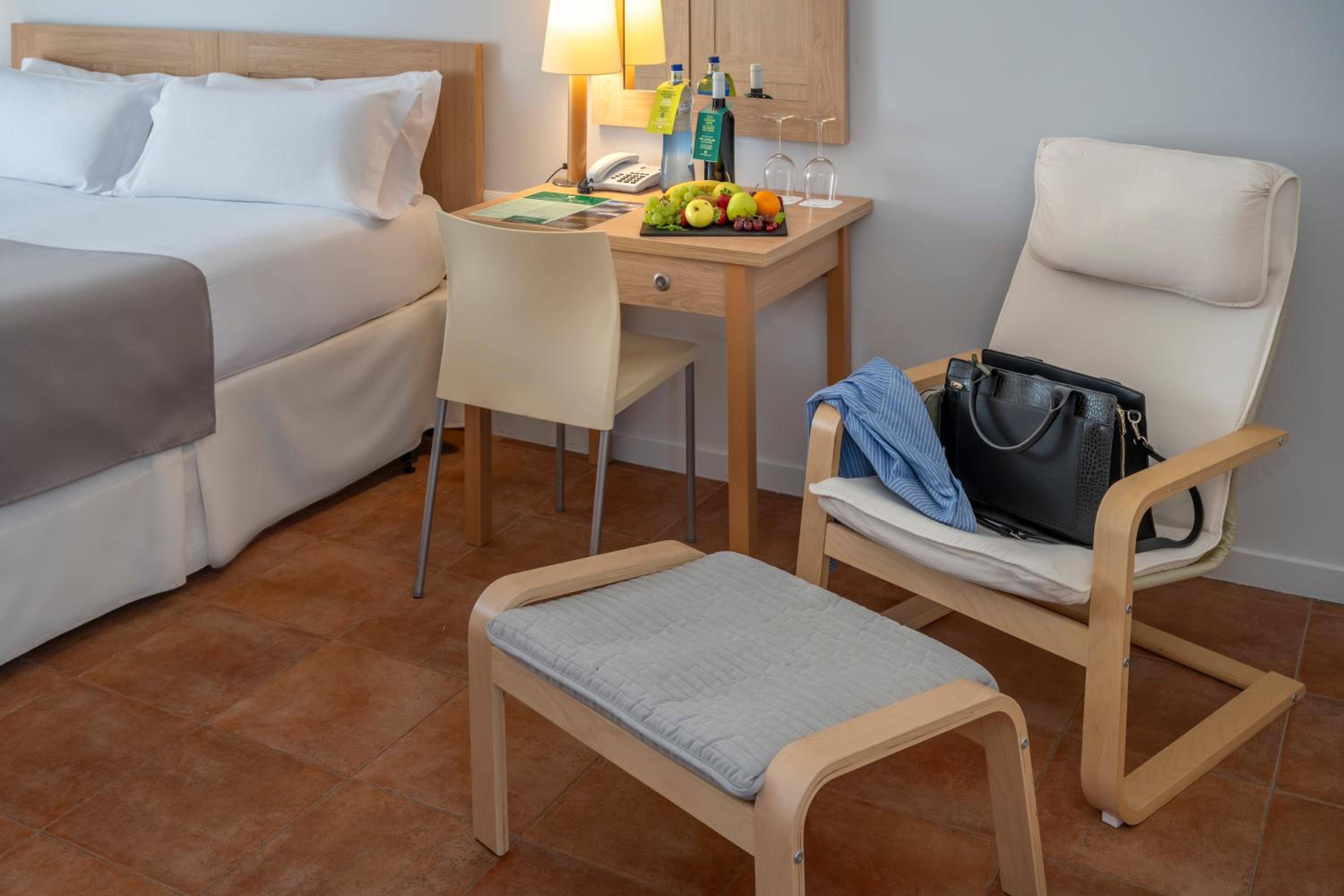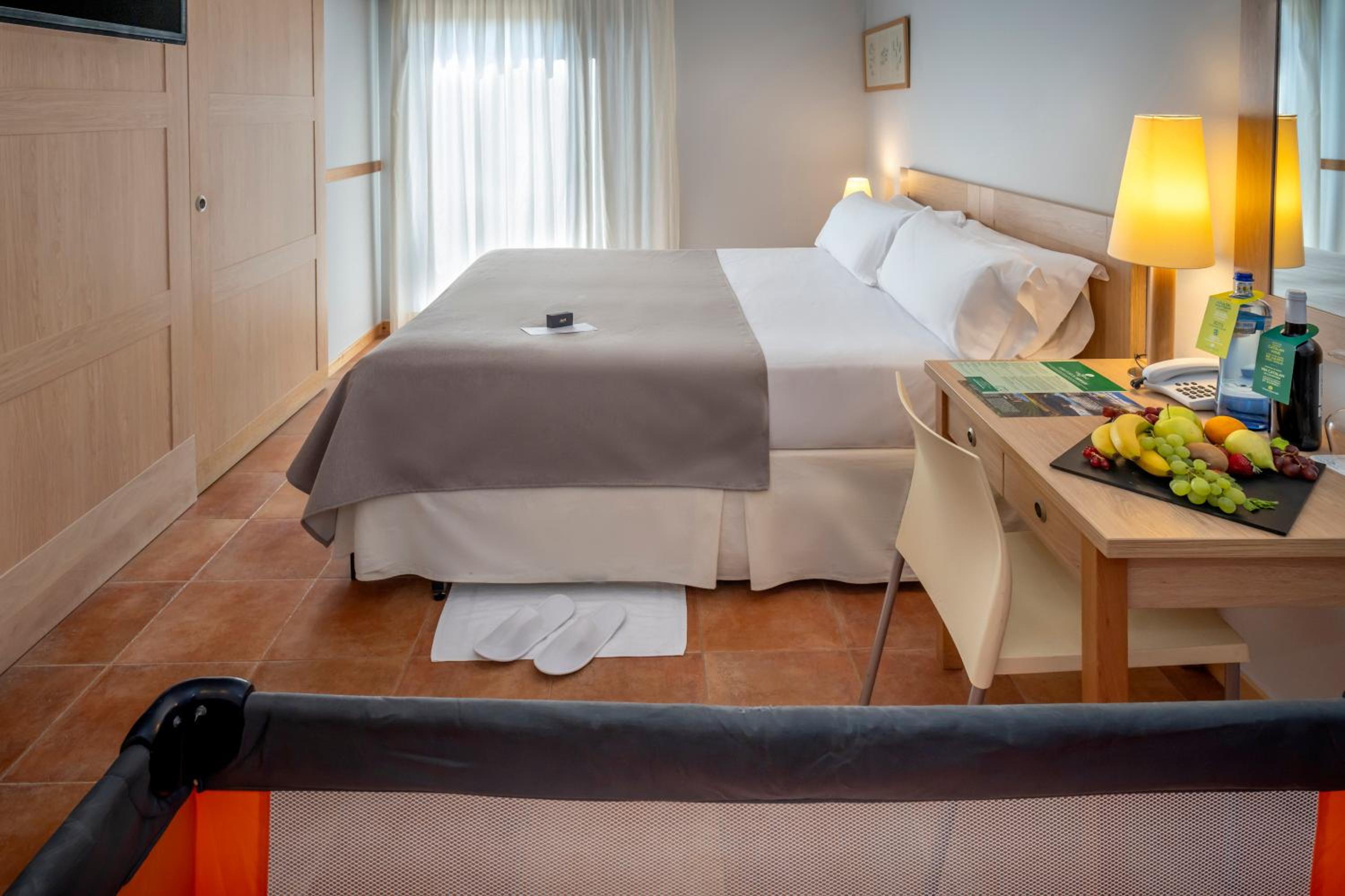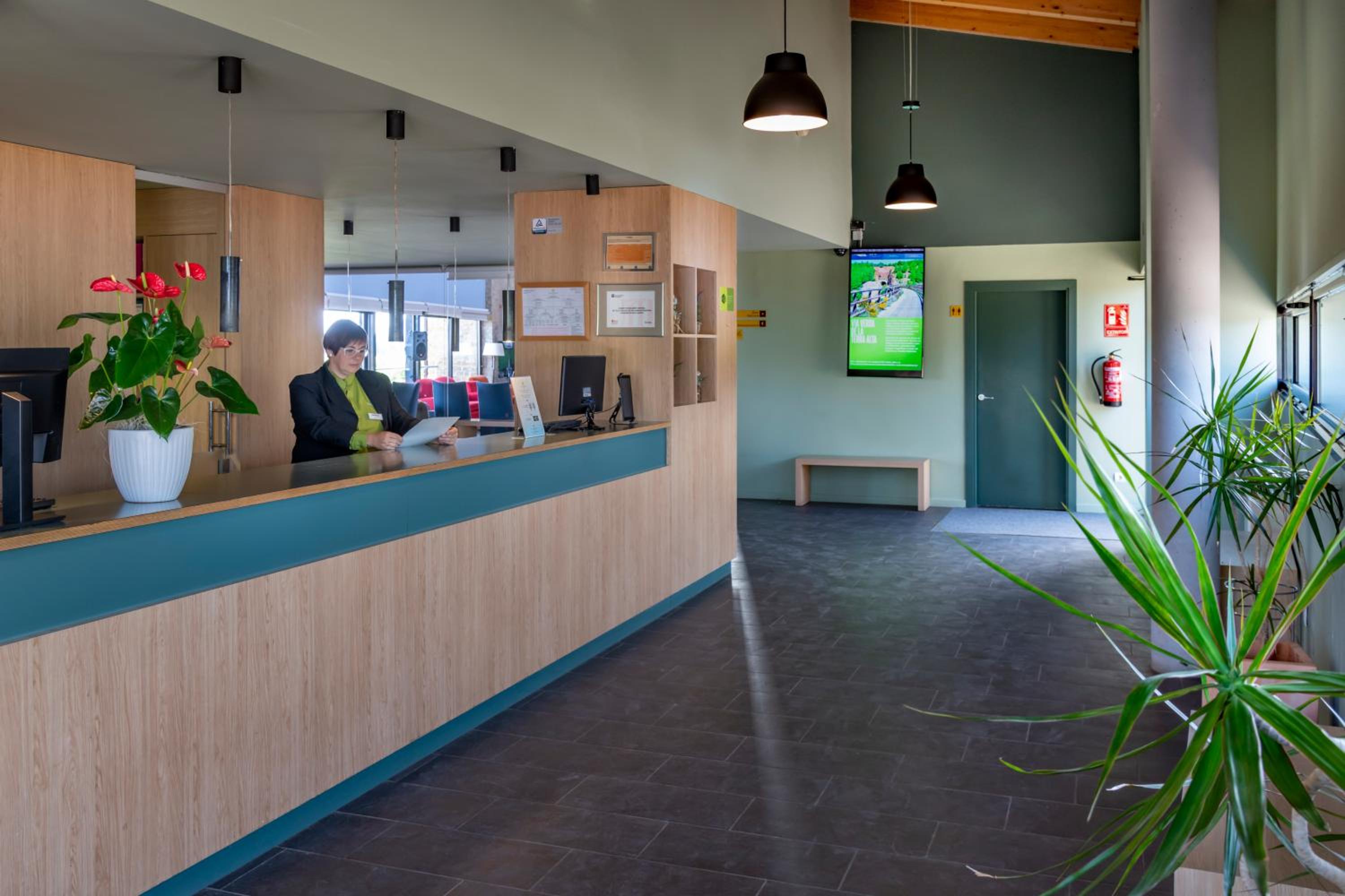 La llegada fue muy desagradable. Era de noche, y el aparcamiento y camino de entrada no están bien iluminados. No se ven indicaciones, y el viajero no sabe por dónde tiene que ir. Pero lo peor fue la mujer que hacía de recepcionista. Queríamos cenar y en lugar de tratar de ayudarnos daba la impresión de que le daba igual lo que nos pasara. Eso sí, dejó bien claro que ella se marchaba a las 10, aunque el mundo se hundiera. Otra cosa inaceptable es que el bar está servido por la misma mujer que hay en recepción. Pedir algo en el bar a las 21:40 parece que era ir contra la mujer. Muy desagradable e inaceptable. Si no tienen suficiente personal no deberían abrir. Y si abren el personal debería ser amable, no mostrar que le molestas y que se quiere ir.
